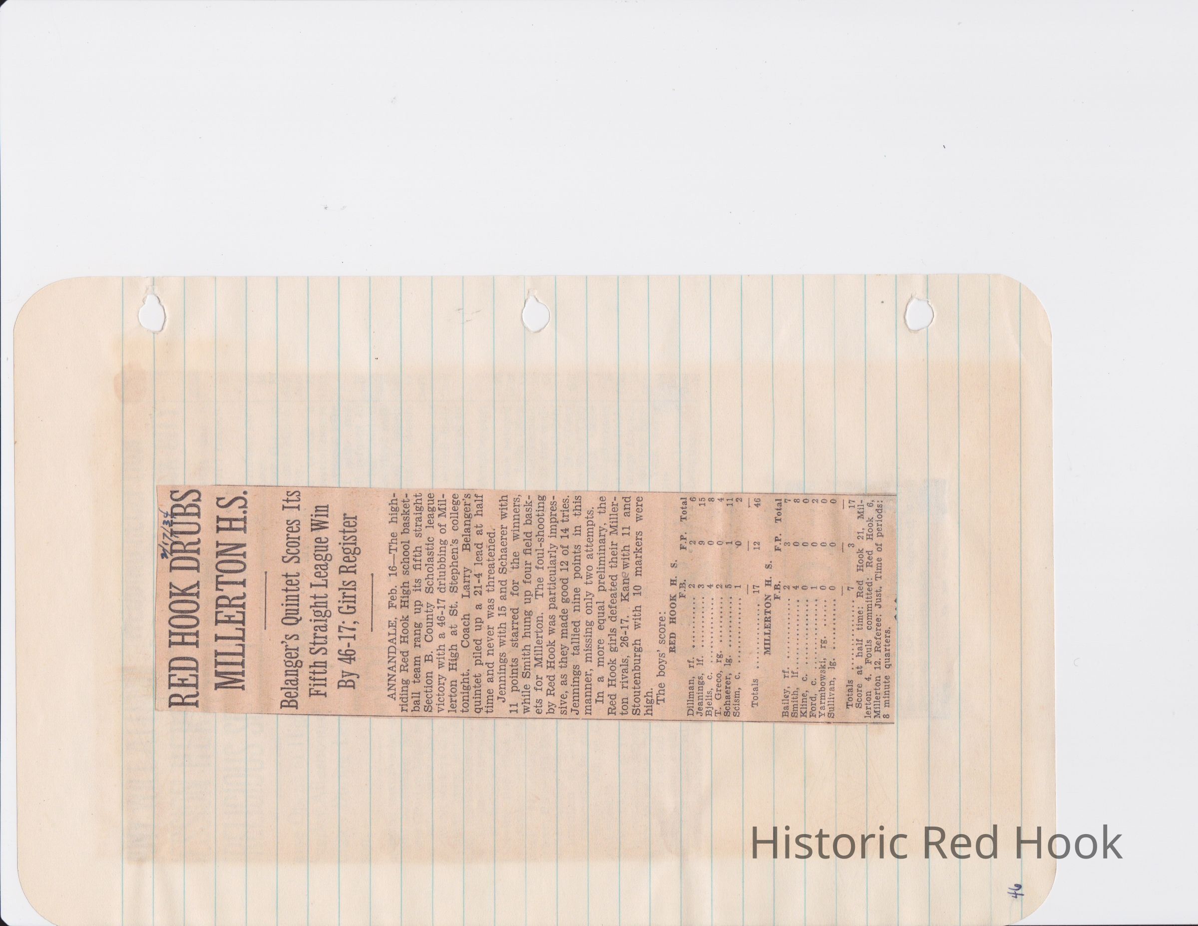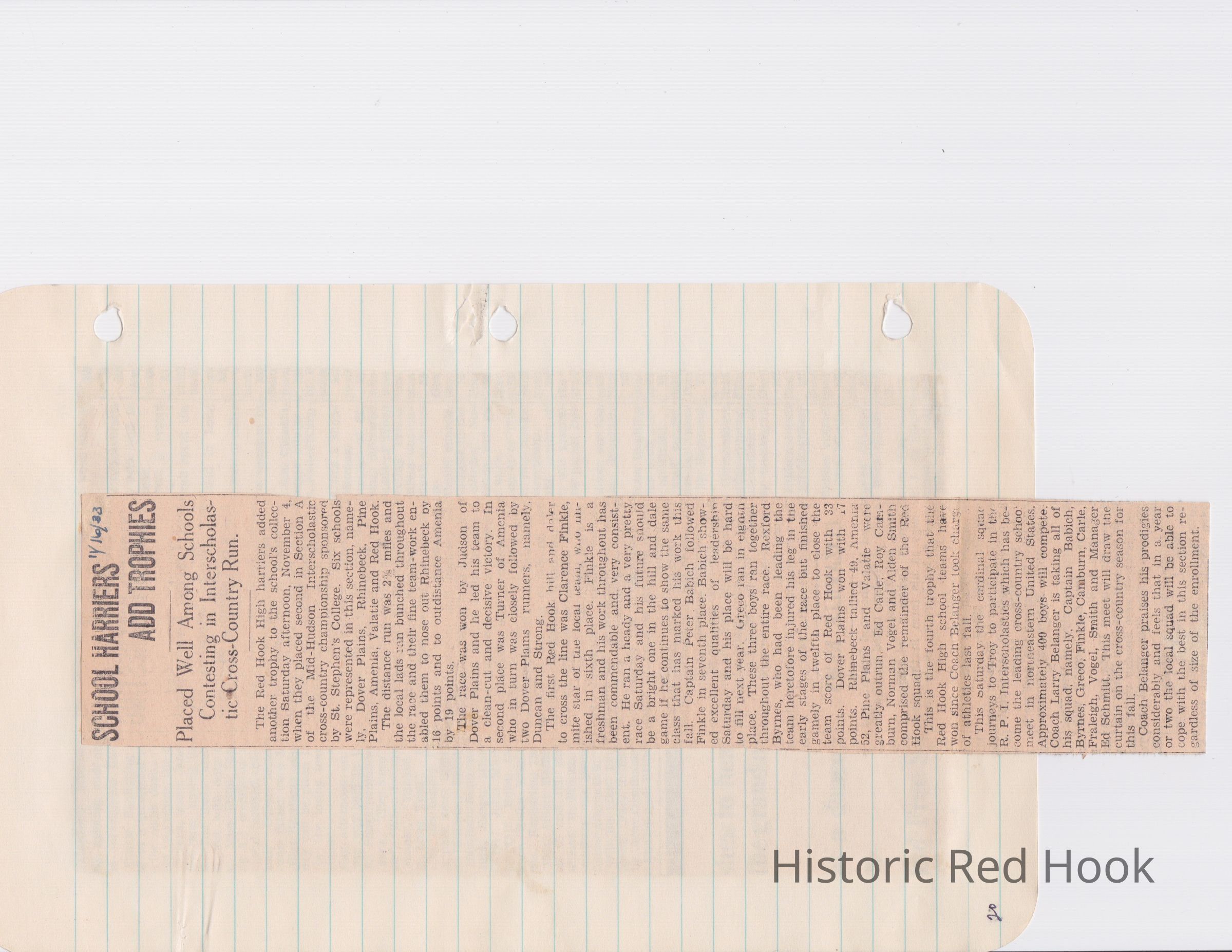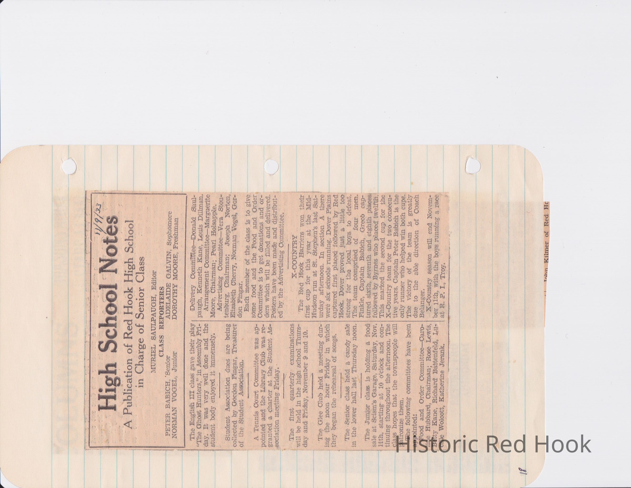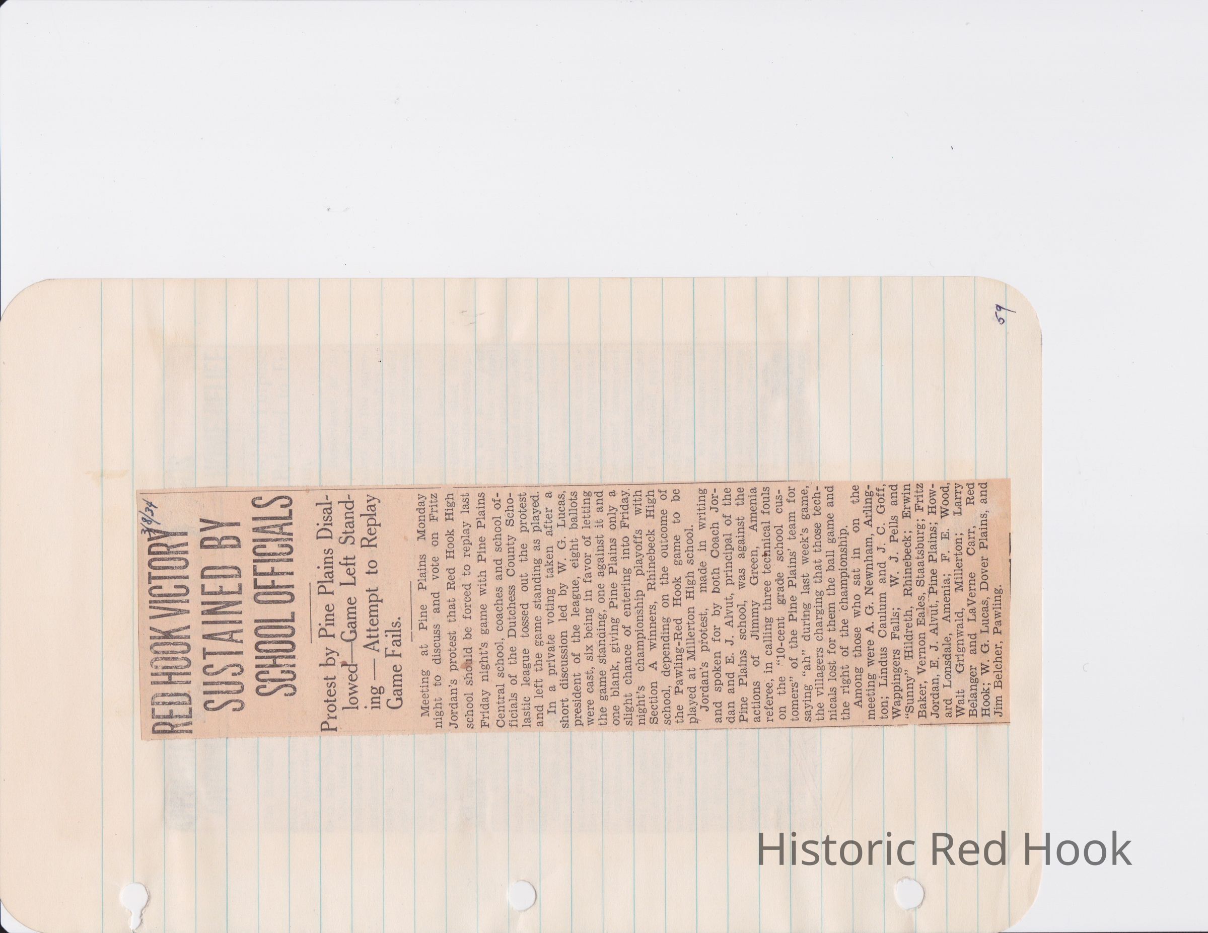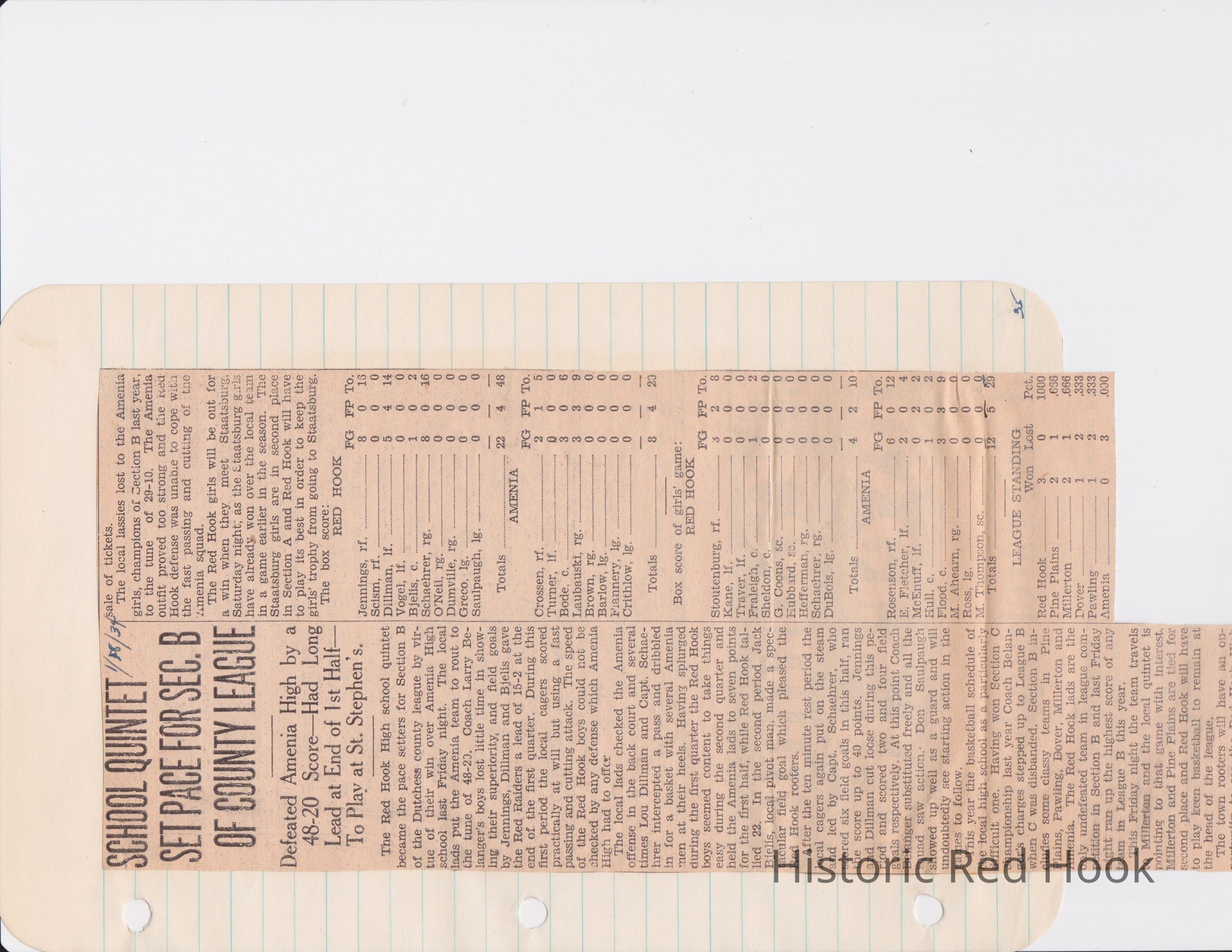 Scrapbook put together by Norman Vogel. It contains newspaper clippings about school news and sports from Red Hook High School 1933-1934. It was given to Patsy Vogel by Norman's widow, Margaret Vogel.