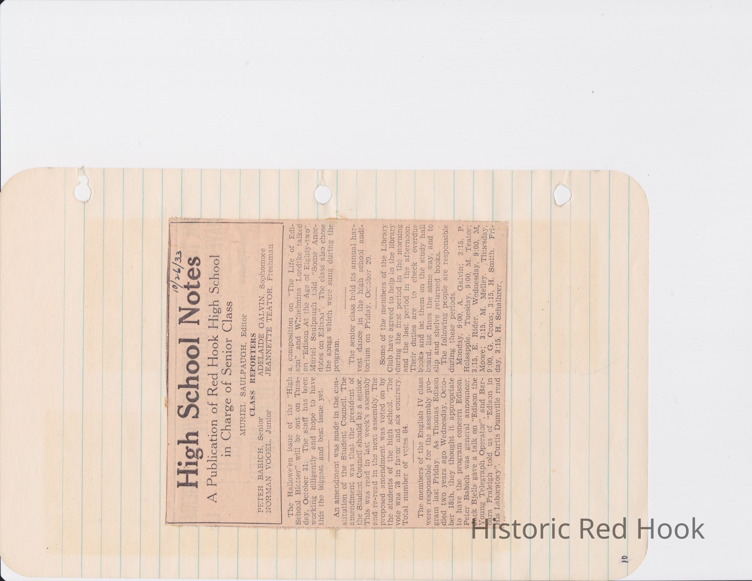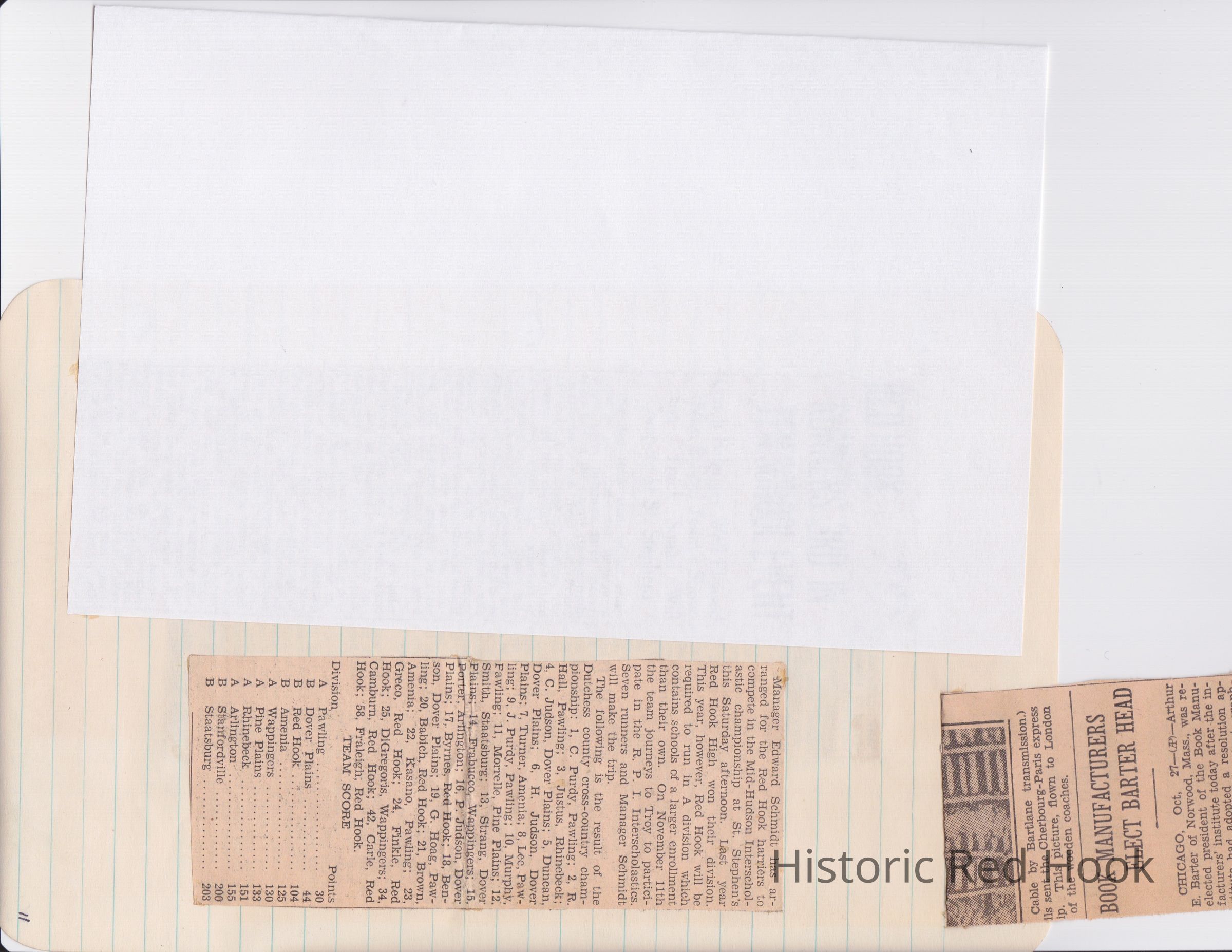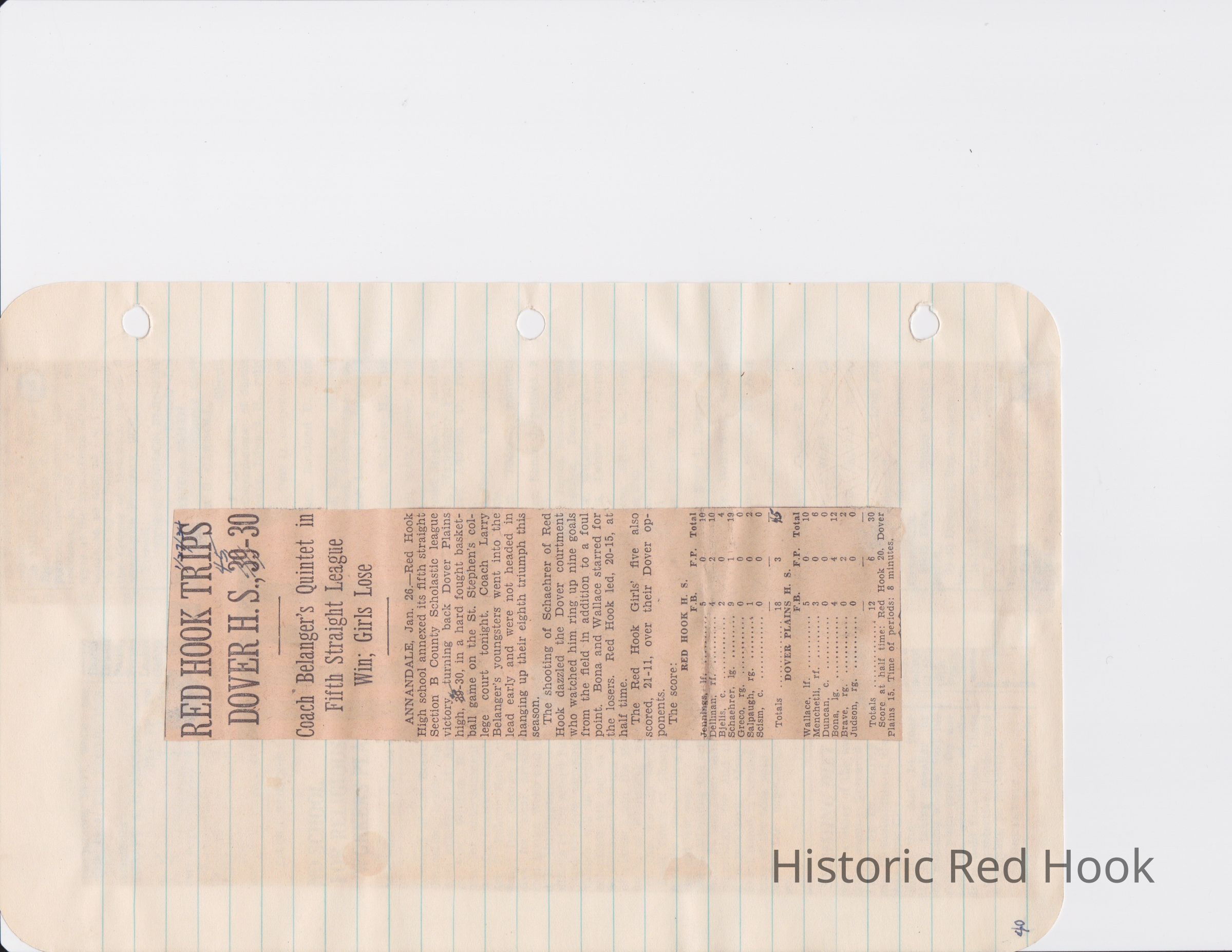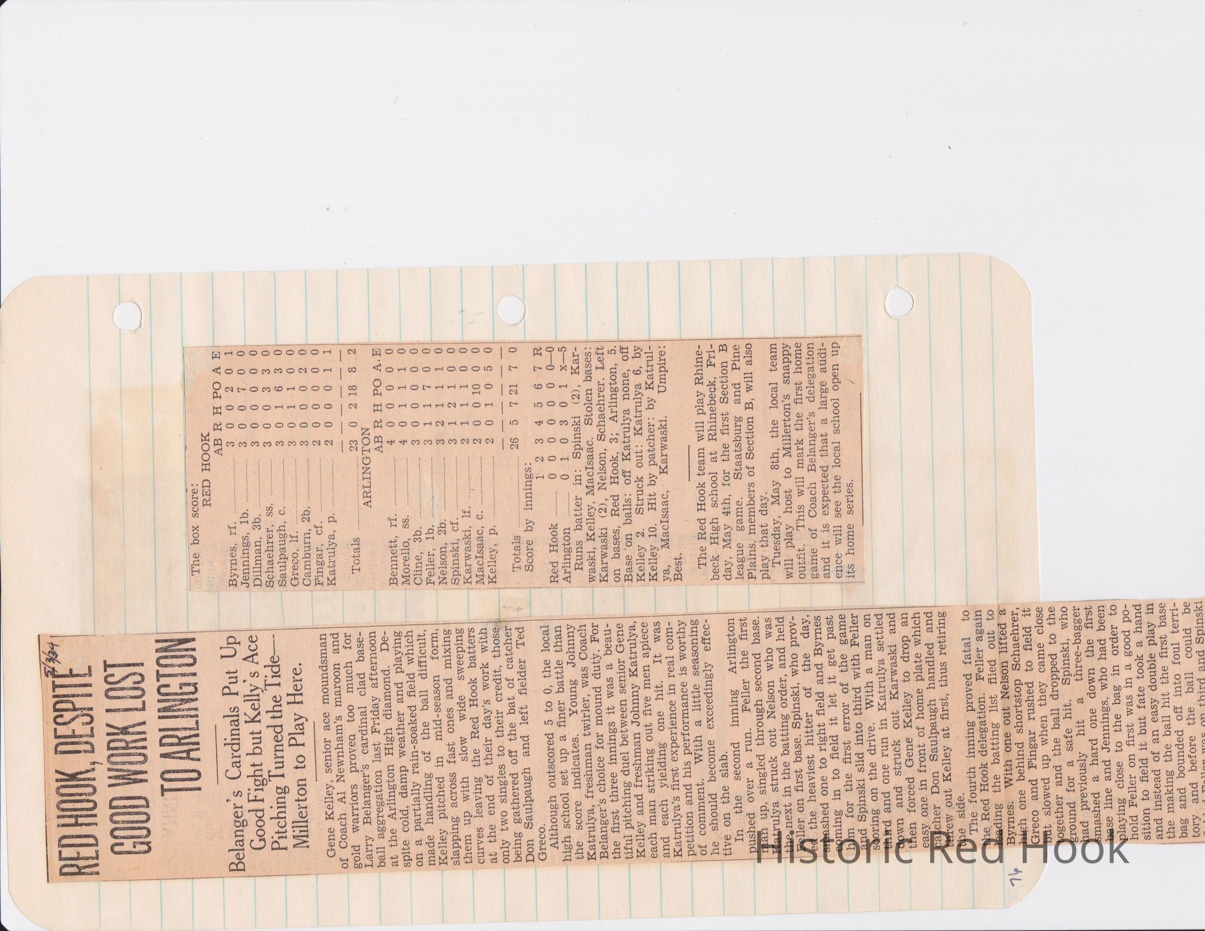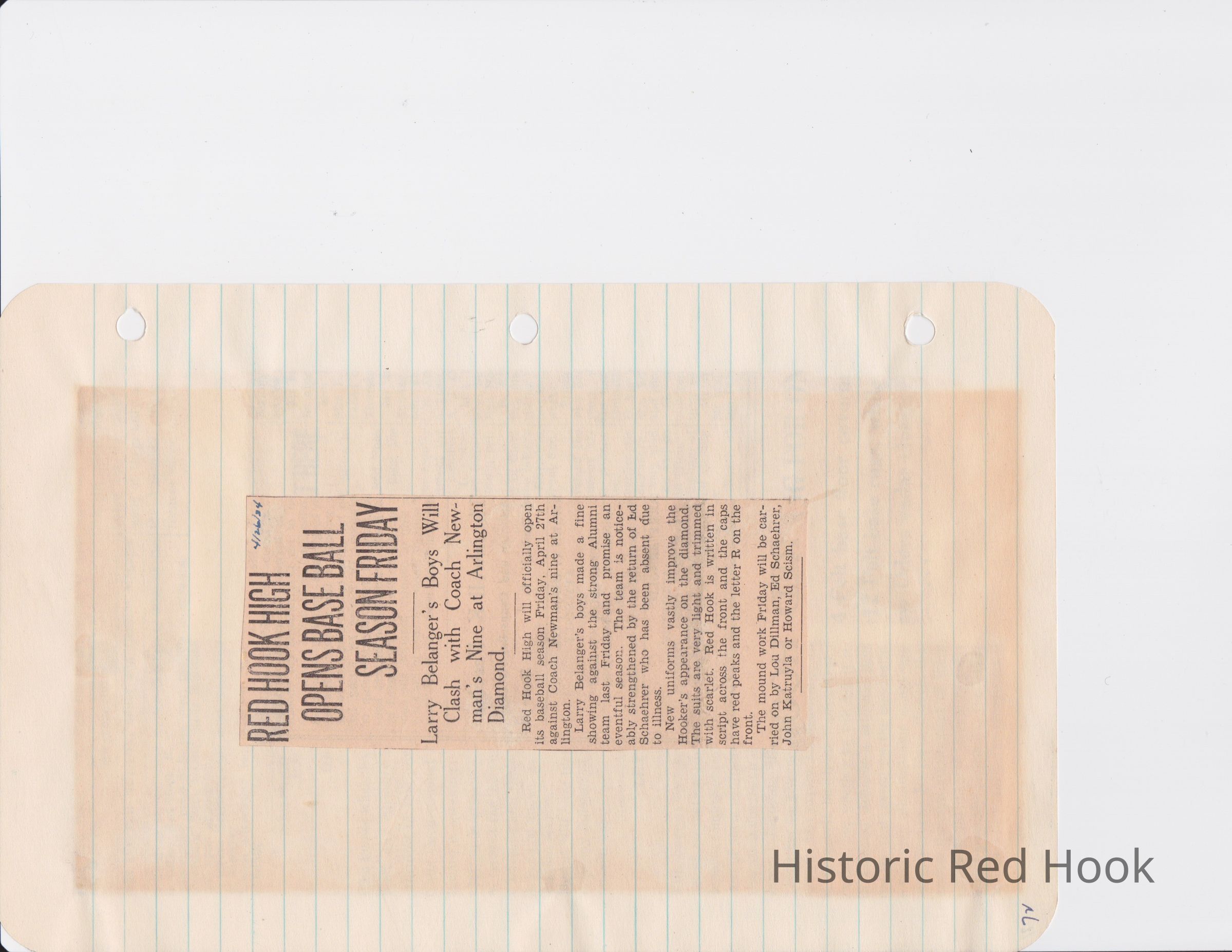 Scrapbook put together by Norman Vogel. It contains newspaper clippings about school news and sports from Red Hook High School 1933-1934. It was given to Patsy Vogel by Norman's widow, Margaret Vogel.