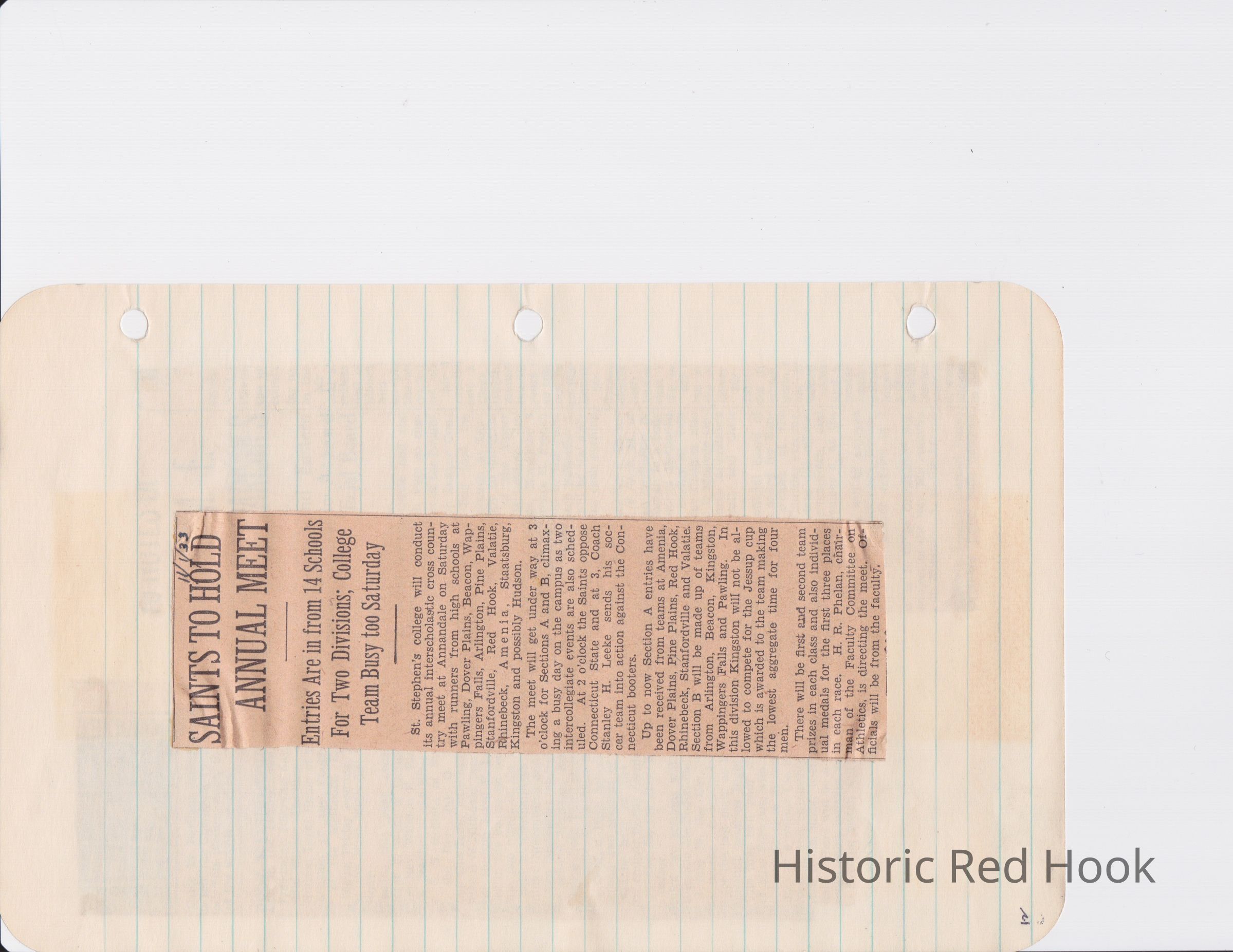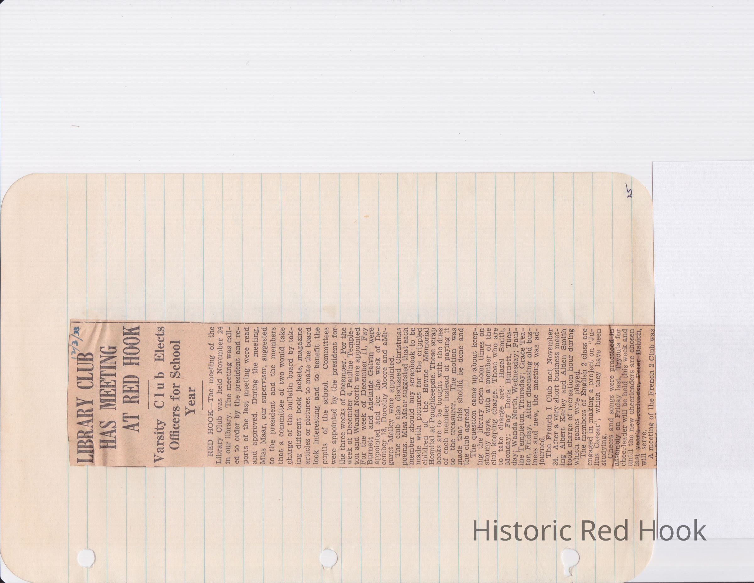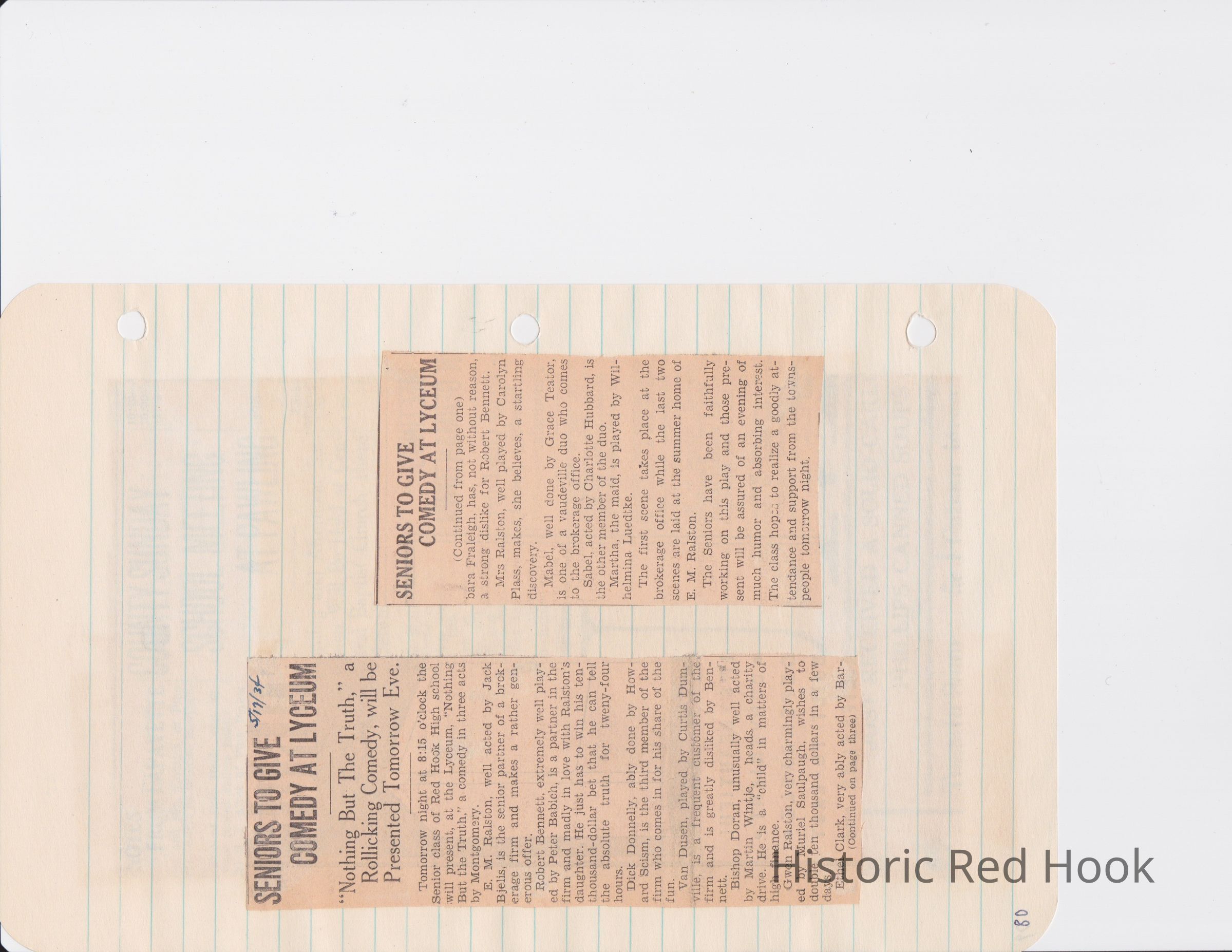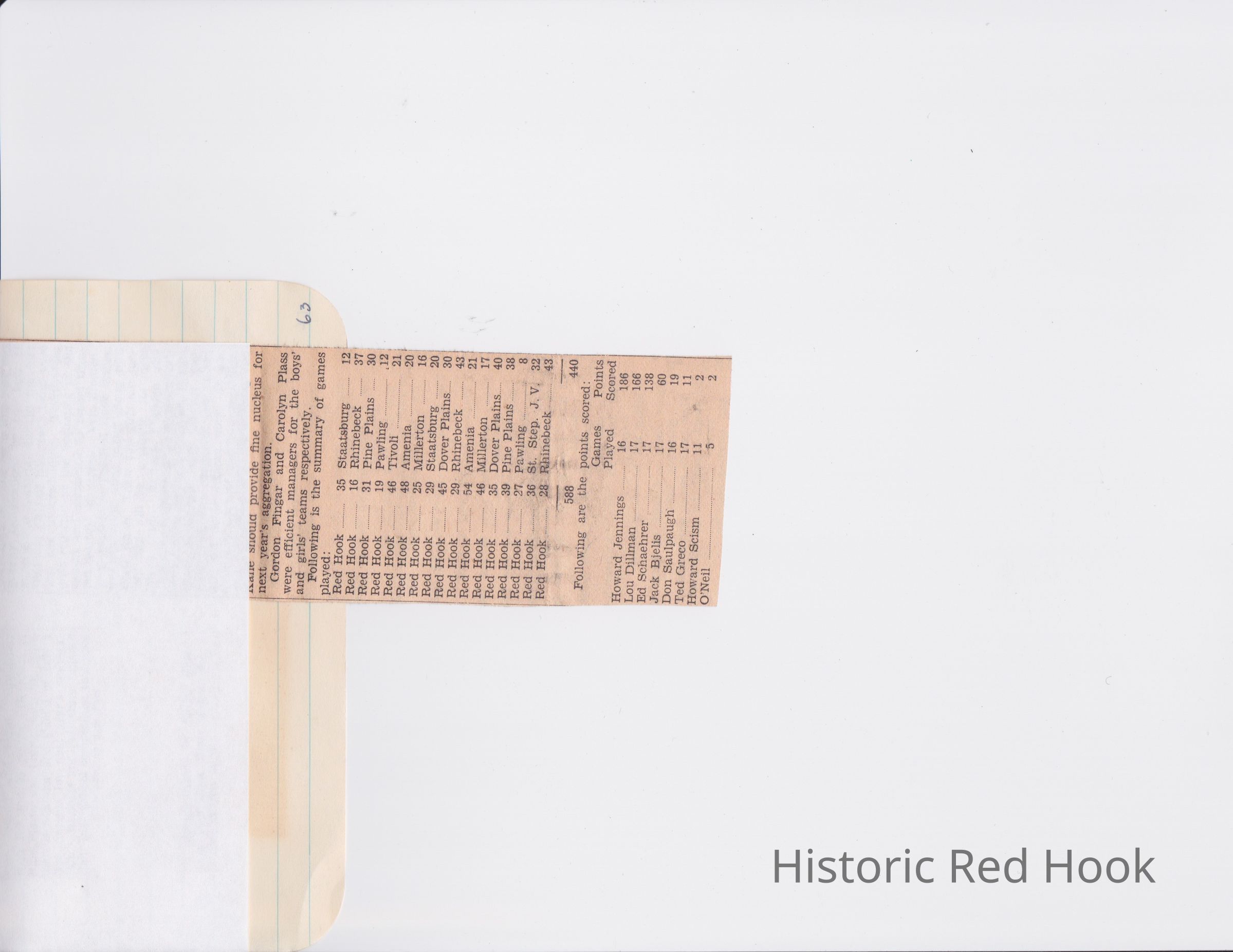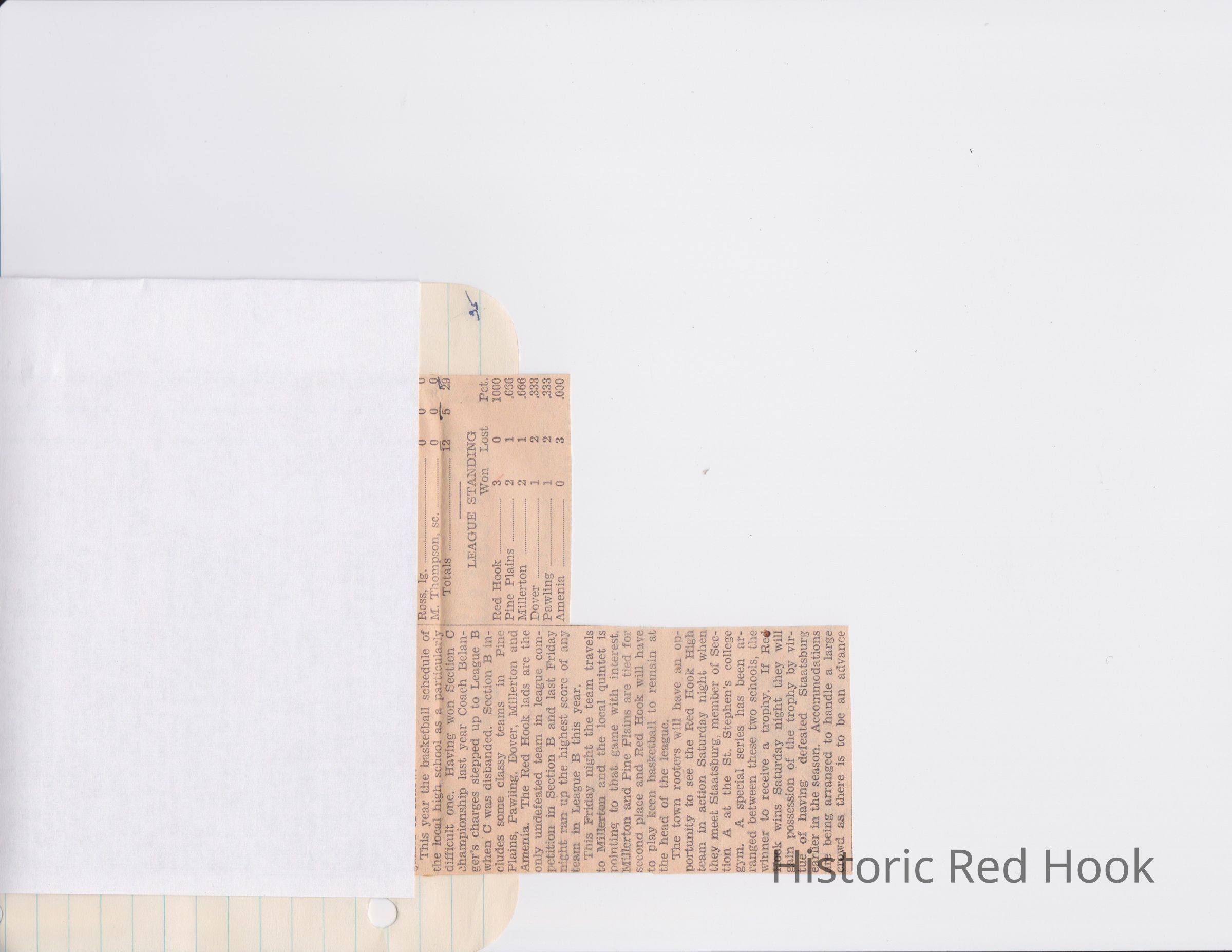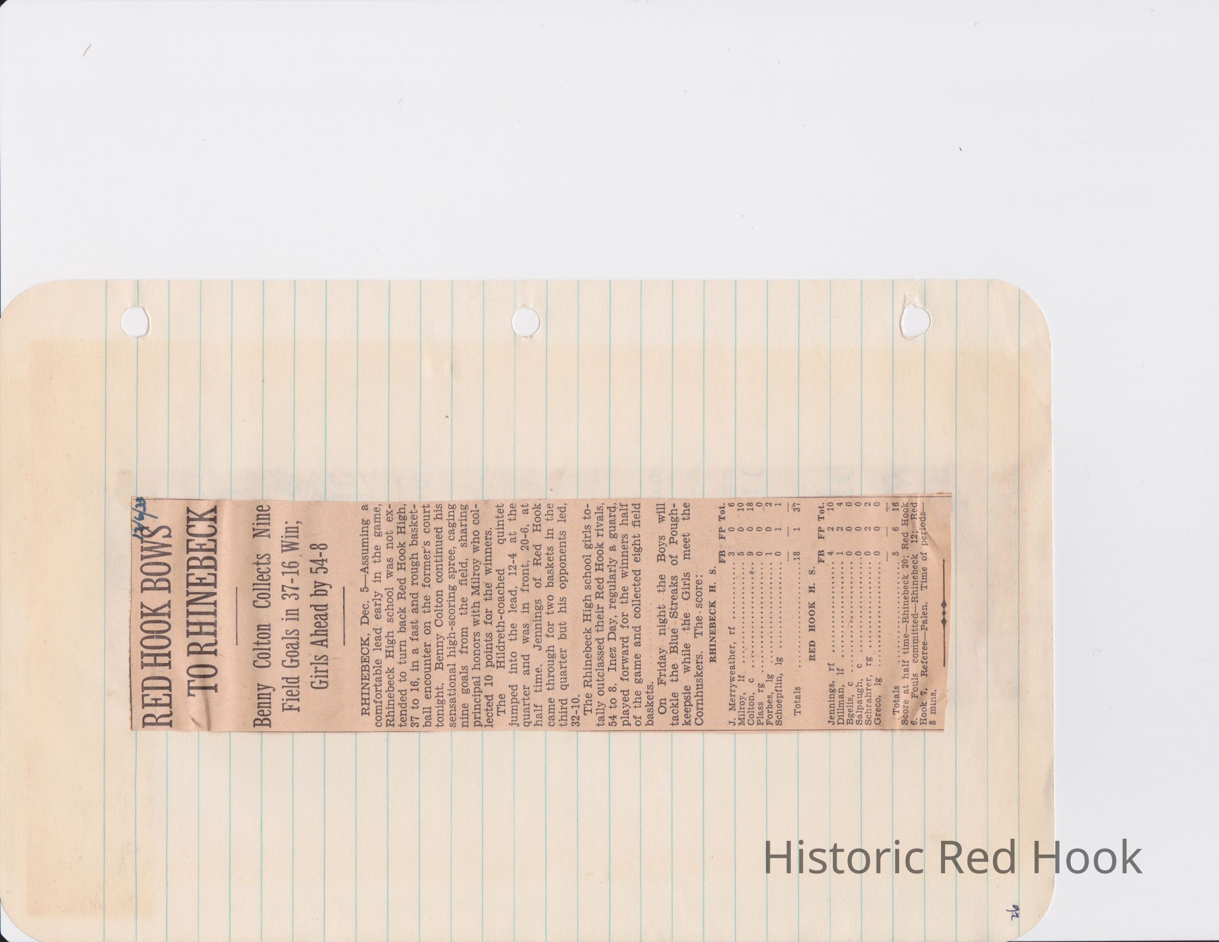 Scrapbook put together by Norman Vogel. It contains newspaper clippings about school news and sports from Red Hook High School 1933-1934. It was given to Patsy Vogel by Norman's widow, Margaret Vogel.