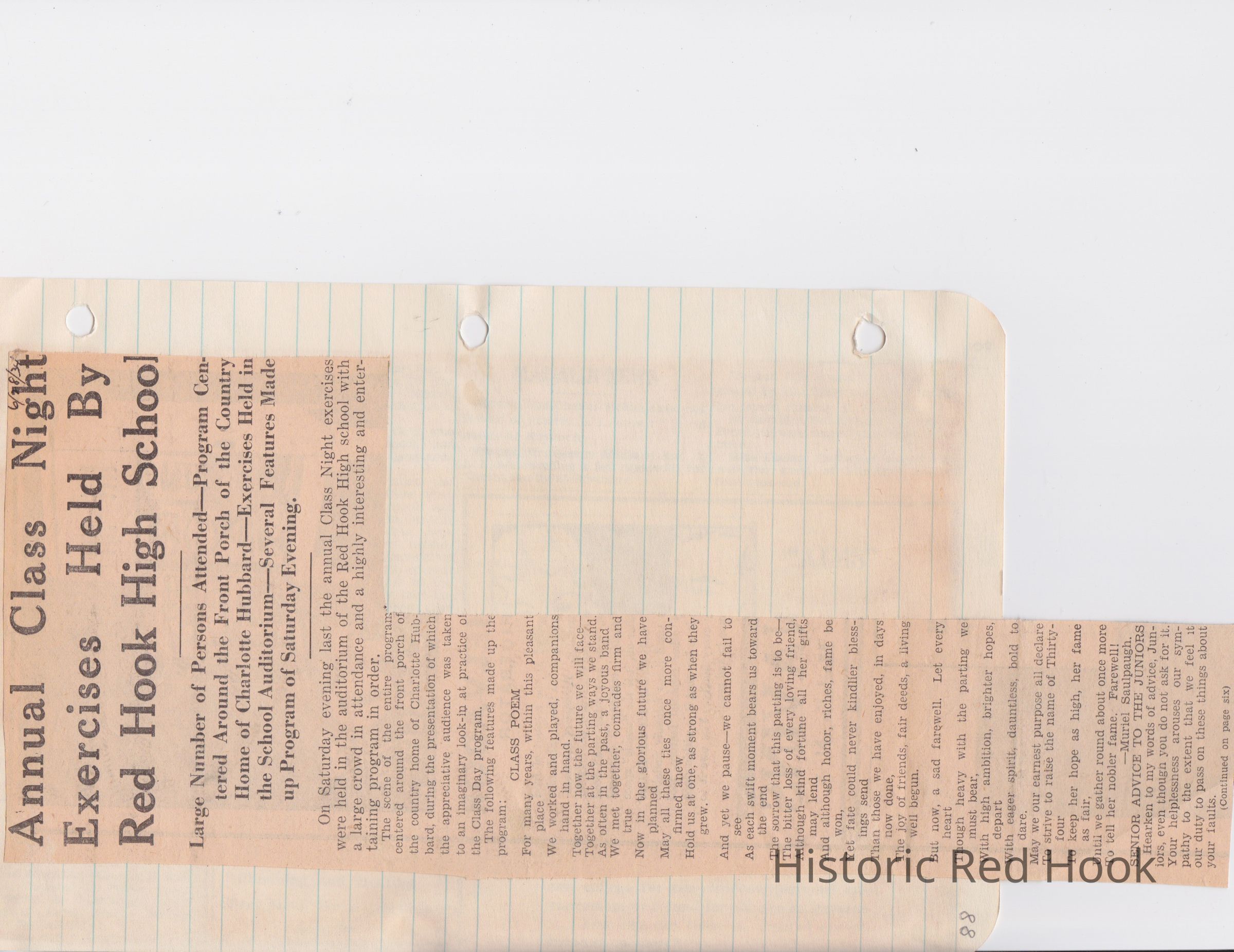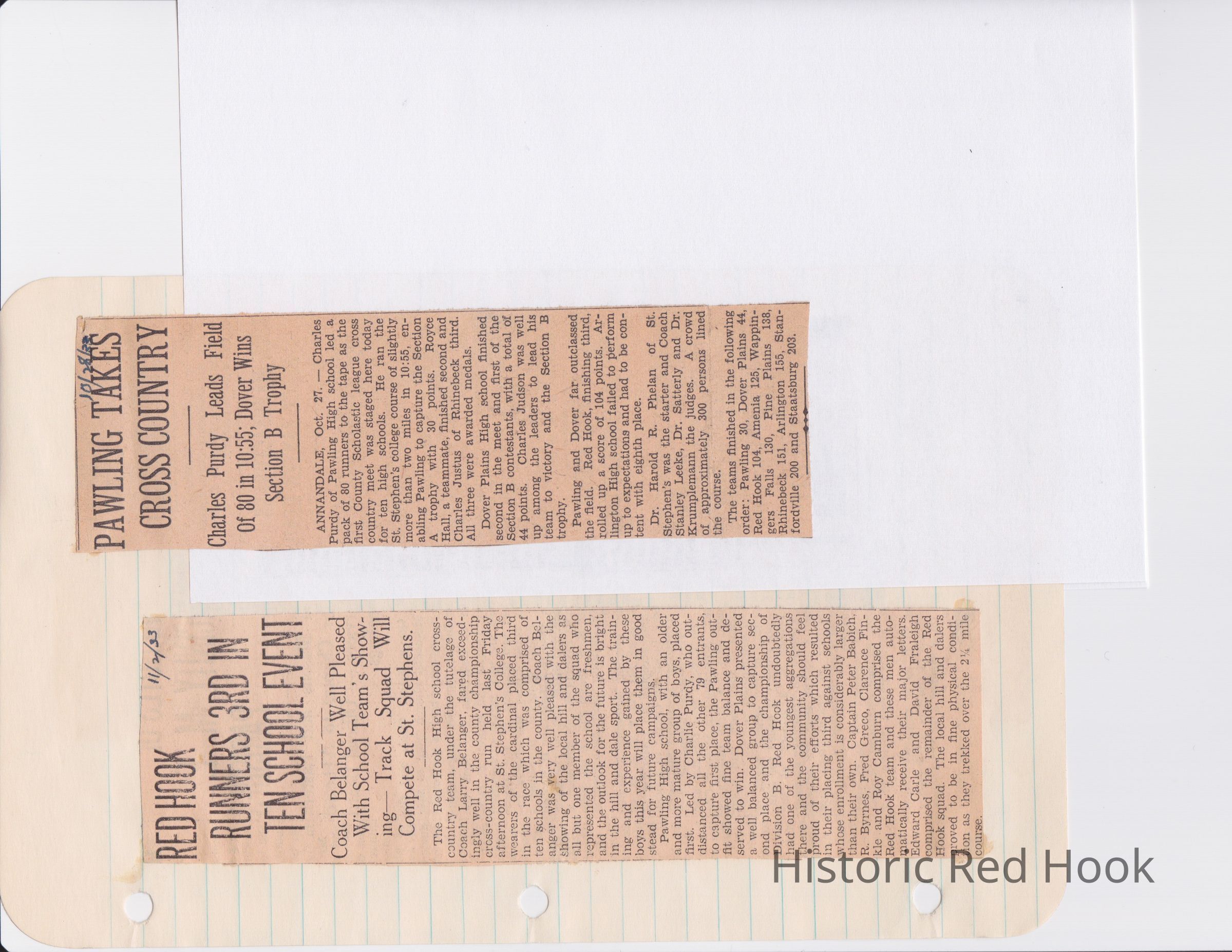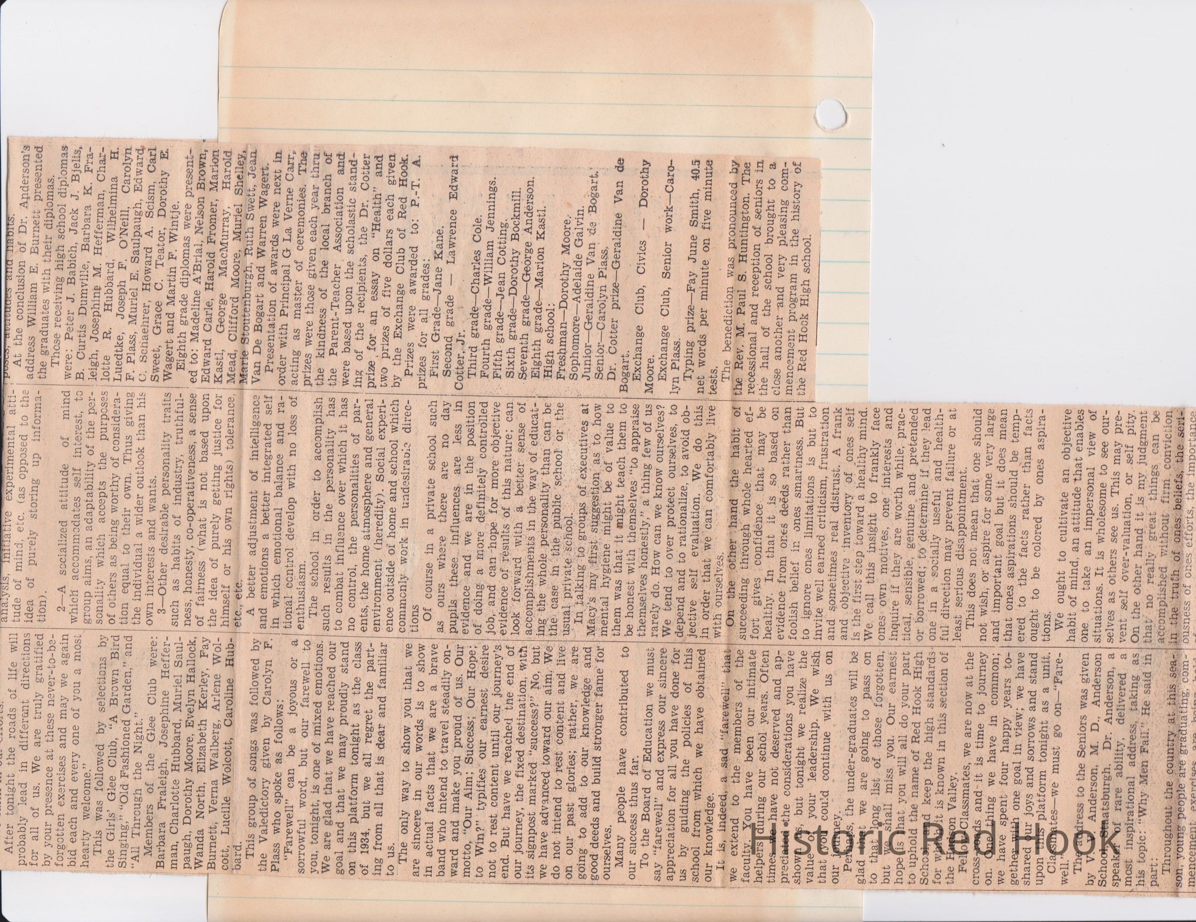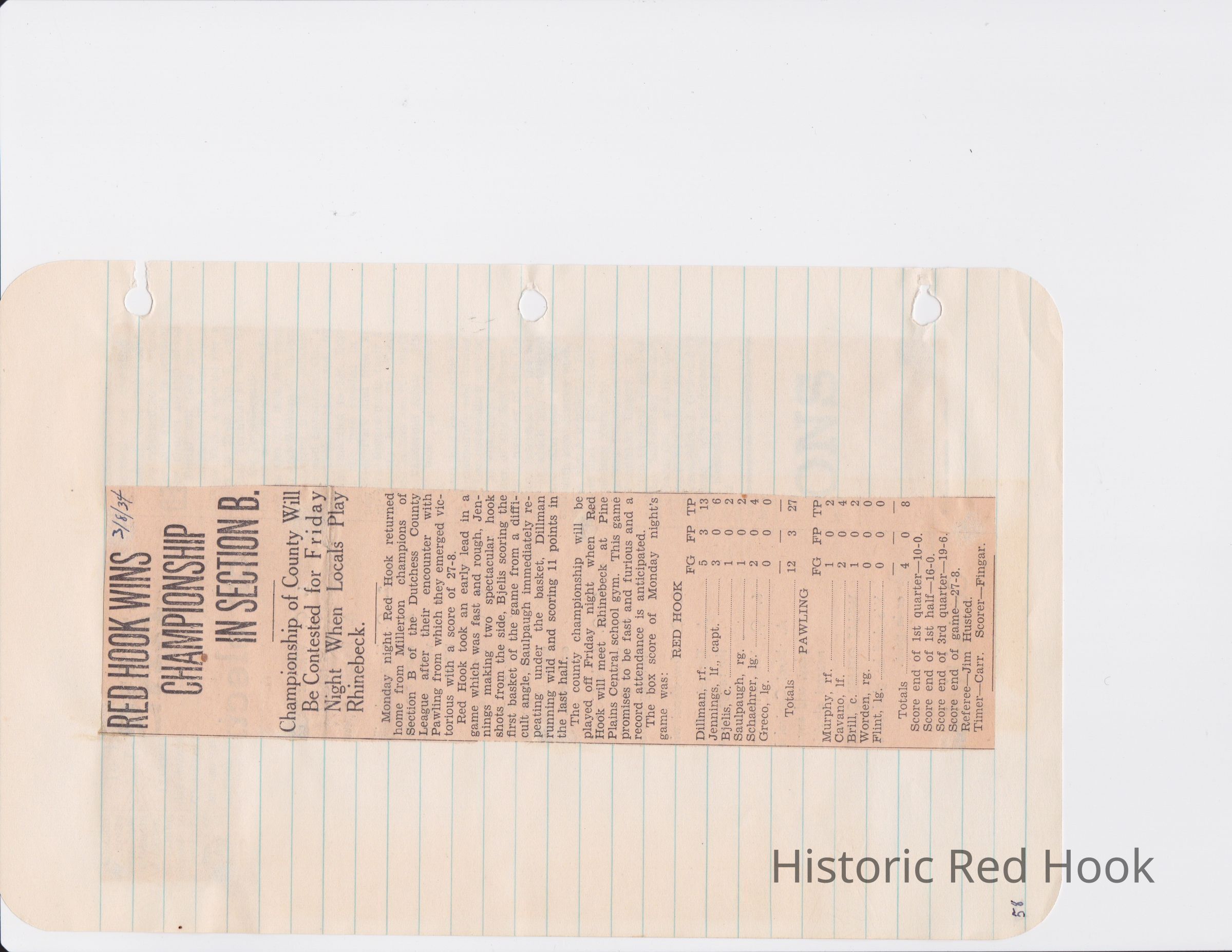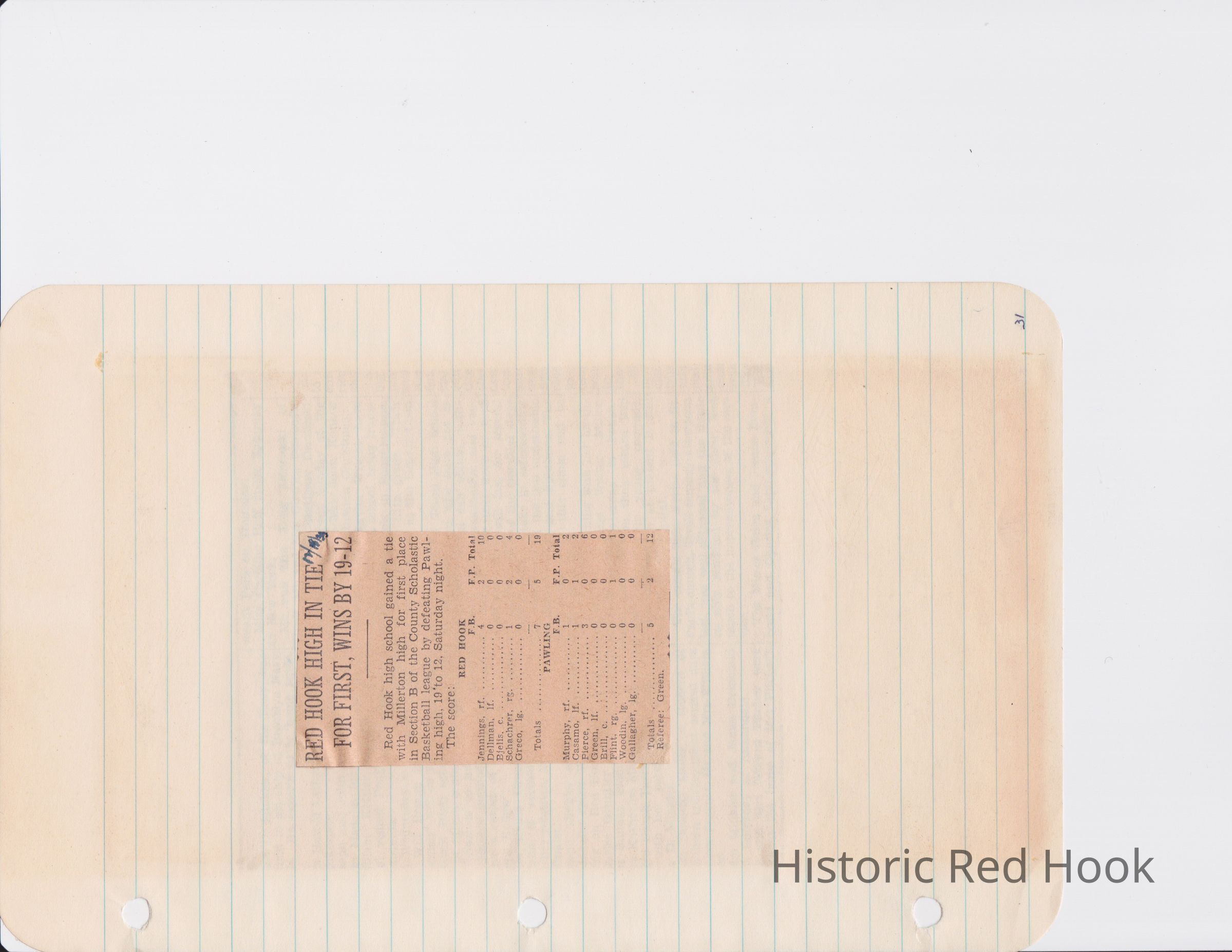 Scrapbook put together by Norman Vogel. It contains newspaper clippings about school news and sports from Red Hook High School 1933-1934. It was given to Patsy Vogel by Norman's widow, Margaret Vogel.