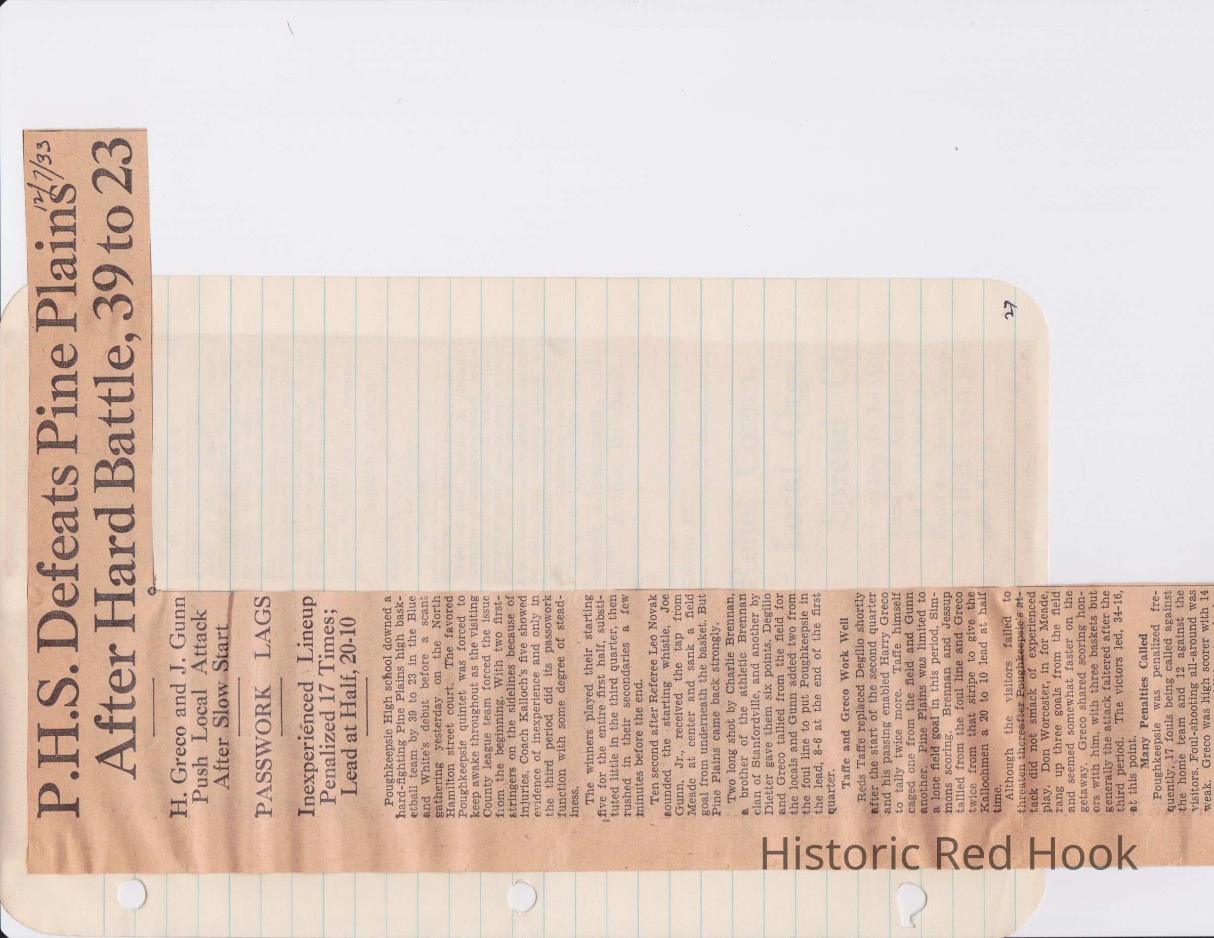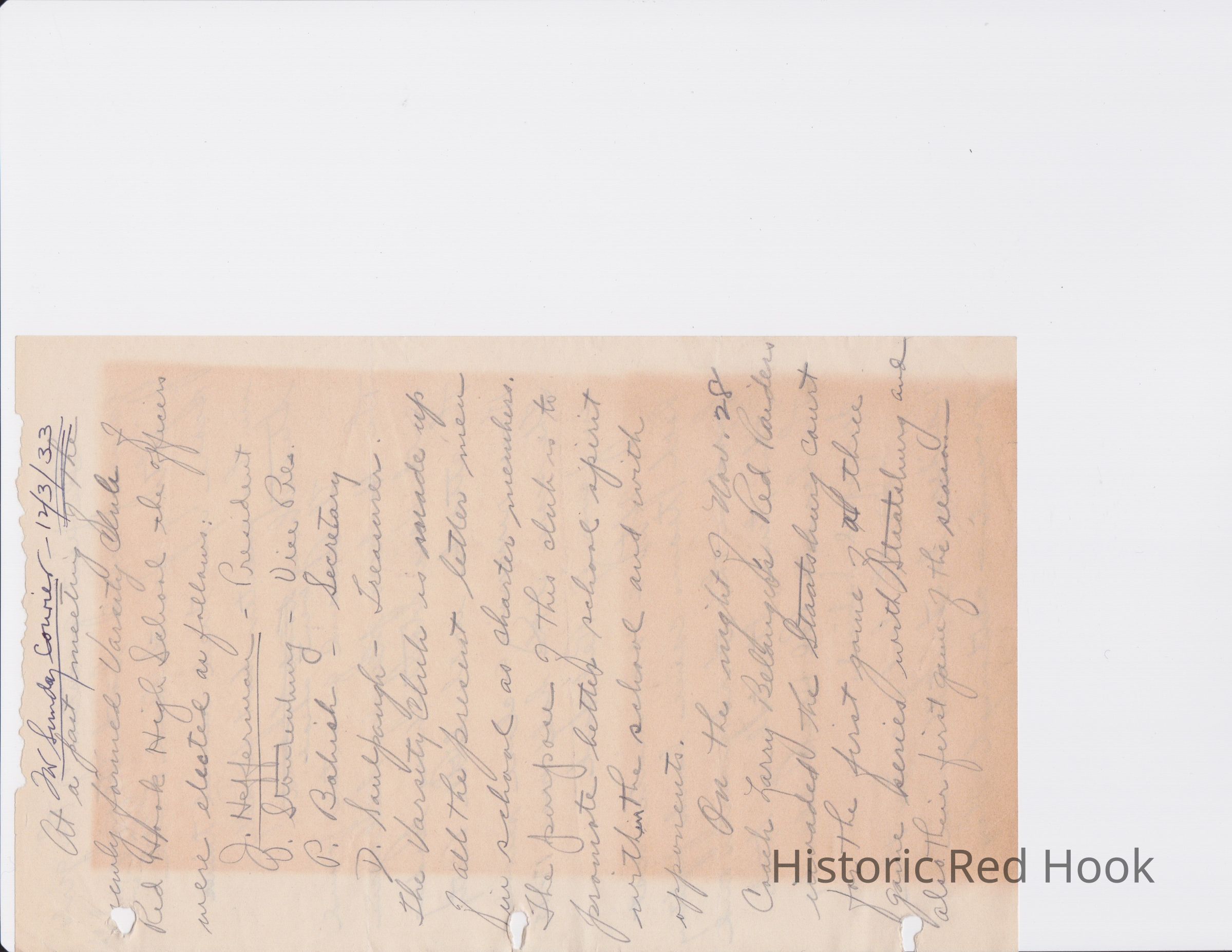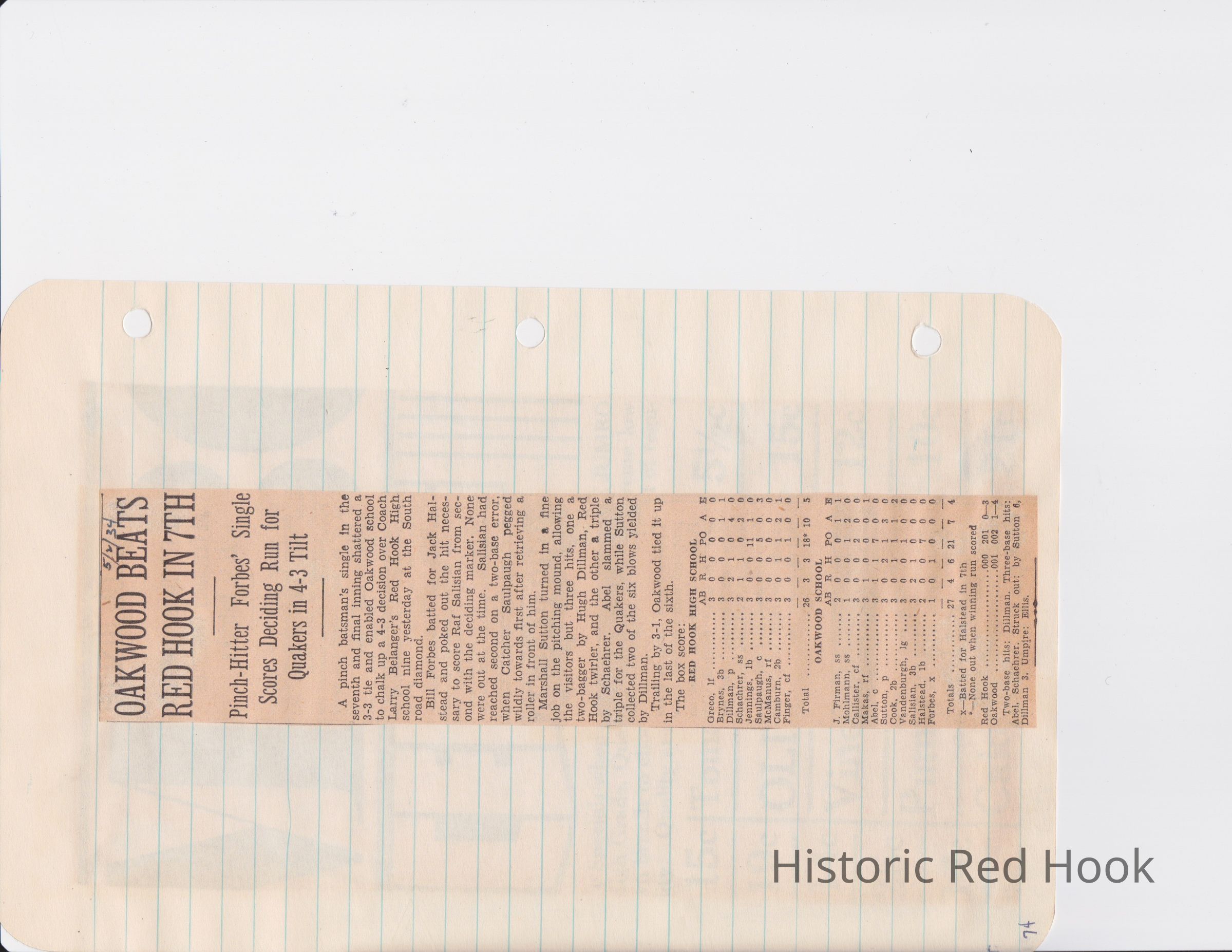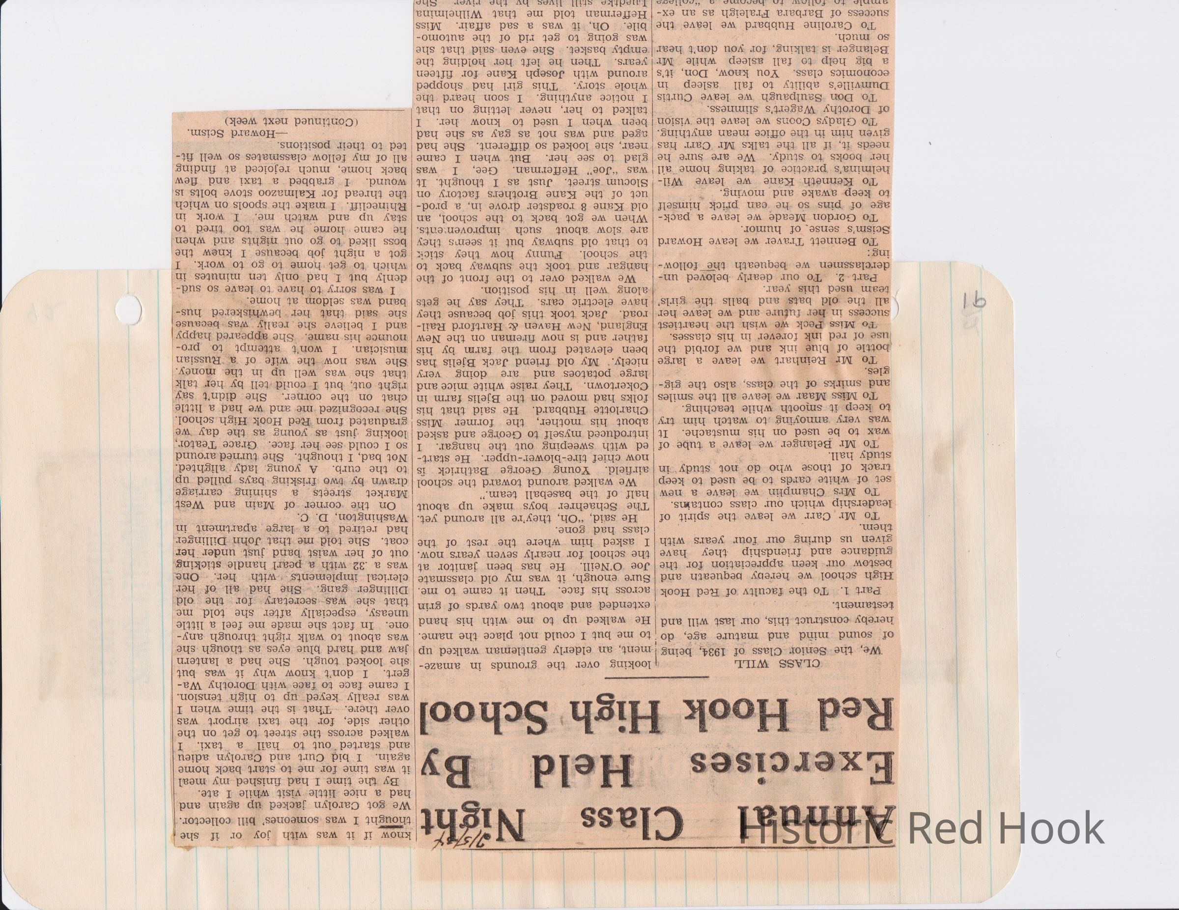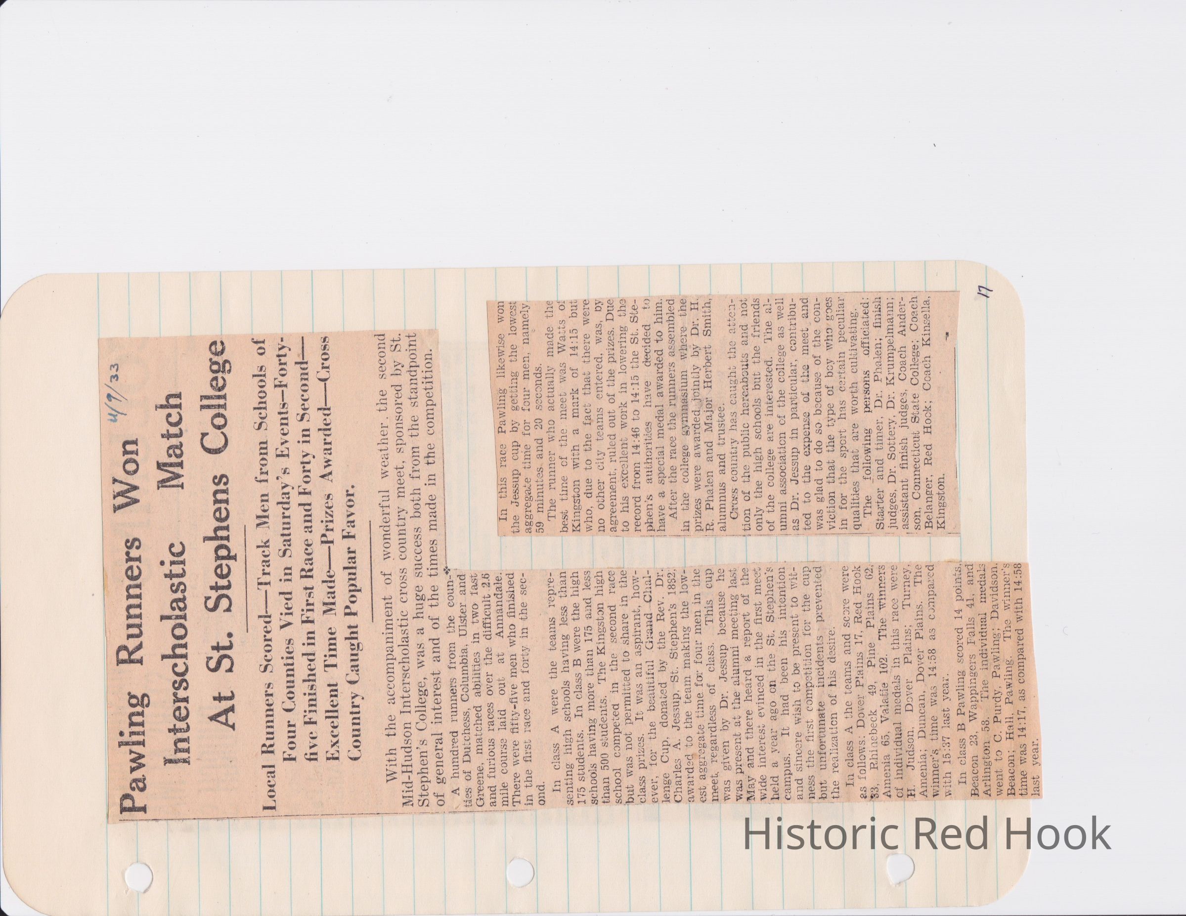 Scrapbook put together by Norman Vogel. It contains newspaper clippings about school news and sports from Red Hook High School 1933-1934. It was given to Patsy Vogel by Norman's widow, Margaret Vogel.