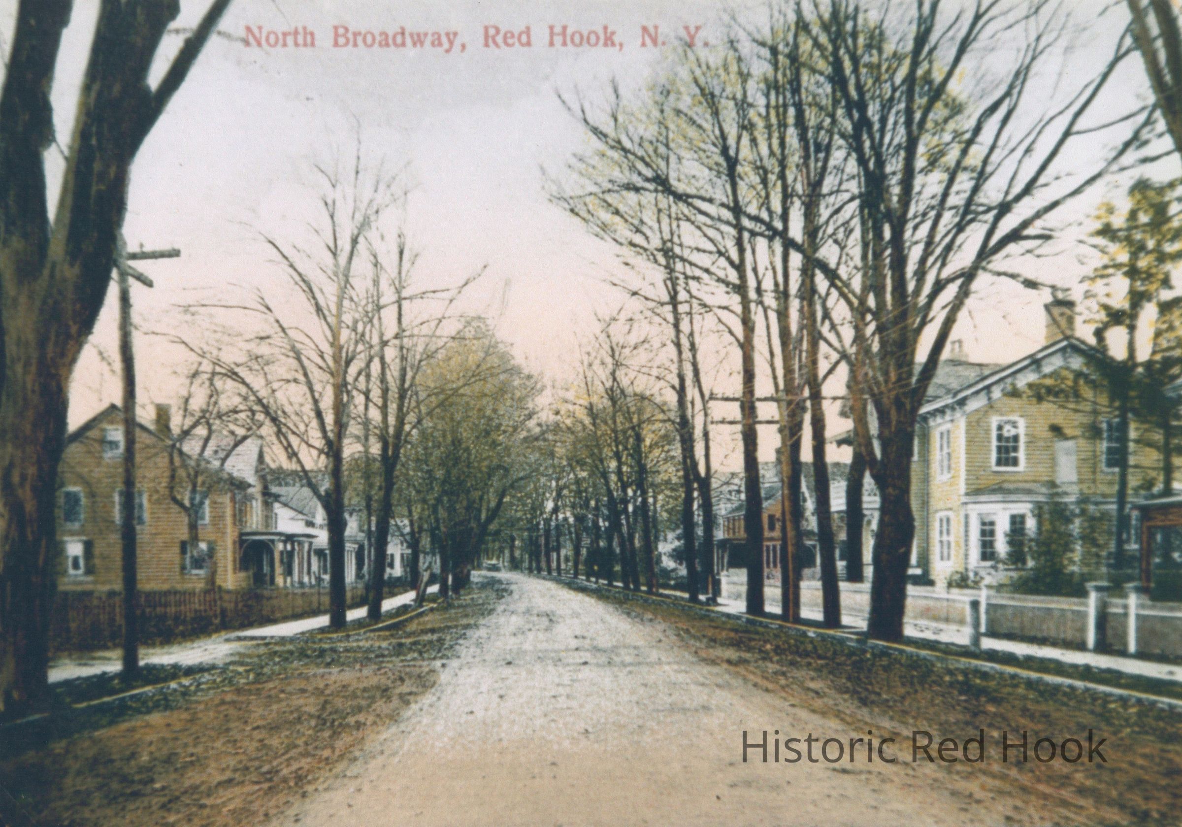 View of North Broadway (unpaved_ in the Village of Red Hook, NY. Copy of postcard.