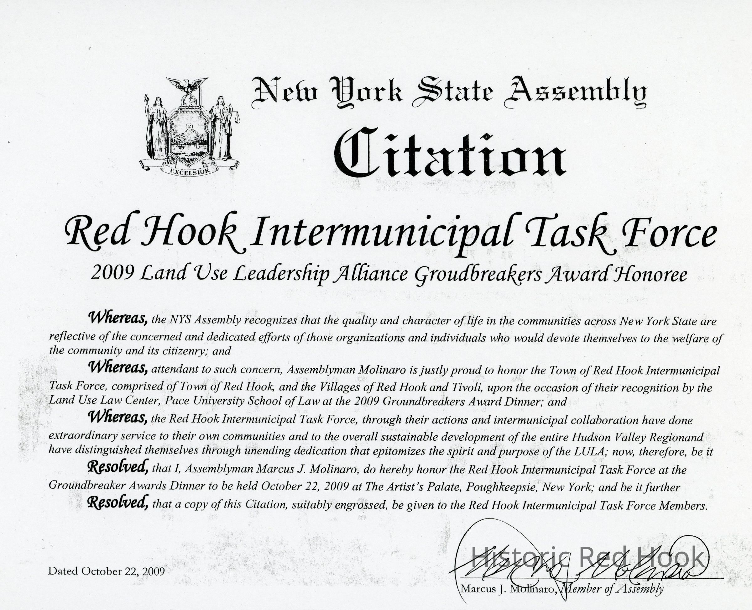 NY State Assembly Citation for Bill O'Neill