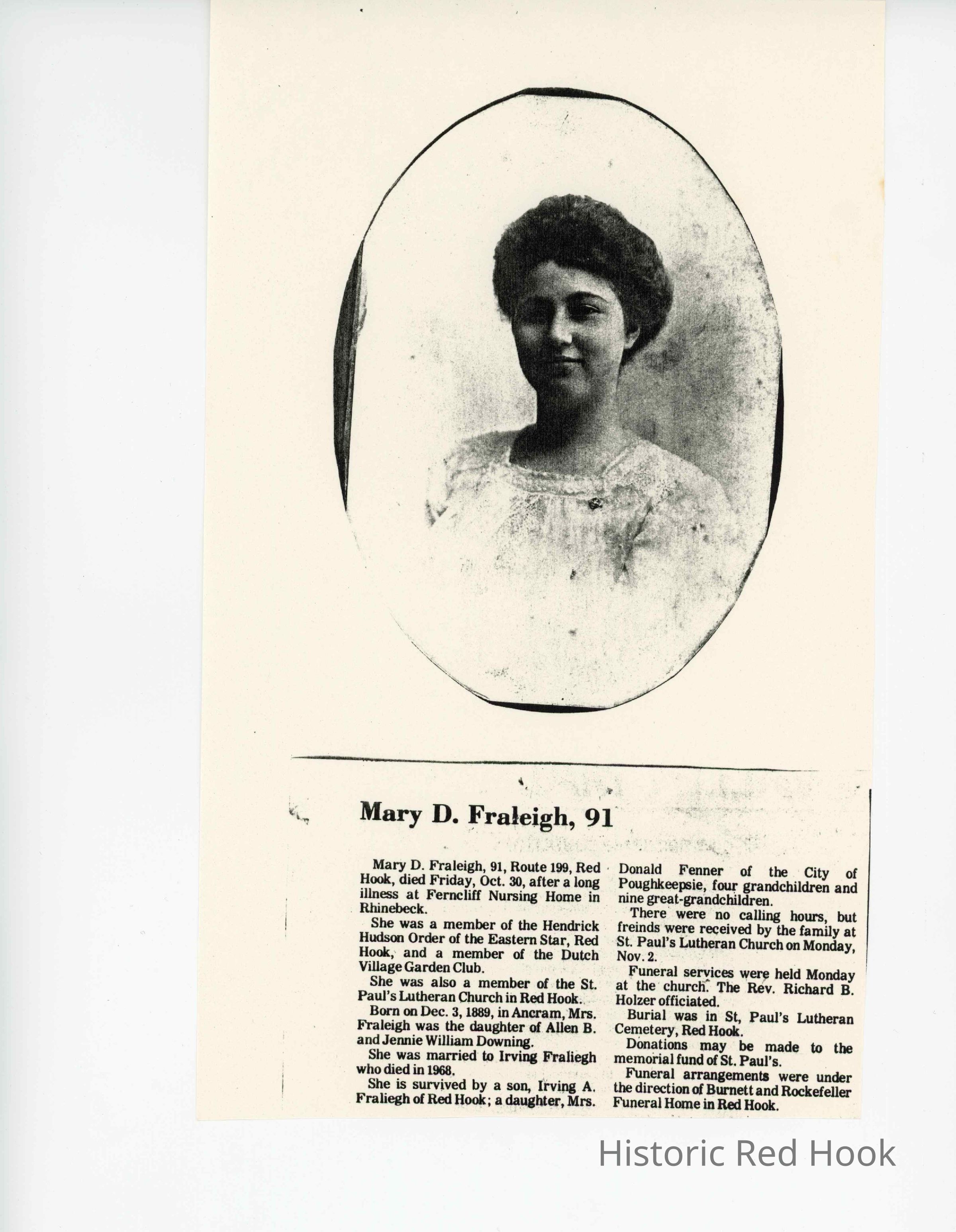 Obituaries, Mary (Downing) Fraleigh, 1981 and article about A.J. Downing, a relative of hers.