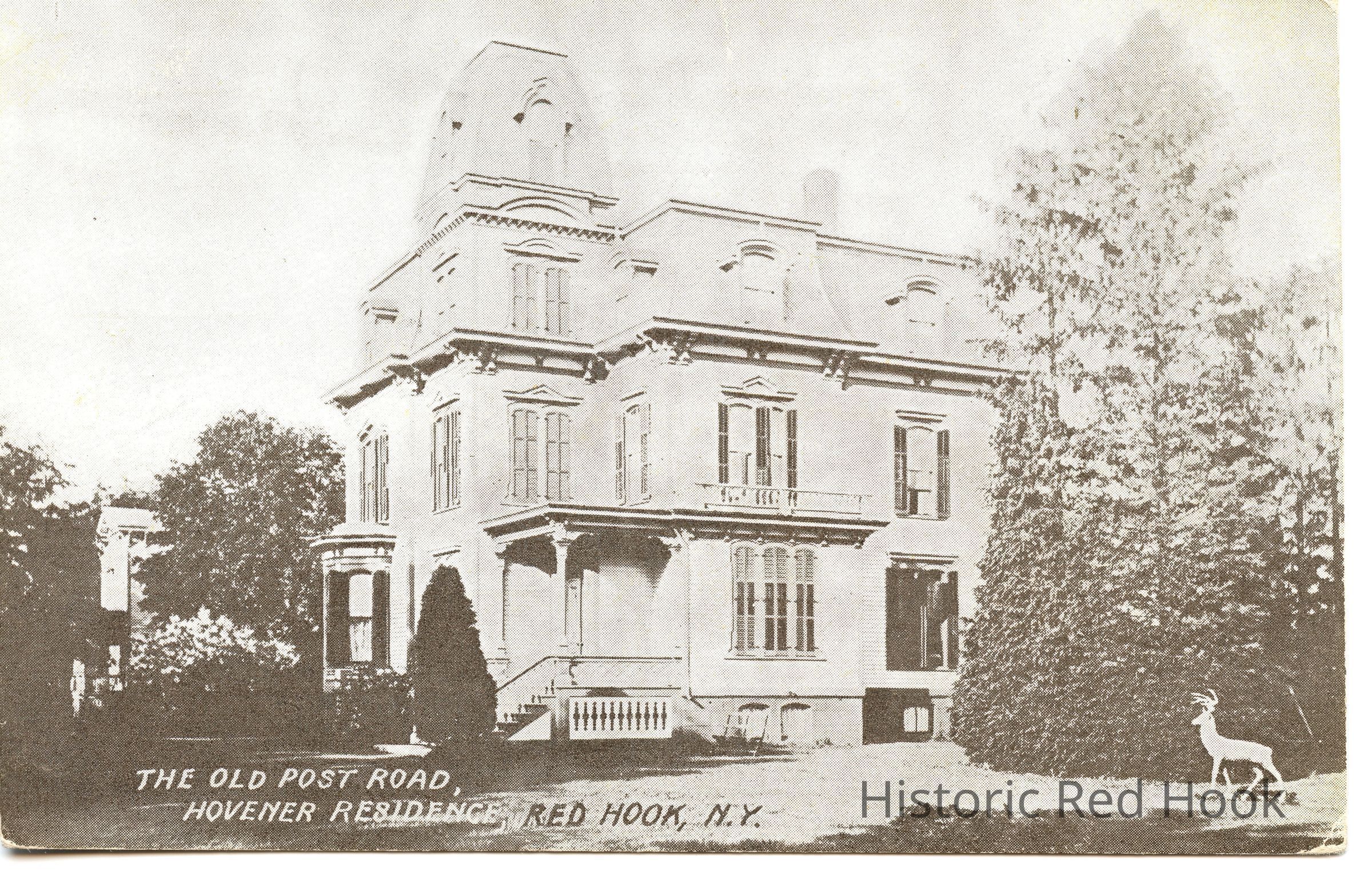 The Old Post Road Hevenor Residence, Postcard postmarked 1907. Mistakenly spelled 'Hovener' on postcard.