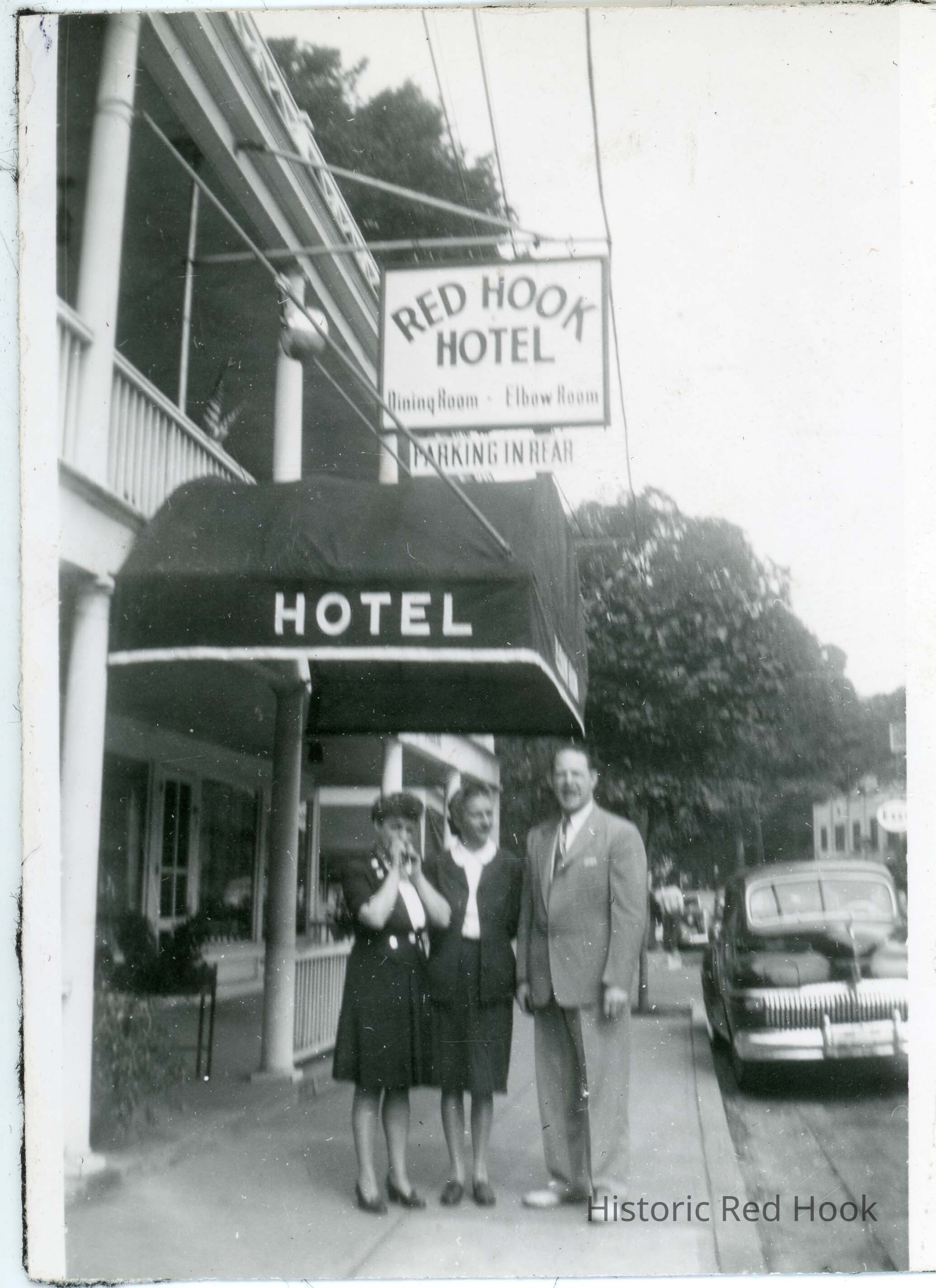 Olive and Howard Laib with another woman in front of Red Hook Hotel, 1950Entry/Object ID