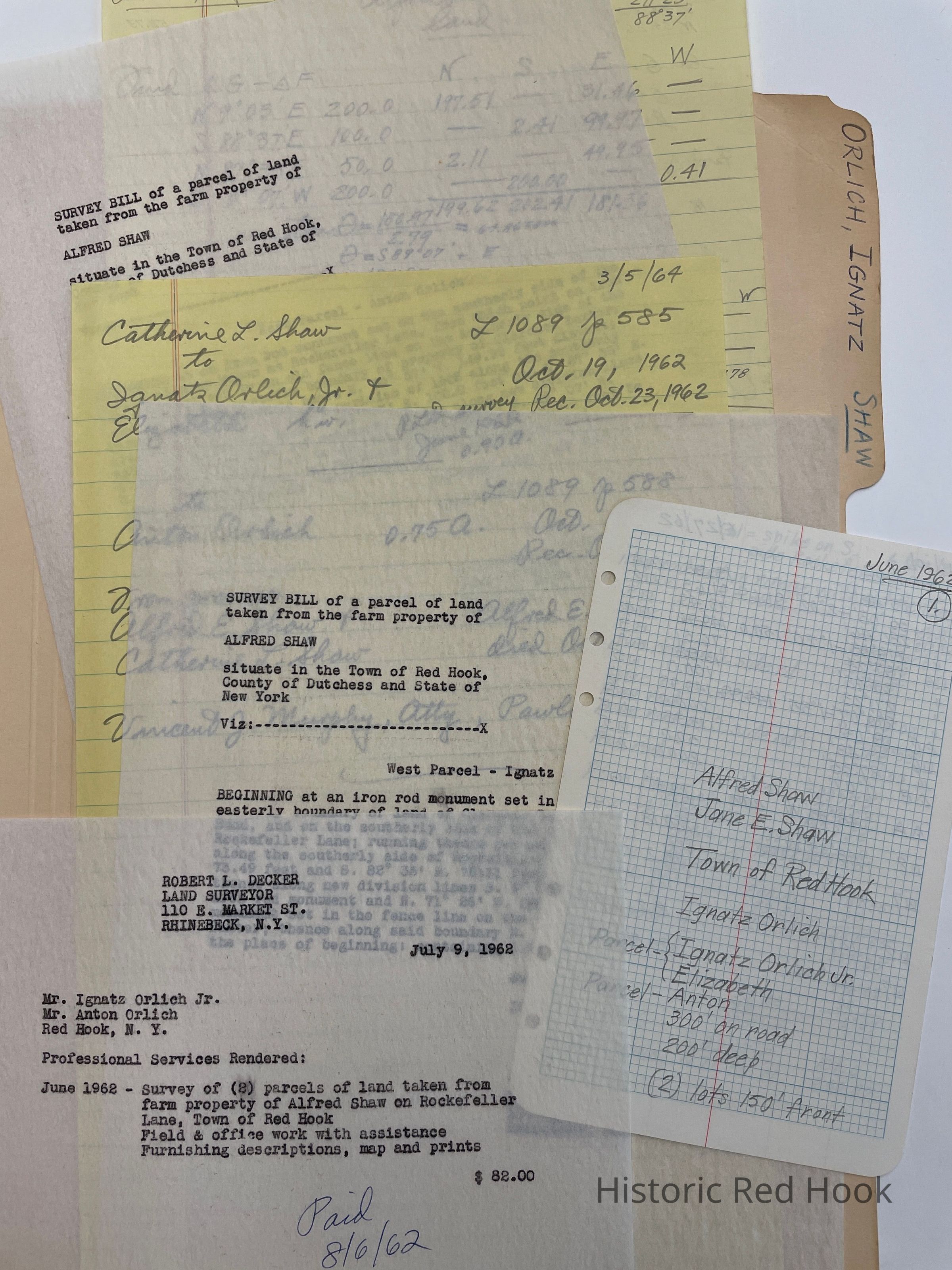 Survey: For Ignatz Orlich June 1962 Parcel taken from property of Alfred Shaw. 0.75 acre. “ East parcel- Anton Orlich”.Collection