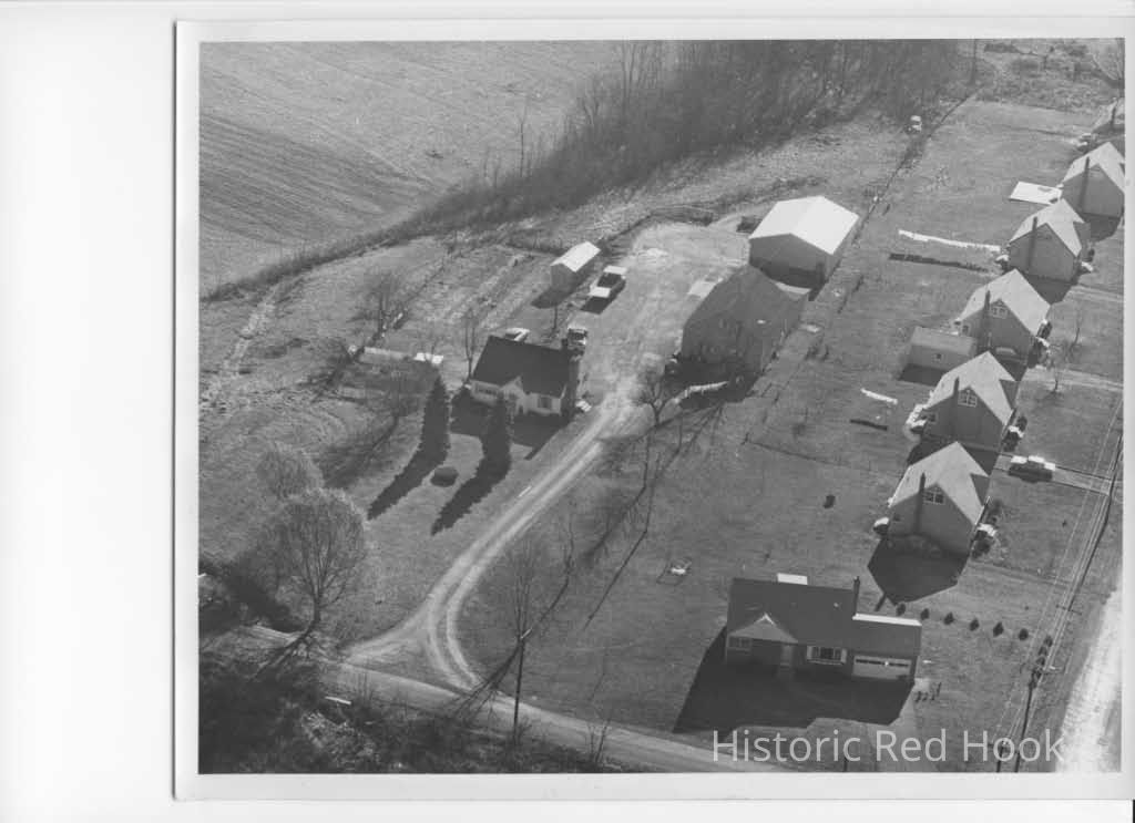An aerial photograph of a housing development. (Potentially Willow Park development). Formerly Orlich Farm. Old Rte. 199 now Orlich Rd.Photograph Details