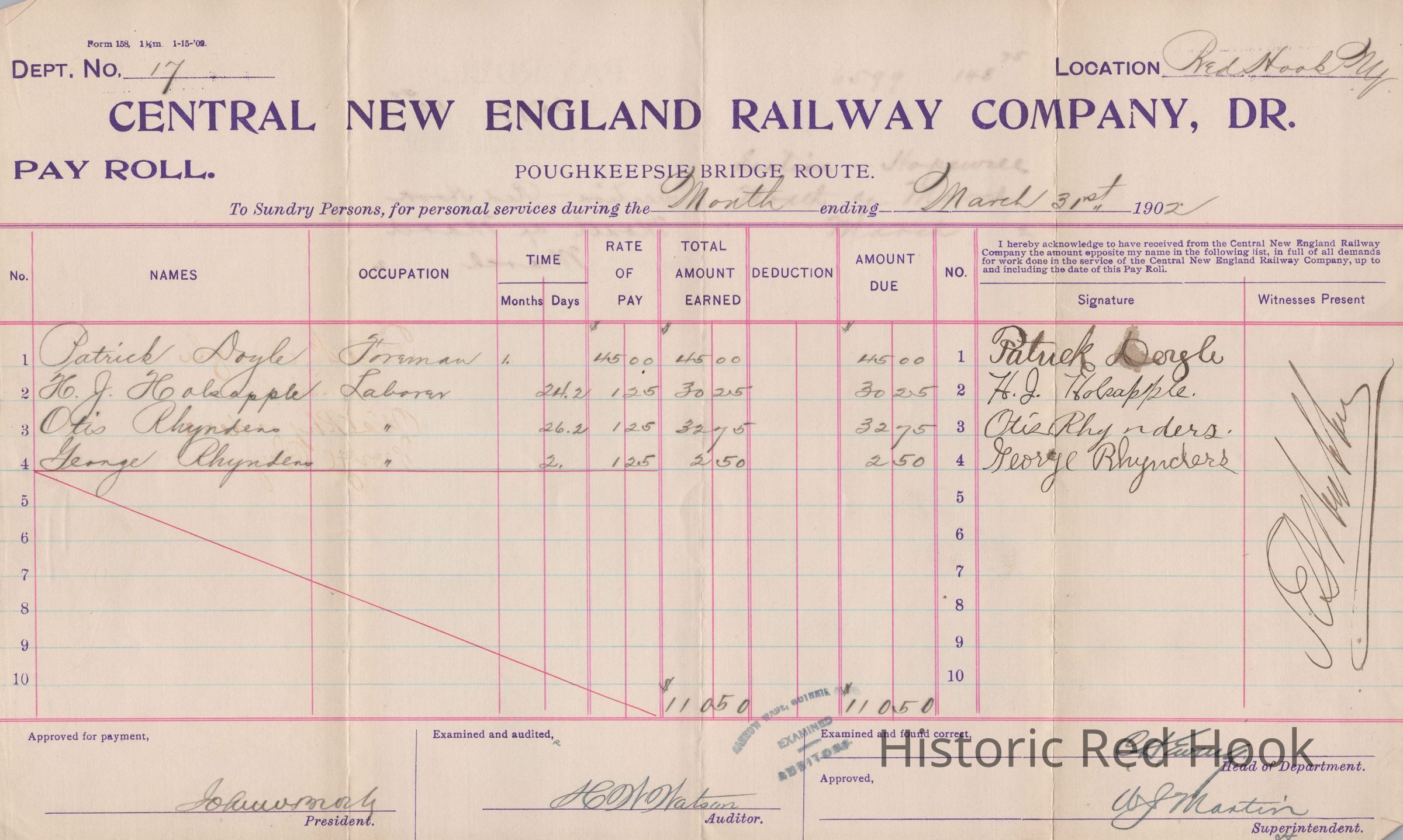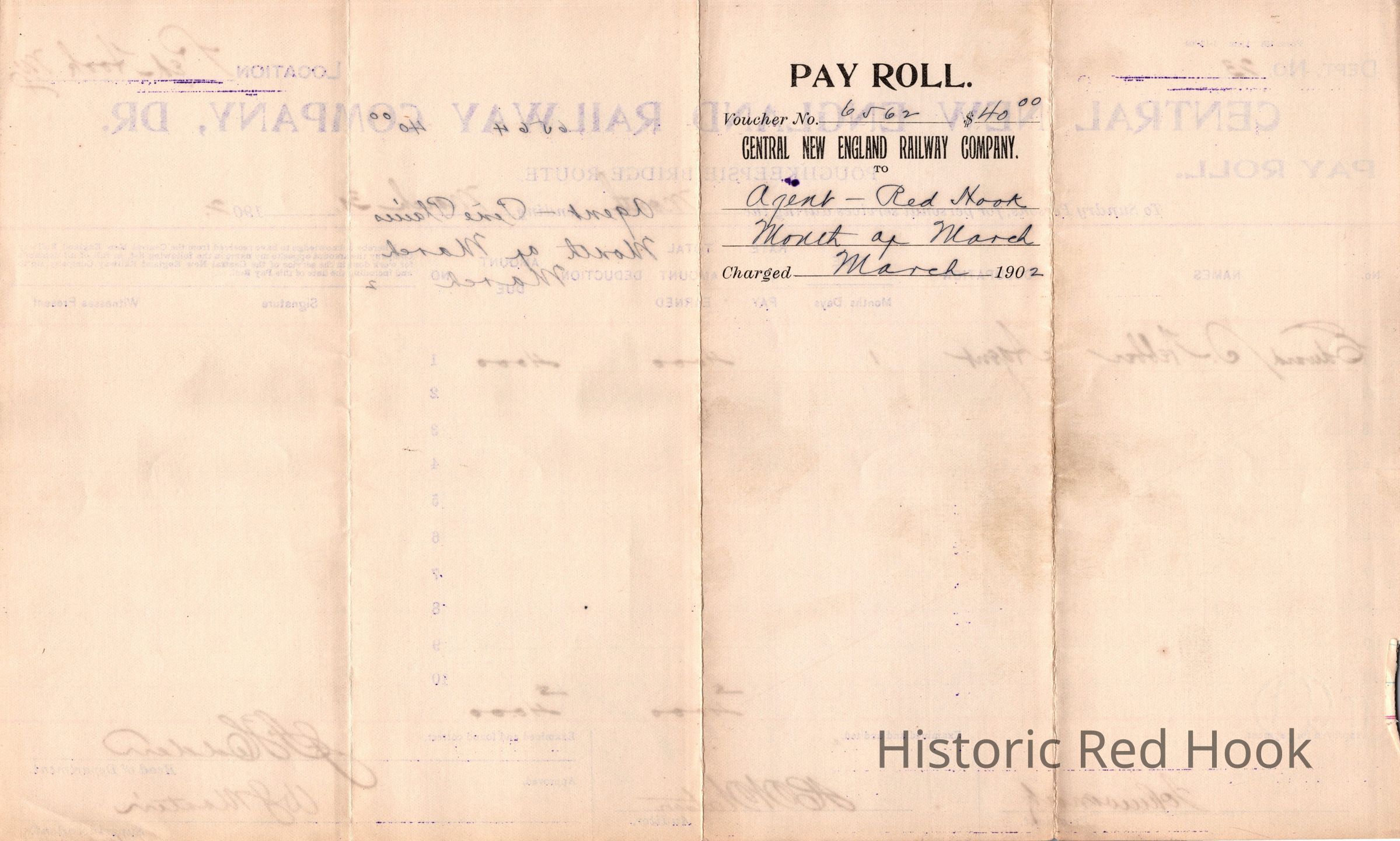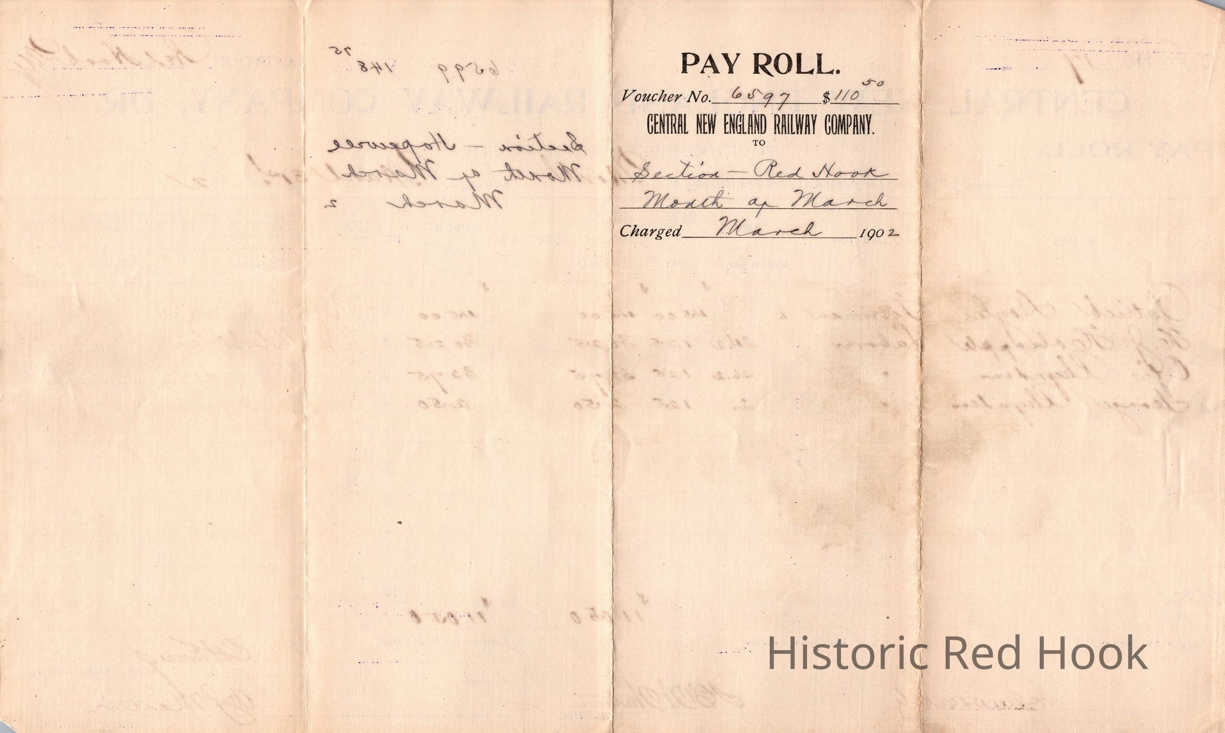 Pay Roll Records for Central New England Railway Company - 1902