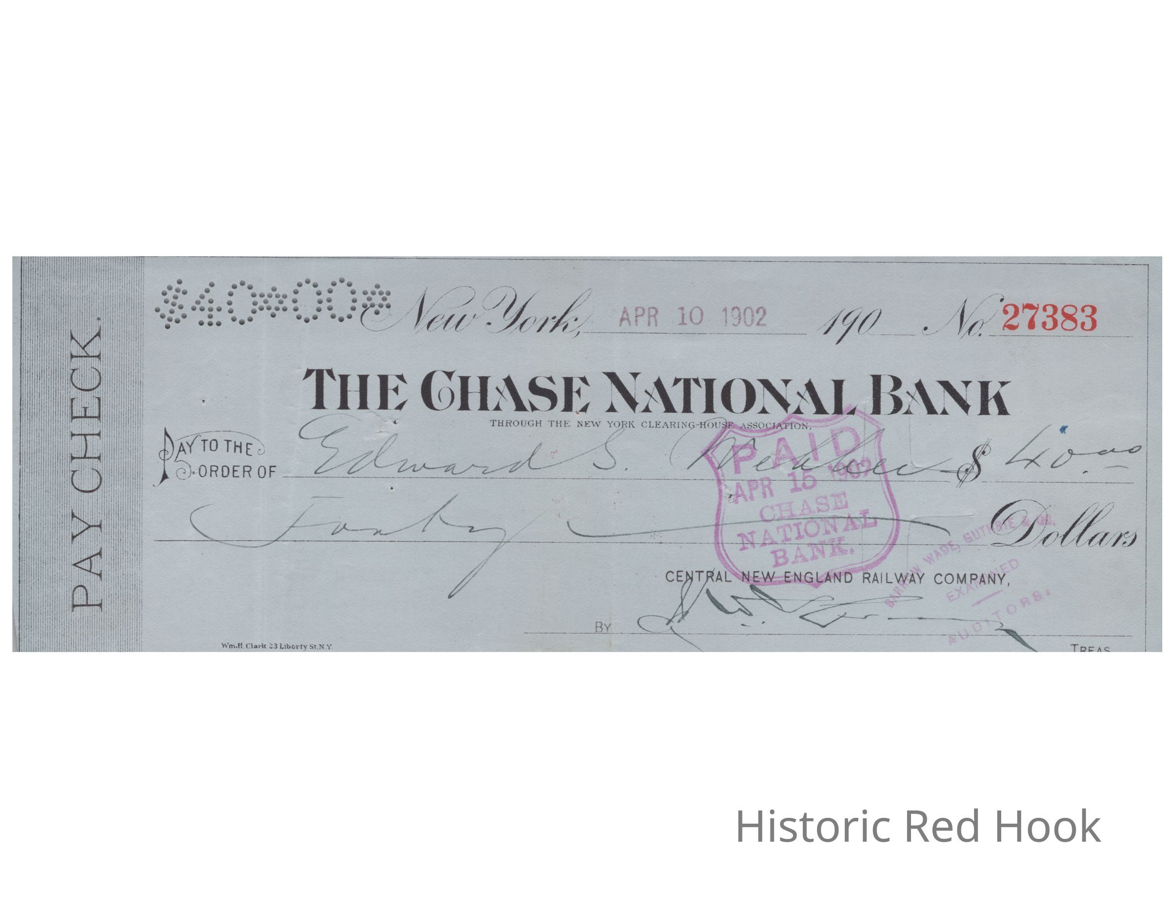 Paychecks (Cancelled) from Central New England Railway - 1902Entry/Object ID
