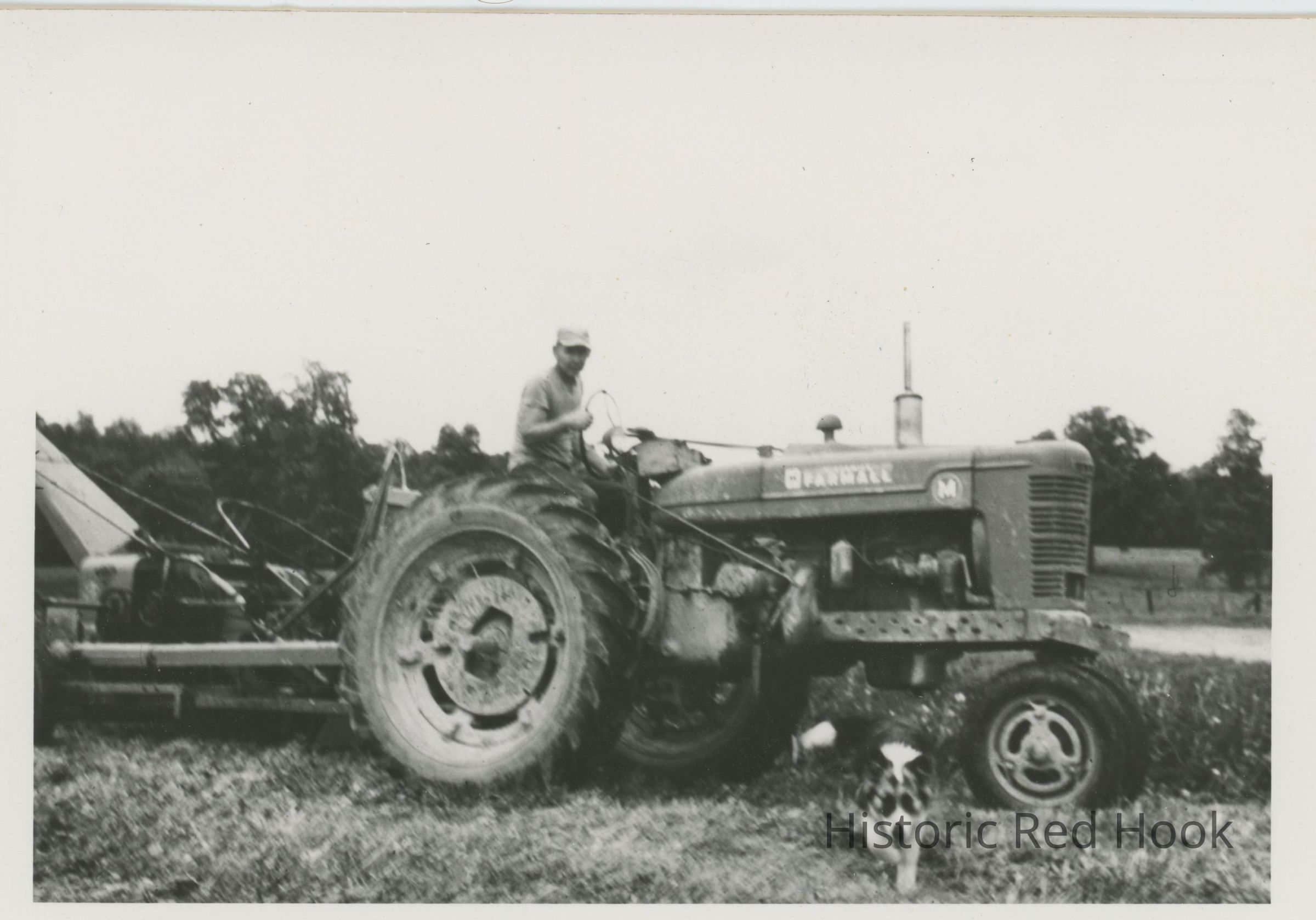 Peter Bulkeley, owner of Heermance Farm, riding a tractor, 1950sPhotograph Details
