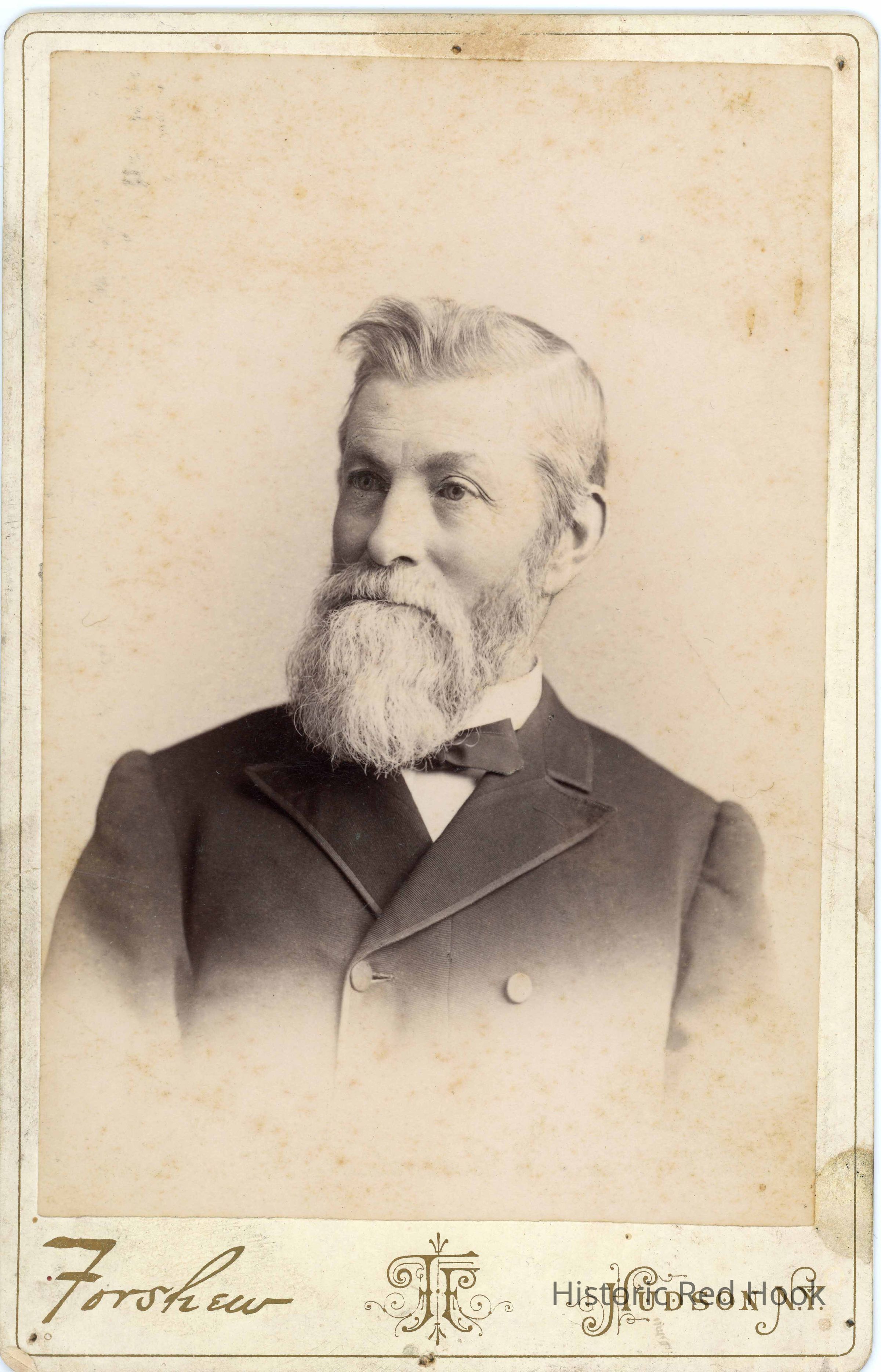 Formal head and shoulder taken at Forshew Photographer in Hudson, New York of a man identified as Phillip Peelor from Rock City who had a slaughterhouse in Rock City (mid 19th century?)Photograph Details