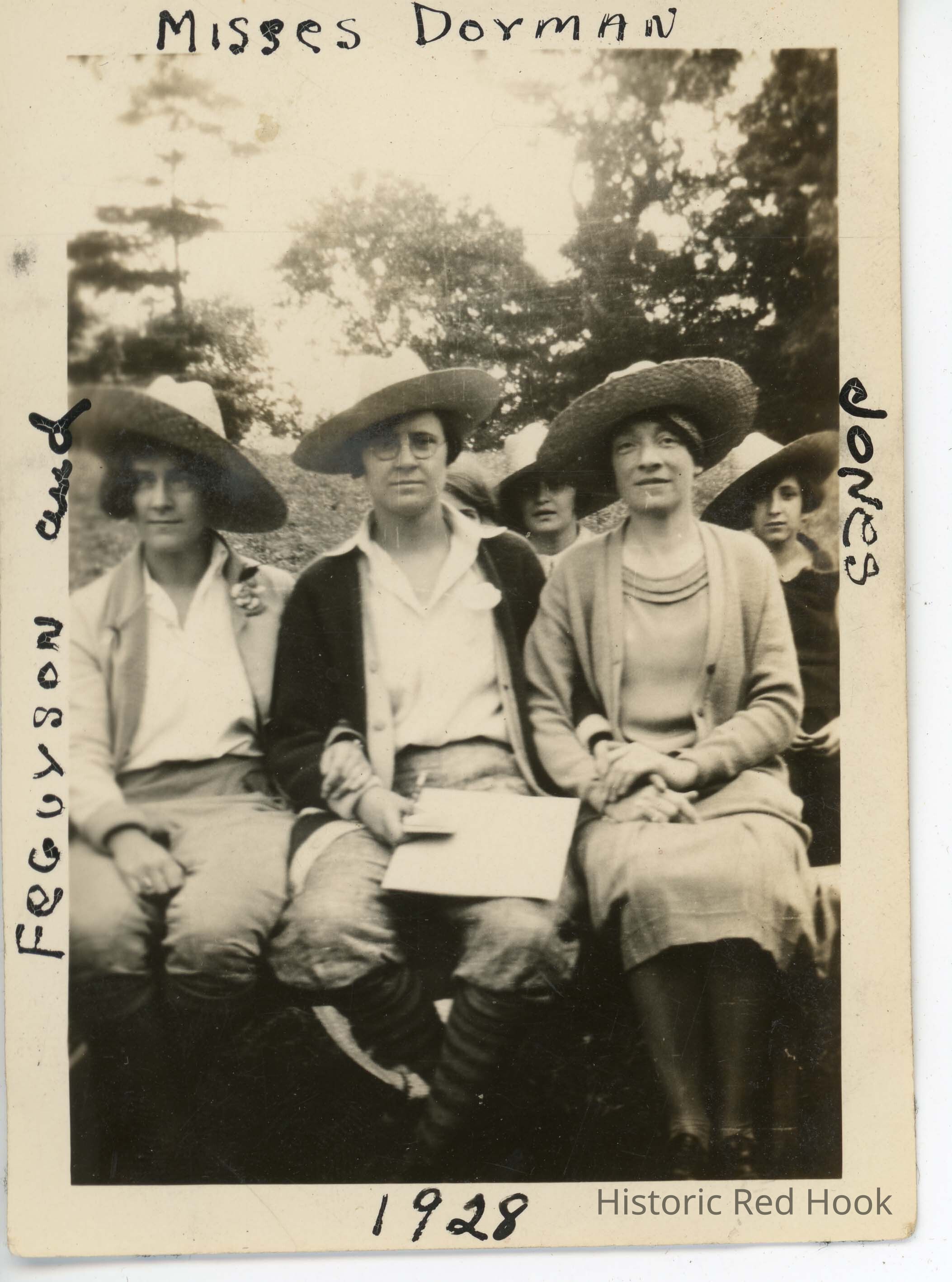 Three women posing. 'Misses Dorman,Feguyson and Jones 1928' written on back.