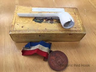 white clay pipe and an award medal dated 1893 1863-1893) " dedication of State's Monuments at Gettysburg" housed in a wood colored paper box