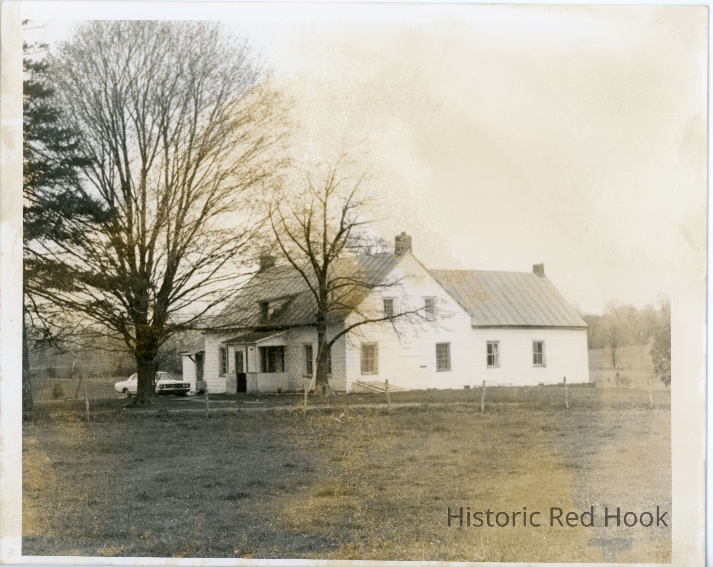Pitcher Lane farmhouse, with car 1960s (?) parked in front.