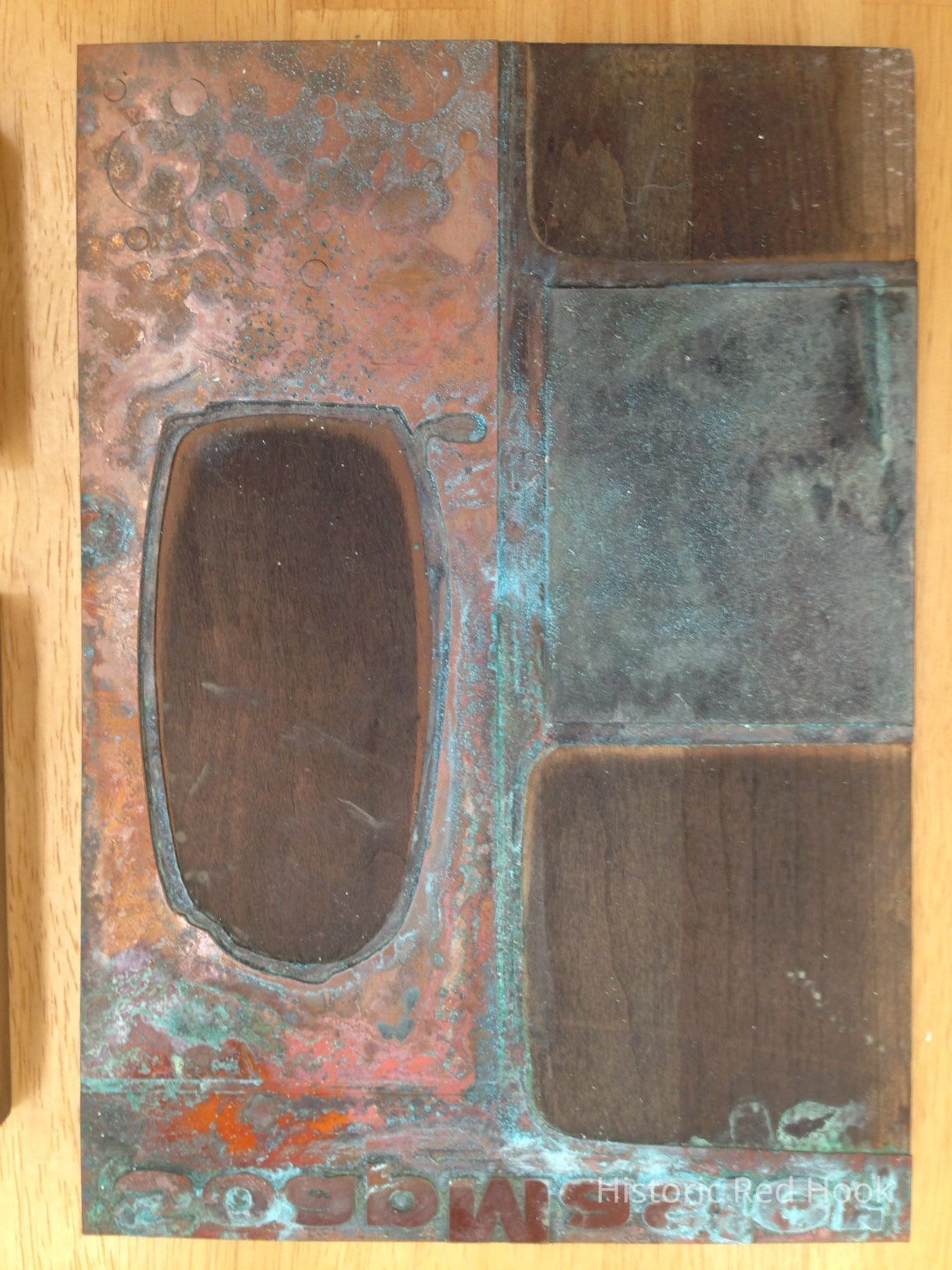 Voorhis-Tiebout Copper Printing Plates copper on wood 10.5x7.25x.75 soapmaster 9.5x8x.75 Voorhis- Tiebout