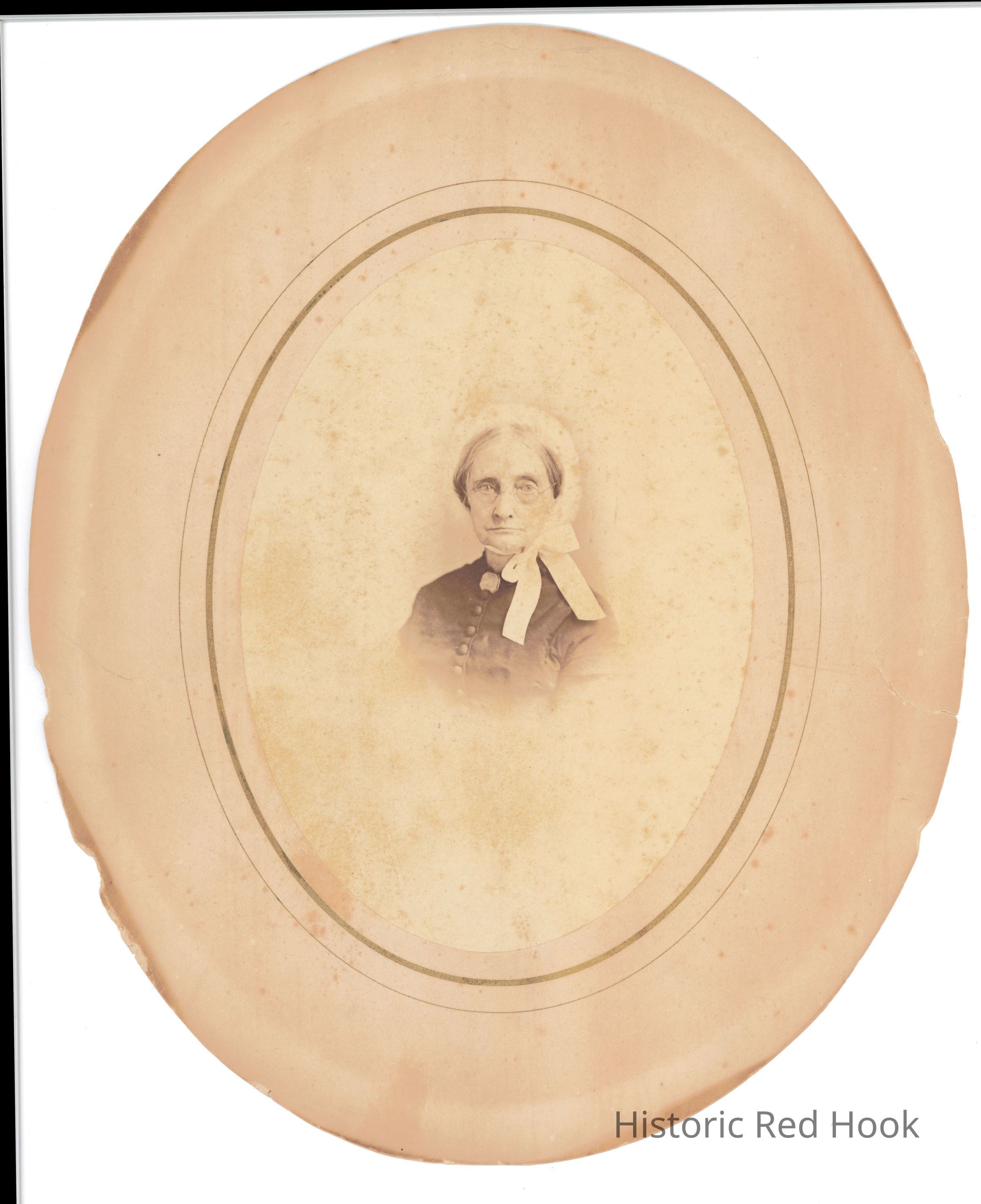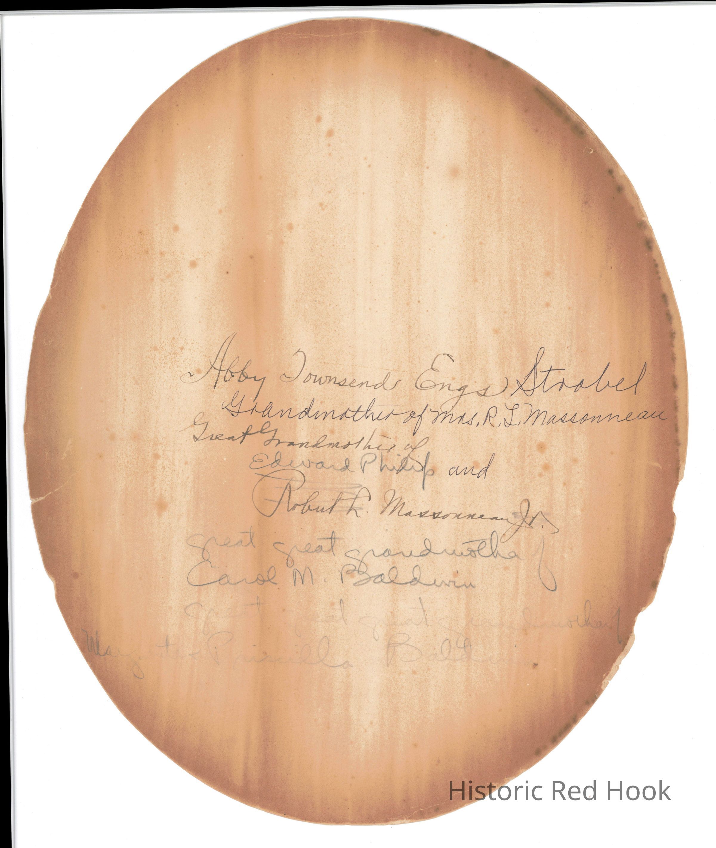 Photographic portrait of Abby Townsend Engs Strobel ( 1813-1890. Daughter of Philip Walton Engs?). Written on back: Grandmother of Mrs. R. L. Massonneau, Great-grandmother of Edward Philip and Robert L. Massonneau, Jr. , great-great grandmother of Carol M. Baldwin.Photograph Details