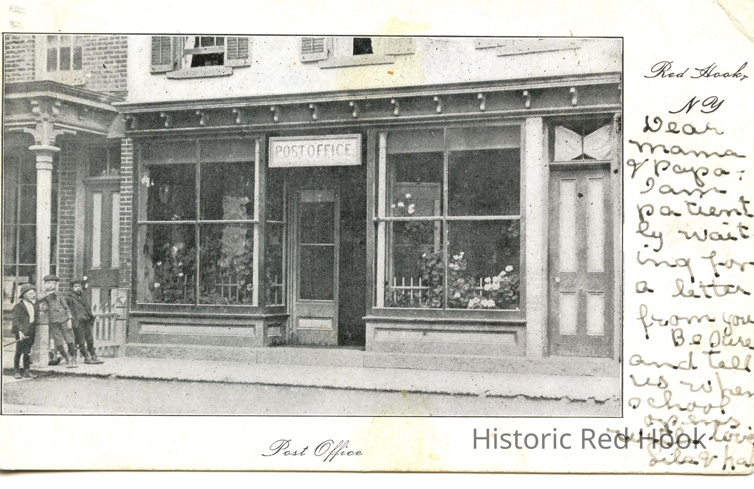 b/w postcard of the Red Hook Post Office on West Market St.Subject Person/Organization