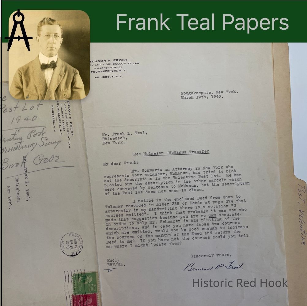 Letter: 19 March 1940 From Benson Frost to Frank Teal,. Re: Helgeson-McManus transfer.Collection