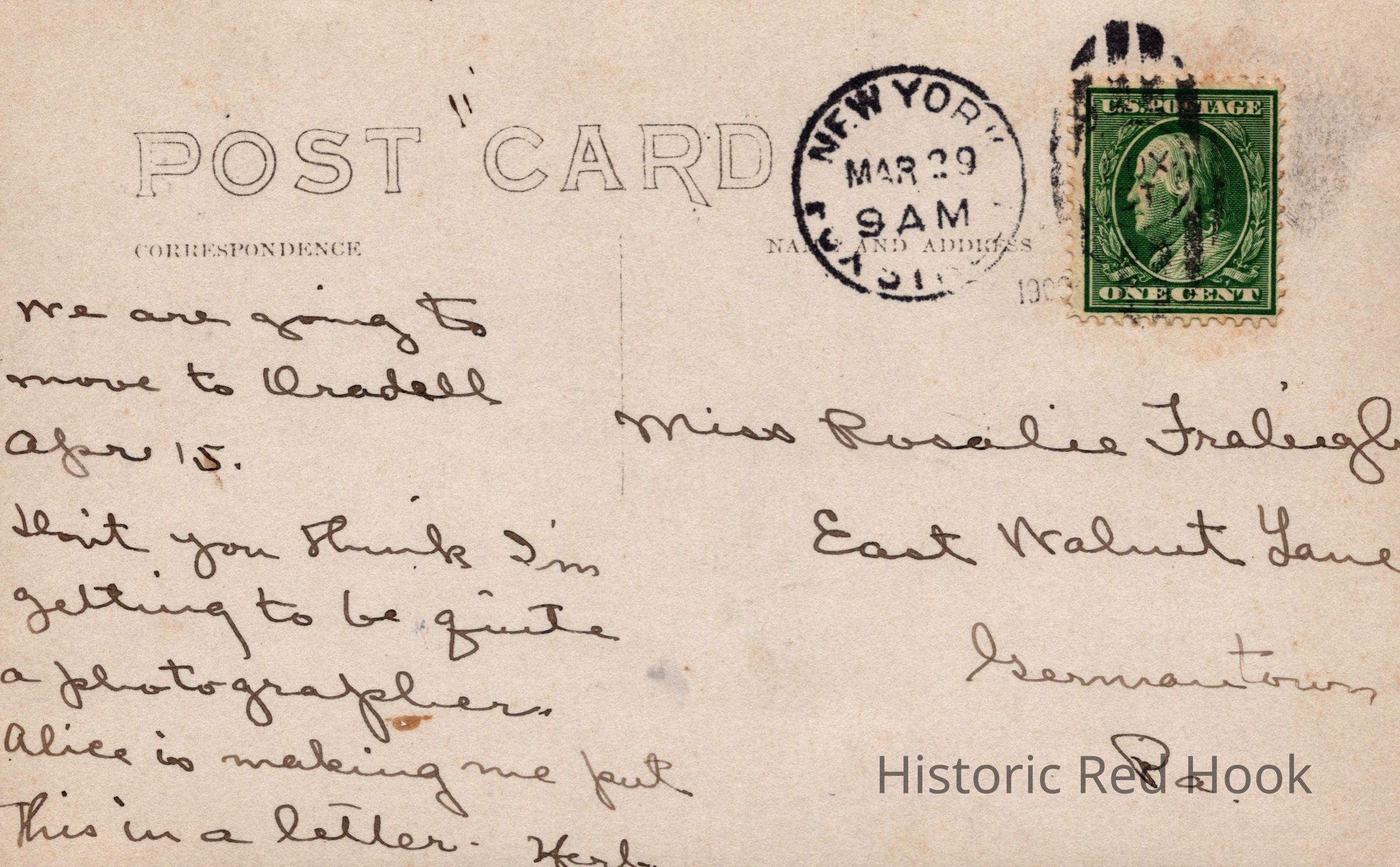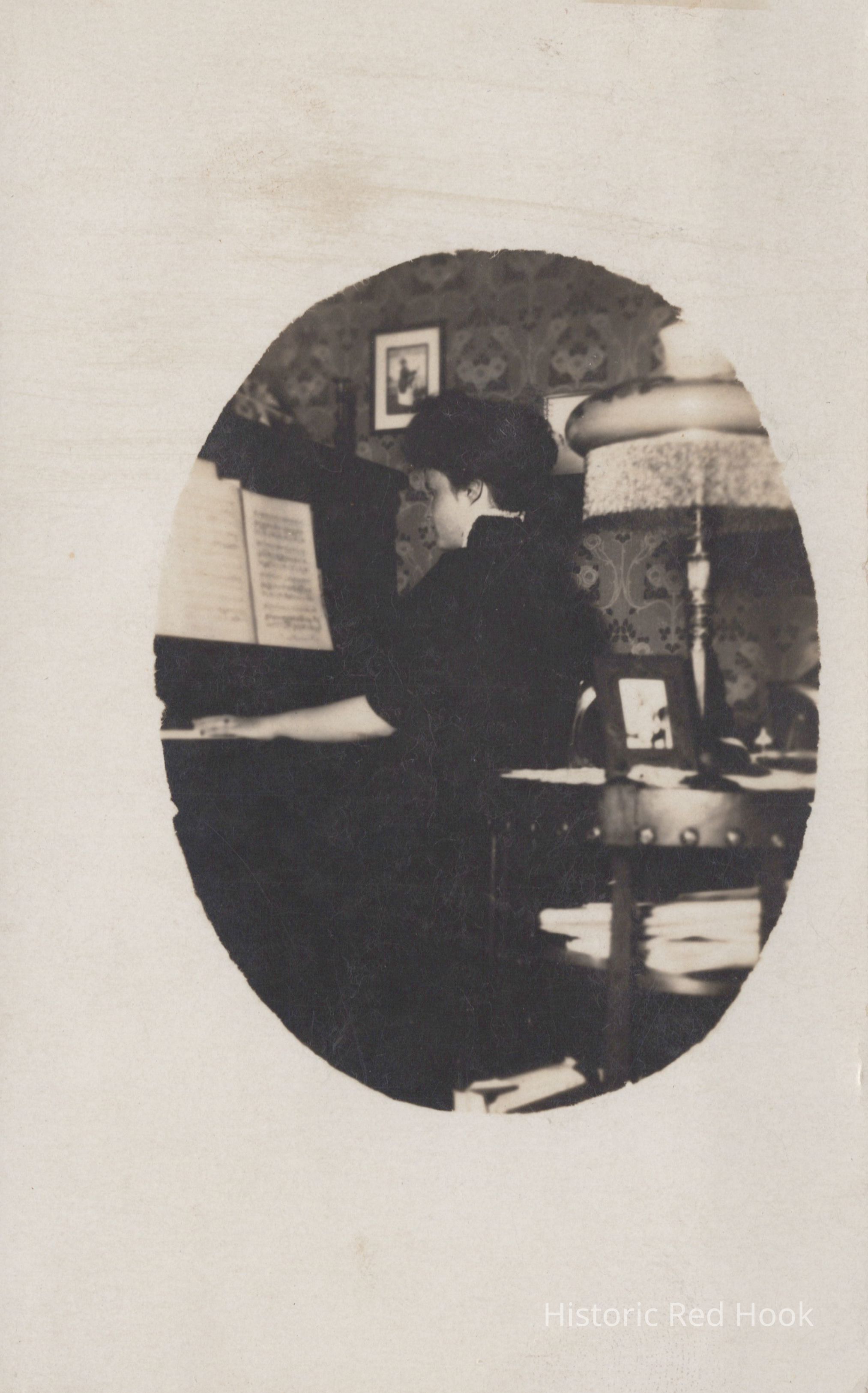 Postcard with photo of Alice at the Piano, addressed to Miss Rosalie Fraleigh from Alice Irene's son Herbert Fraleigh.Subject Person/Organization