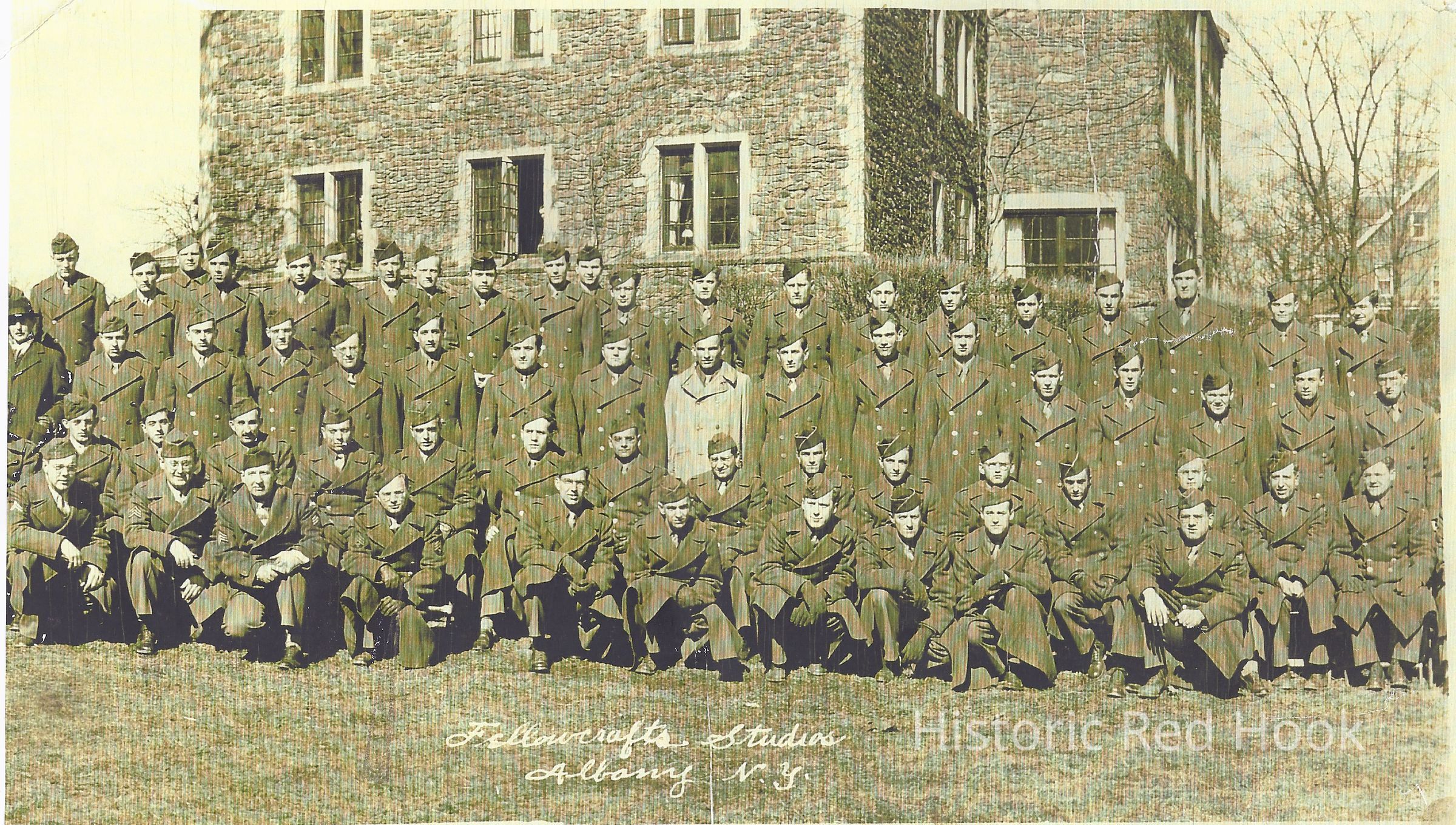 Soldiers stationed at Bard College, '43-'44 - ASTP Program (Army Specialized Training Program). Walter Bayer who later married Charlotte Becker of Red Hook was stationed there - after WW II he returned to Red Hook and worked at IBM.Collection