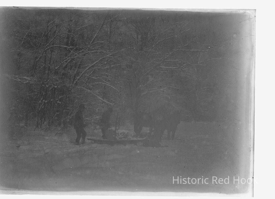 Pulling logs on horse-drawn sled