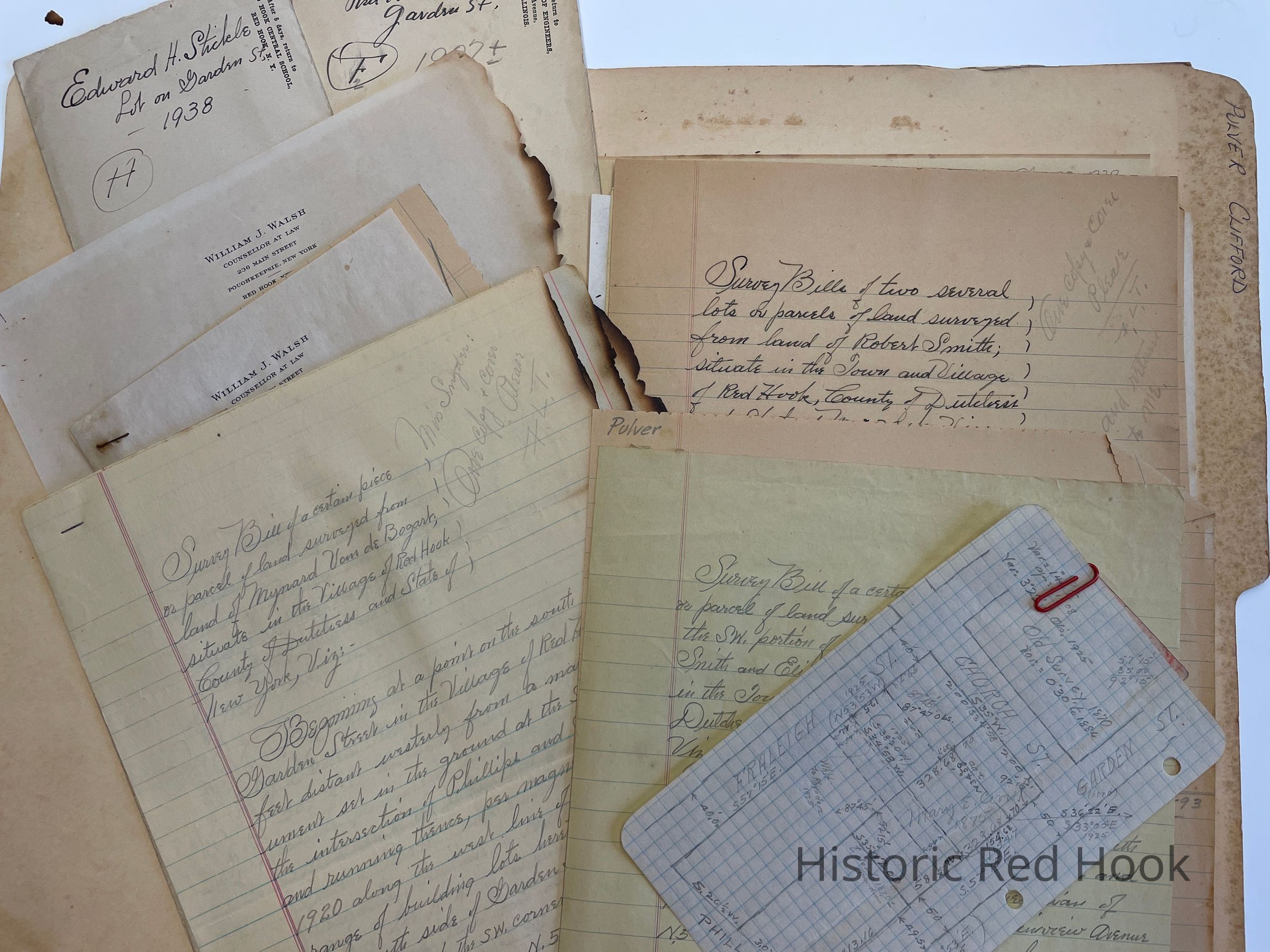 Survey: Includes pencilled map. For Otis Rhynders (present Owner)Chas. Proper Lot . Shows lots on Garden Street of P.G. Fraleigh to James Corrigan in 1872; Chas. B. Herrick to Mary E. Proper in 1894, George Van Steenburgh; P.G. Fraliegh to Mary E. Coon in 1875Collection