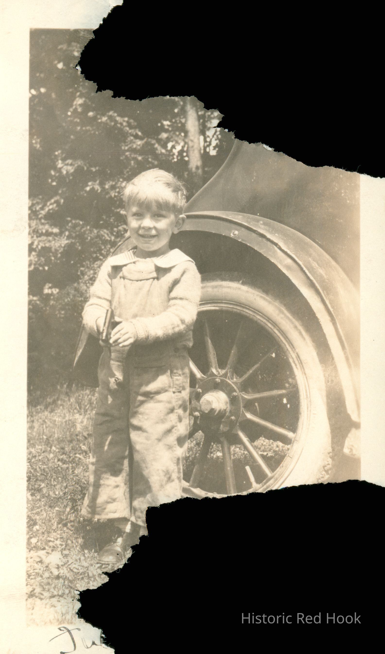 R E Losee pictured next to an early automobile Upper Red Hook New York ca 1924