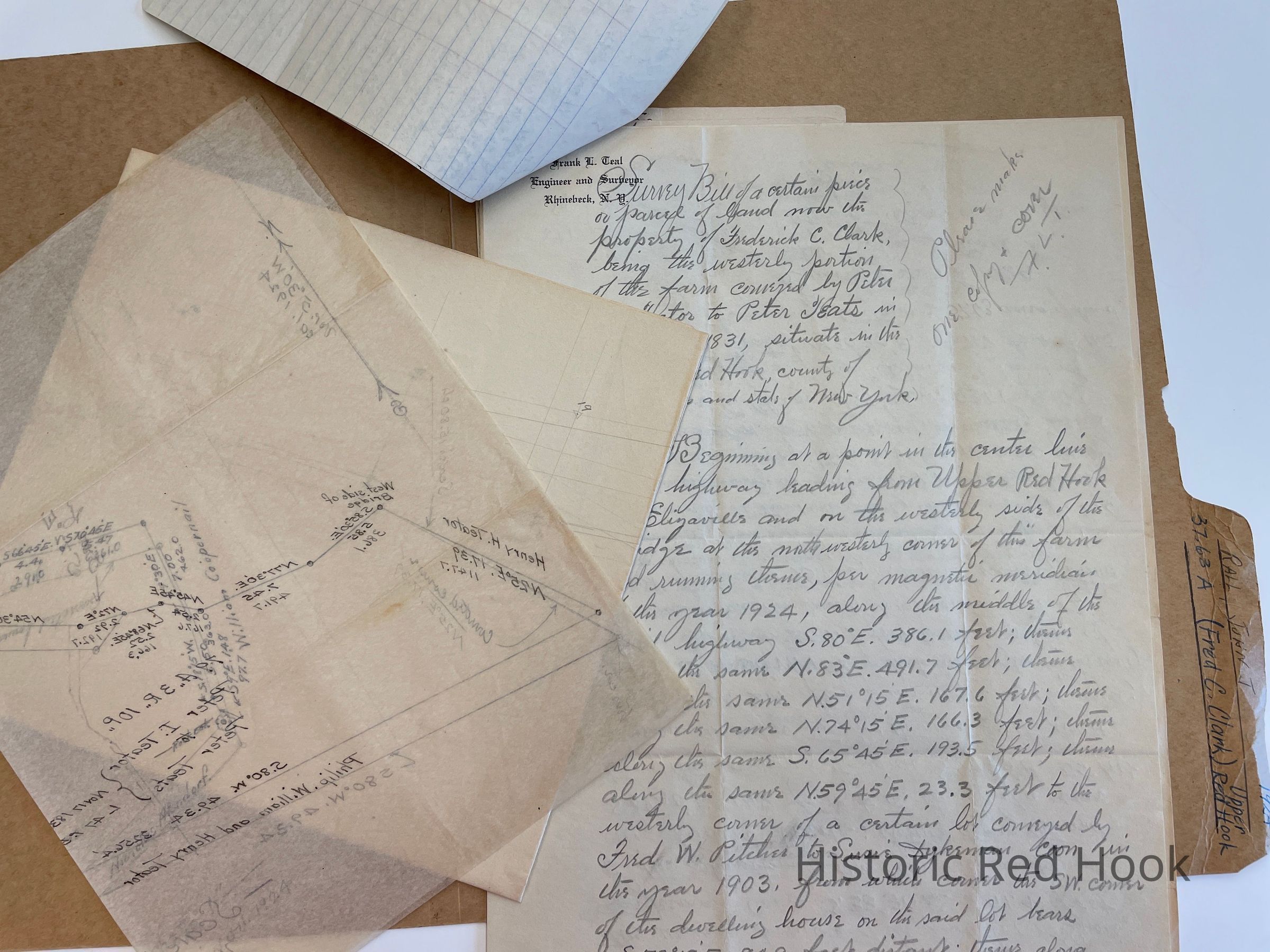 Survey: For John J. Rall 5 Feb 1924 . Parcel of land now preoperty of Frederick C. Clark being westerly portion of farm from Peter I. Teator to Peter Teats in 1831 37.63 acres
