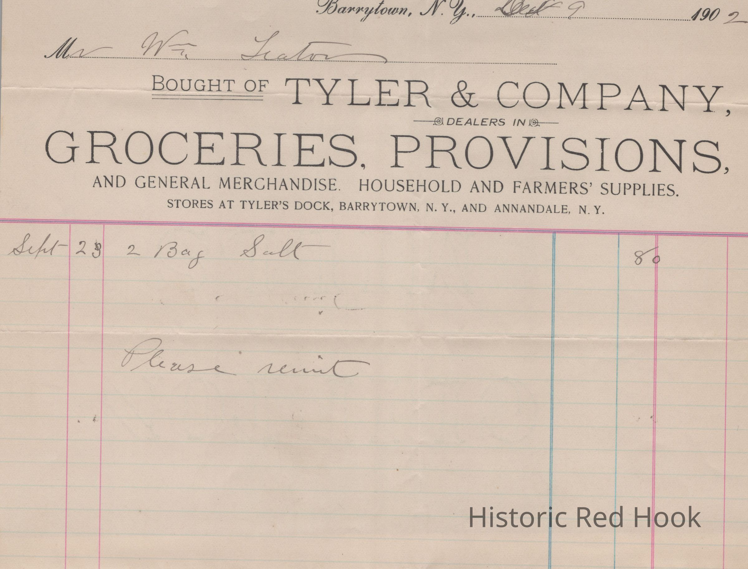 Receipt from Tyler & Company, 1902Entry/Object ID