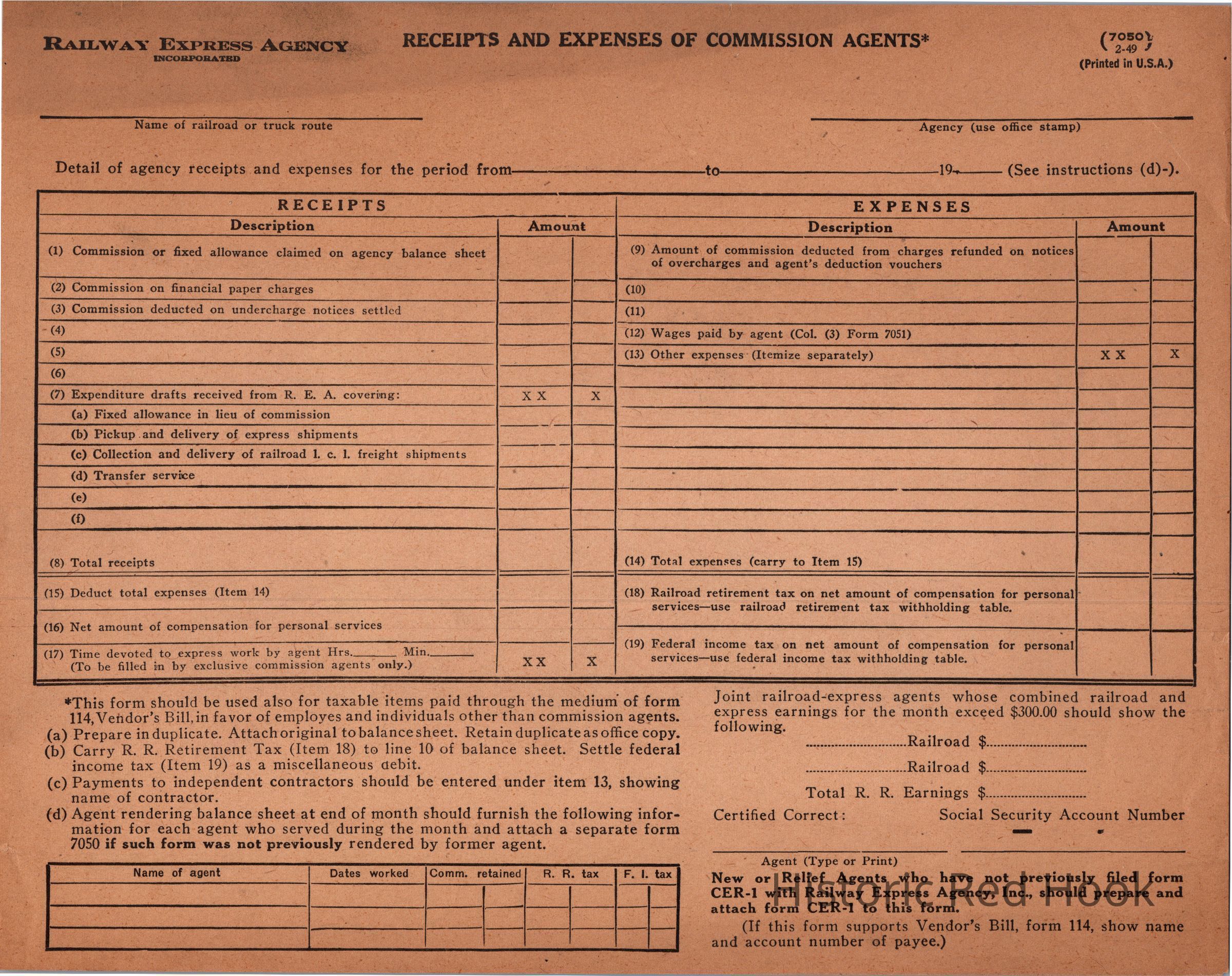 Receipts and Expenses of Commission Agents Form