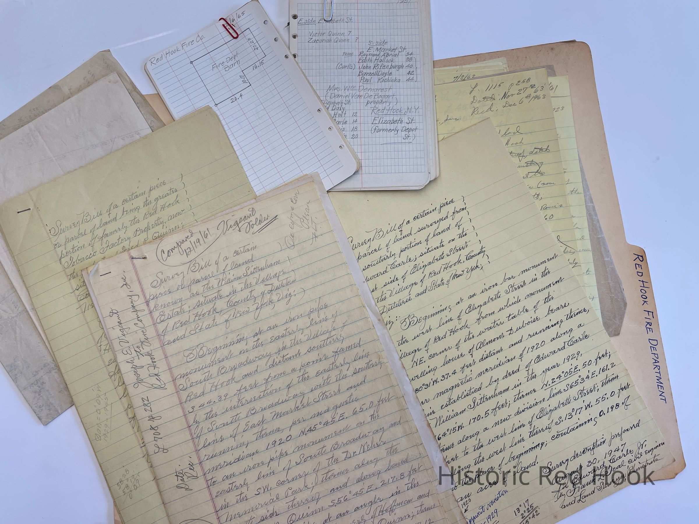 Survey: For Village of Red Hook Nov 1945 Lot formerly of Dr. Herbert Neher and conveyed to Village of Red Hook as a Memorial Park, now occupied by Red Hook Fire Dept.