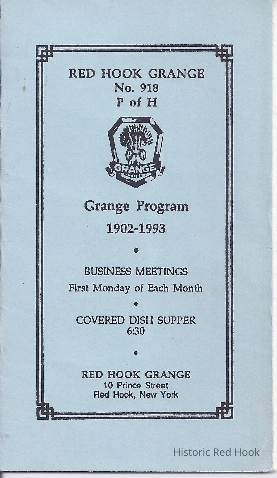A booklet for the Red Hook Grange Program for 1992 - 1993.