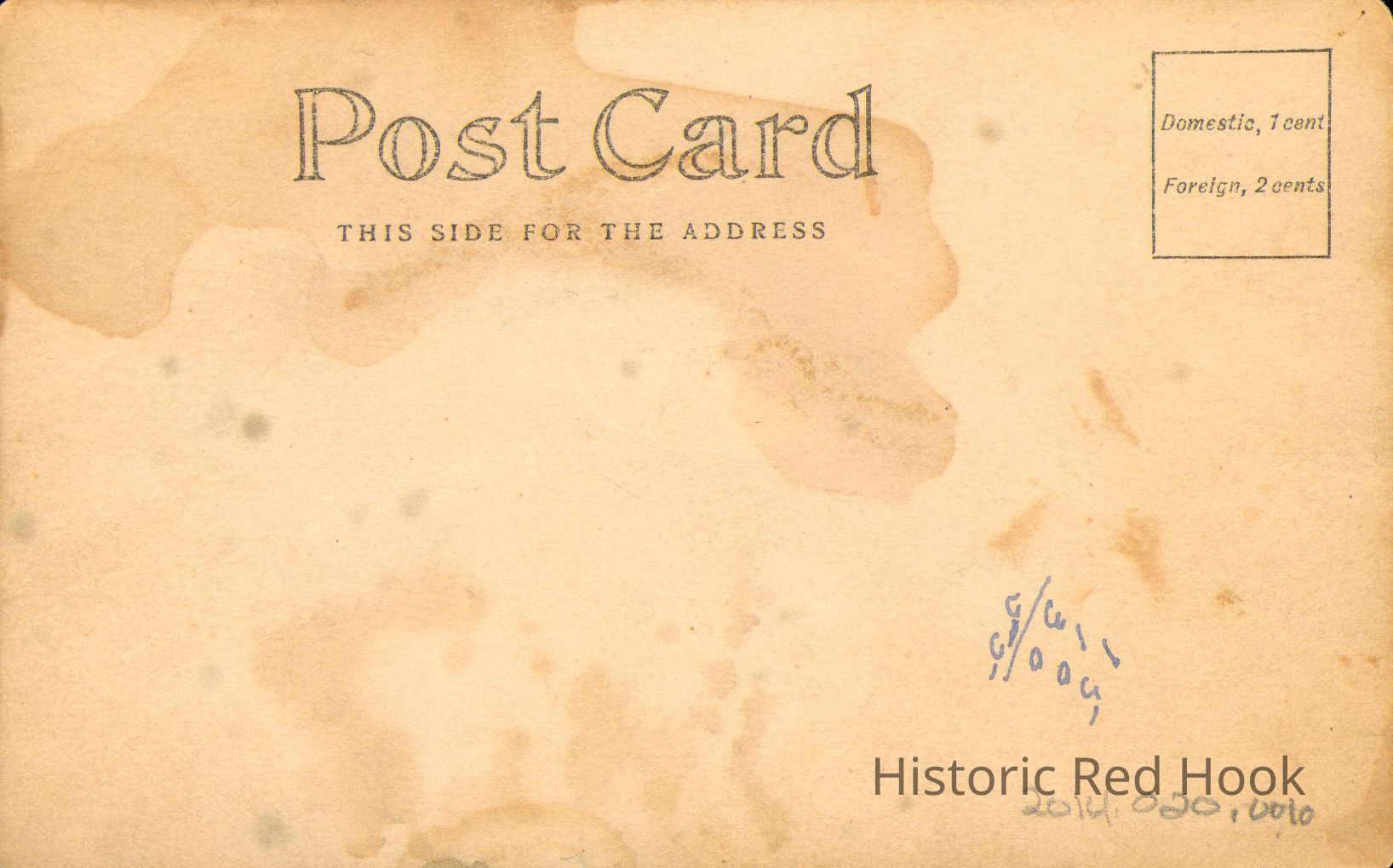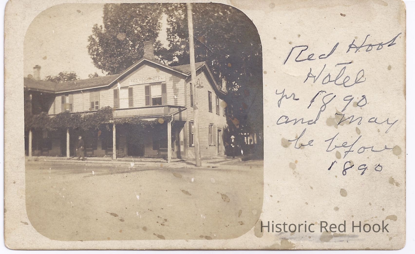 Written in pencil is notation of "Red Hook Hotel yr 1890 and may be before 1890" on the other half of card
