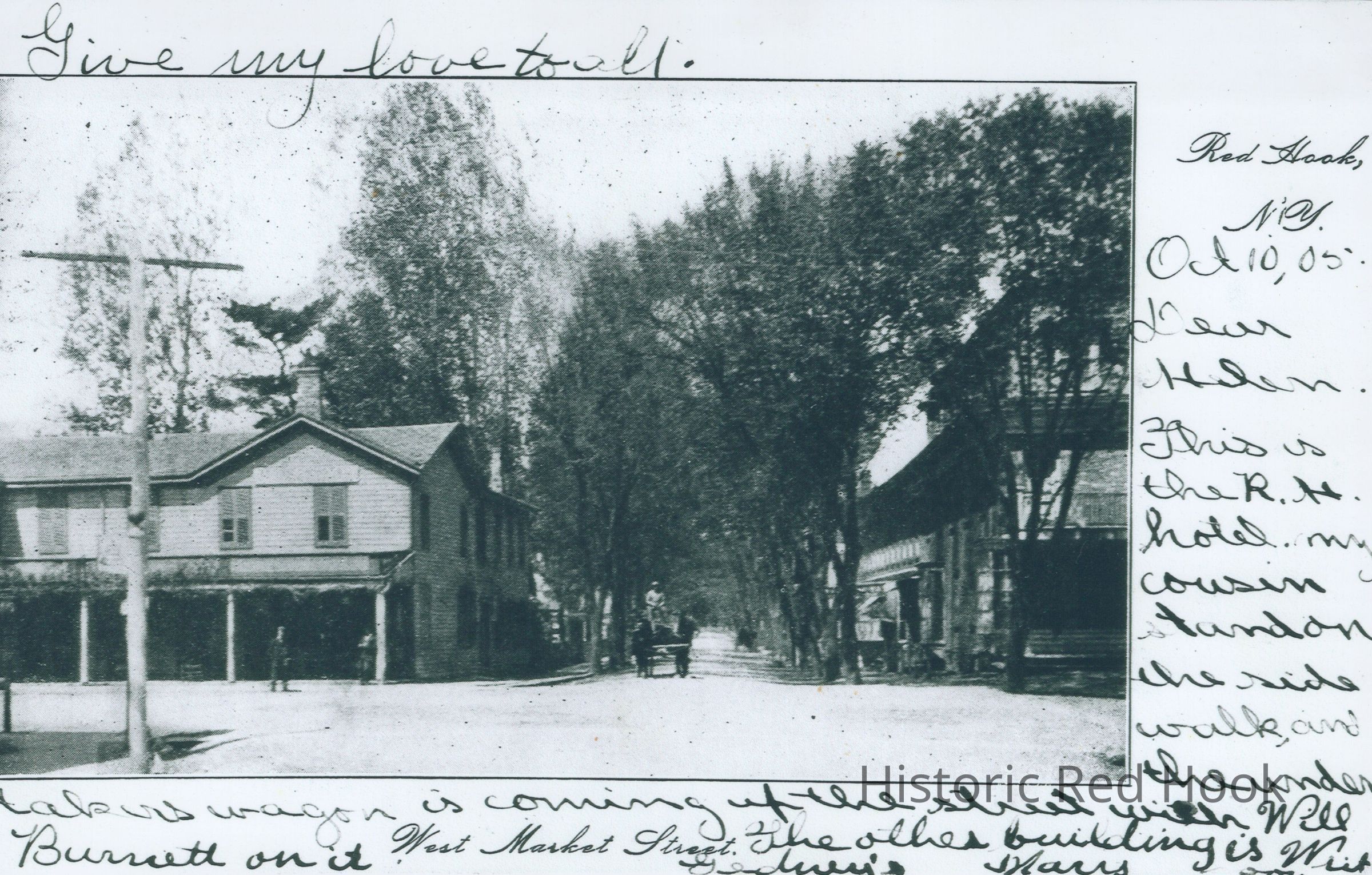 View looking west on West Market Street, Red Hook Hotel. Copy of postcard dated Oct 10, 1905. same as 2016.002.065Photograph Details