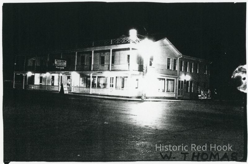 Photocopy of Red Hook Hotel exterior at night. W. Thomas written on print.Photograph Details