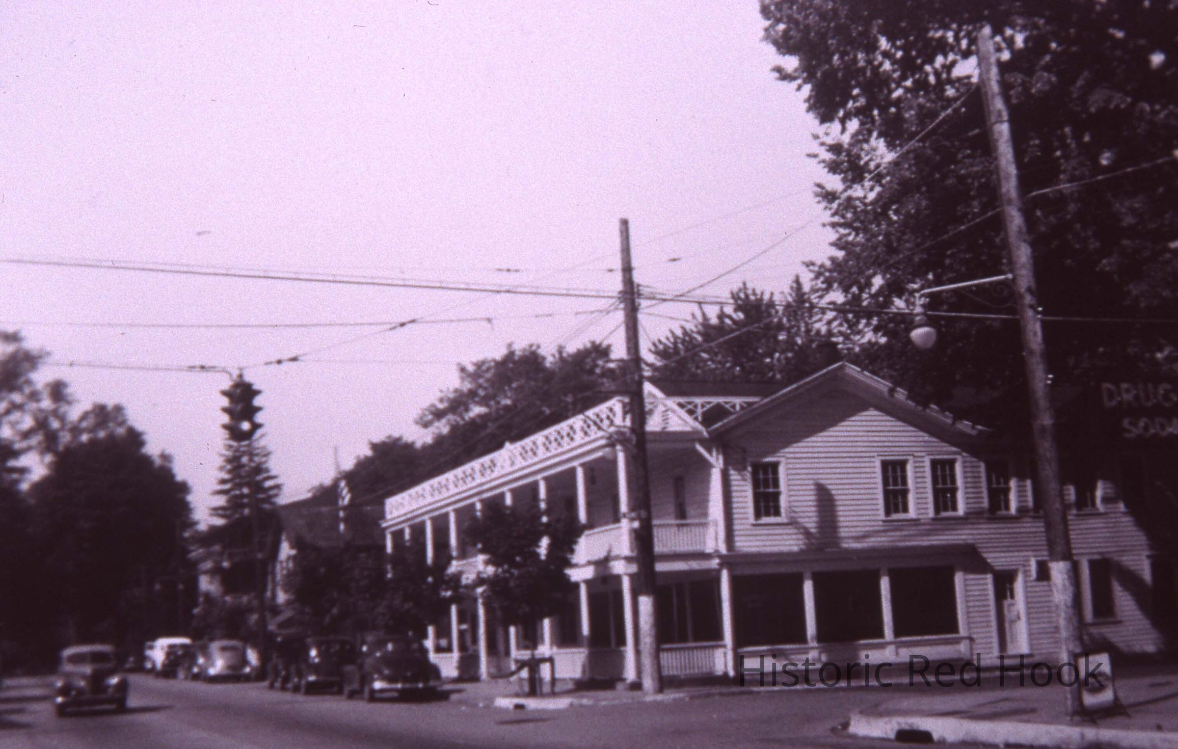 Red Hook Hotel with cars parked along South Broadway.Photograph Details