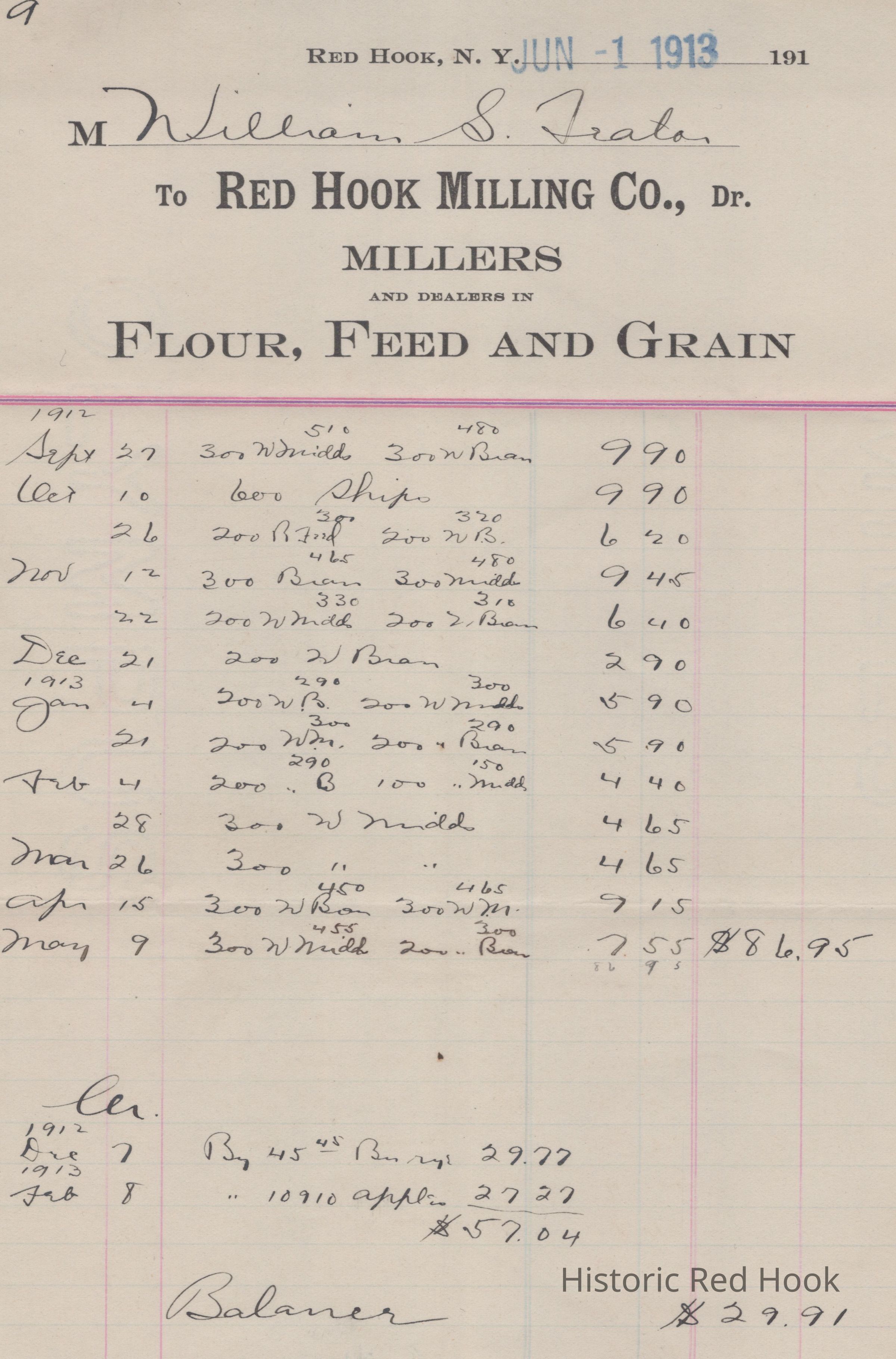 Receipt from Red Hook Milling Company dated June 1, 1913 for William S. Teator. Envelope addressed to Wm. S. Teator from Red Hook Milling Company is postmarked 1926.Relationships