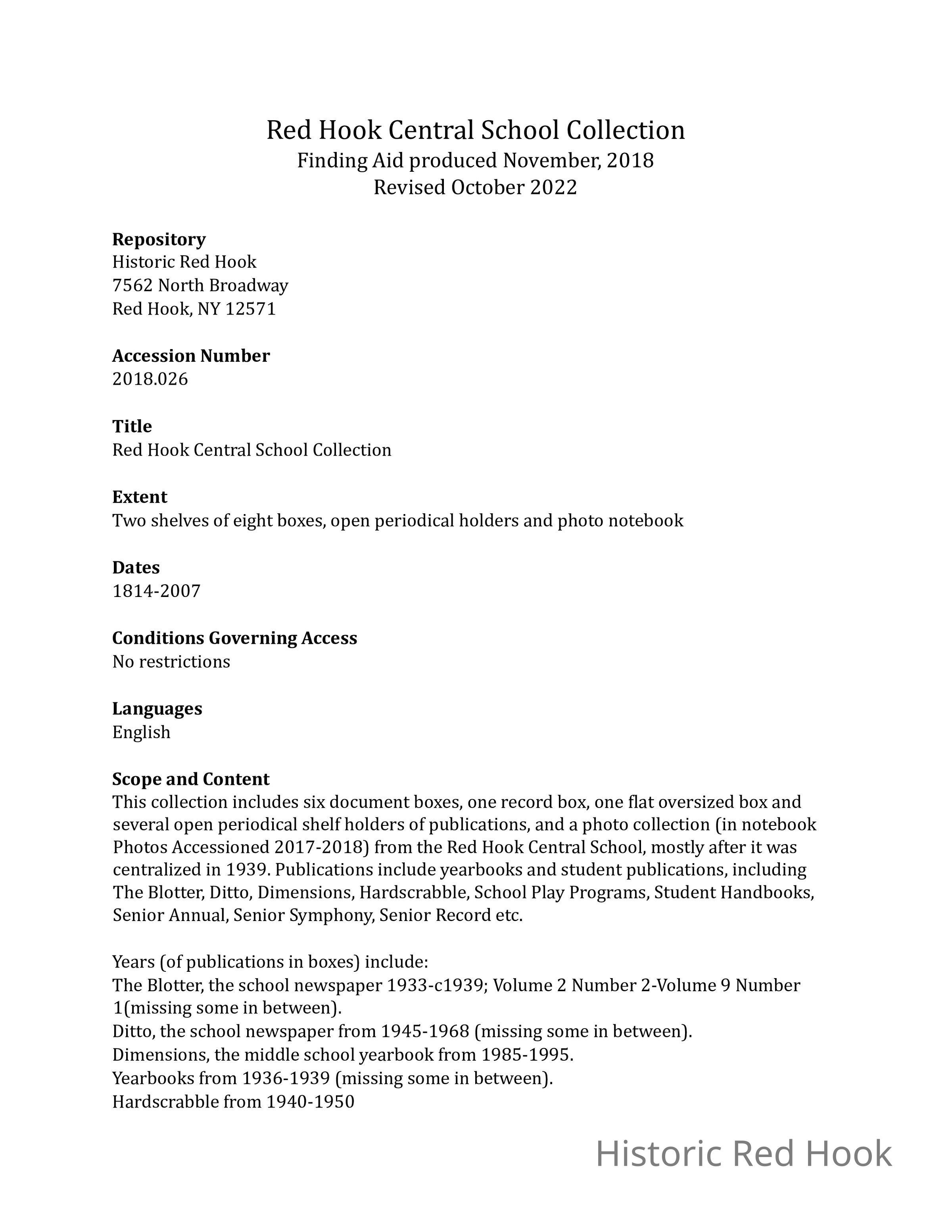 Red Hook Schools Collection - Finding Aid