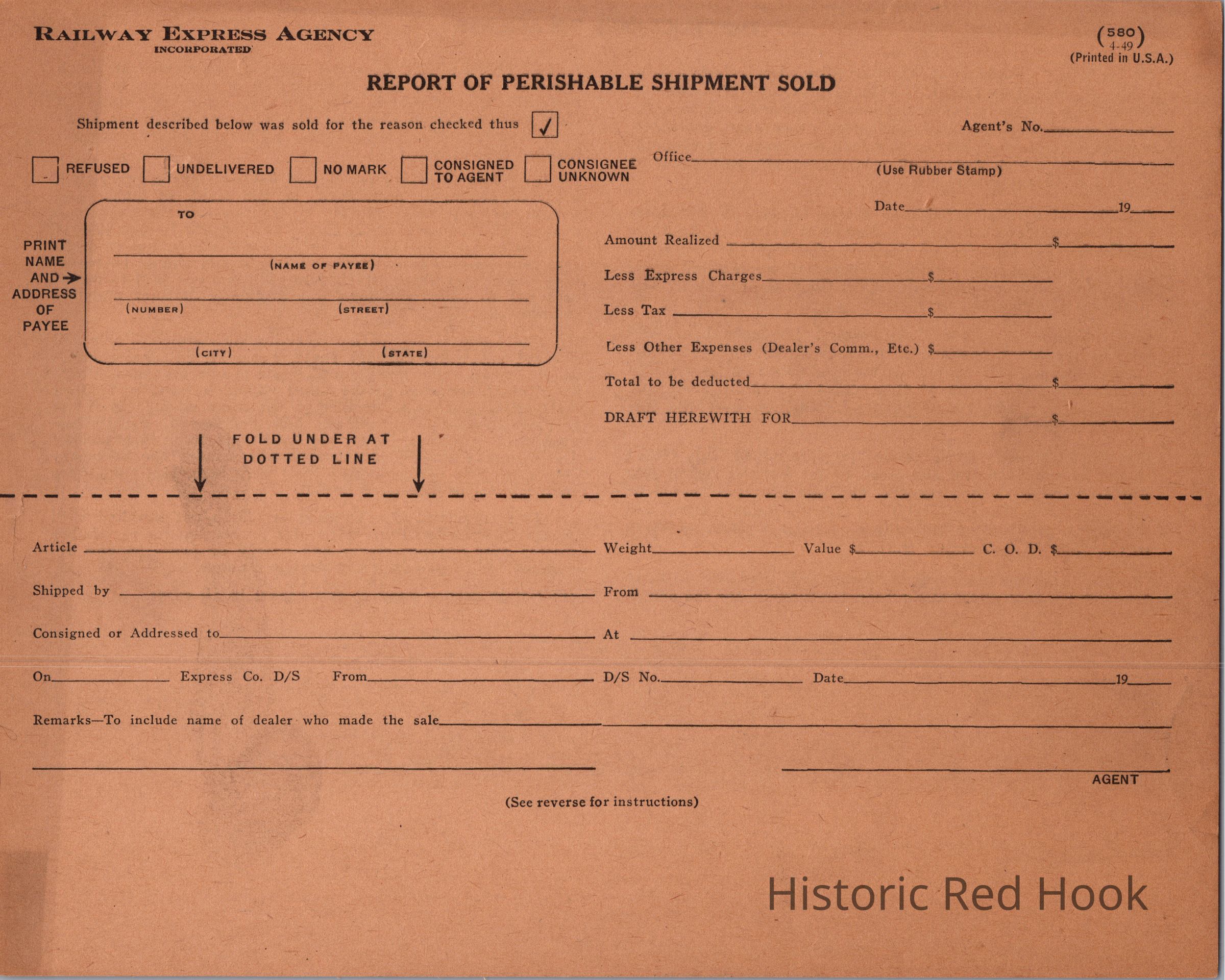 Report of Perishable Shipment Sold