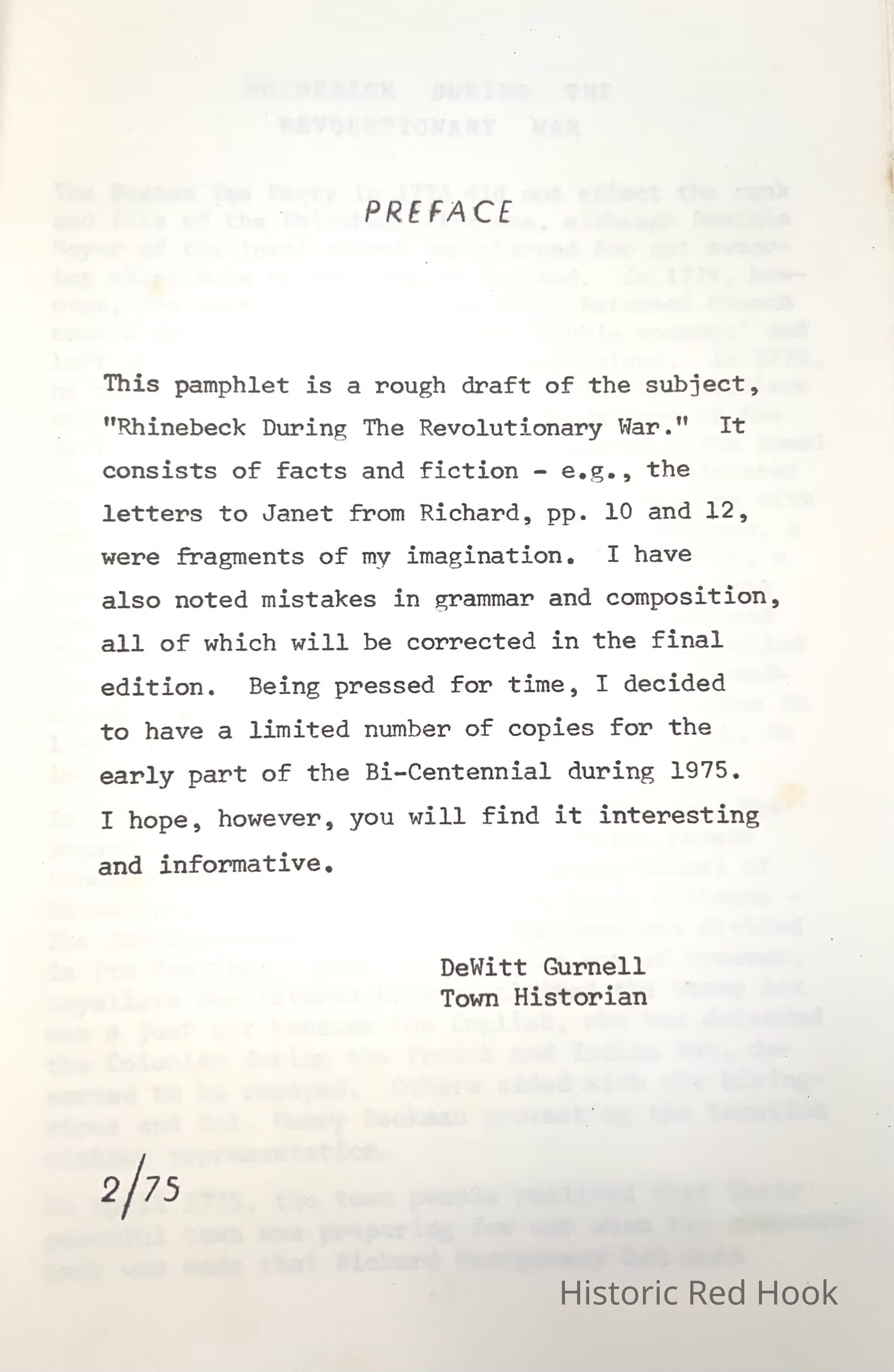 Rhinebeck During the Revolutionary WarDraft by DeWitt Gurnell, Town Historian