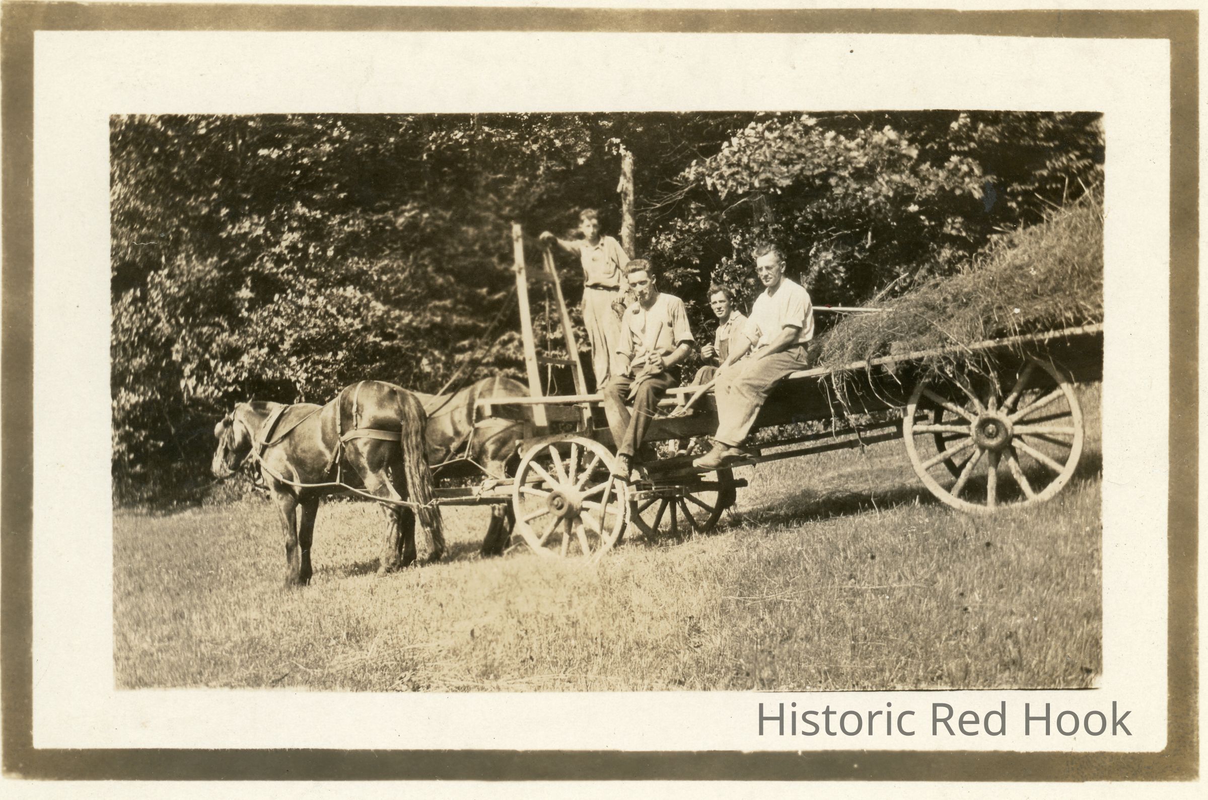 The Rifenberghs of Clermont. Four family members sitting on a hay wagon.