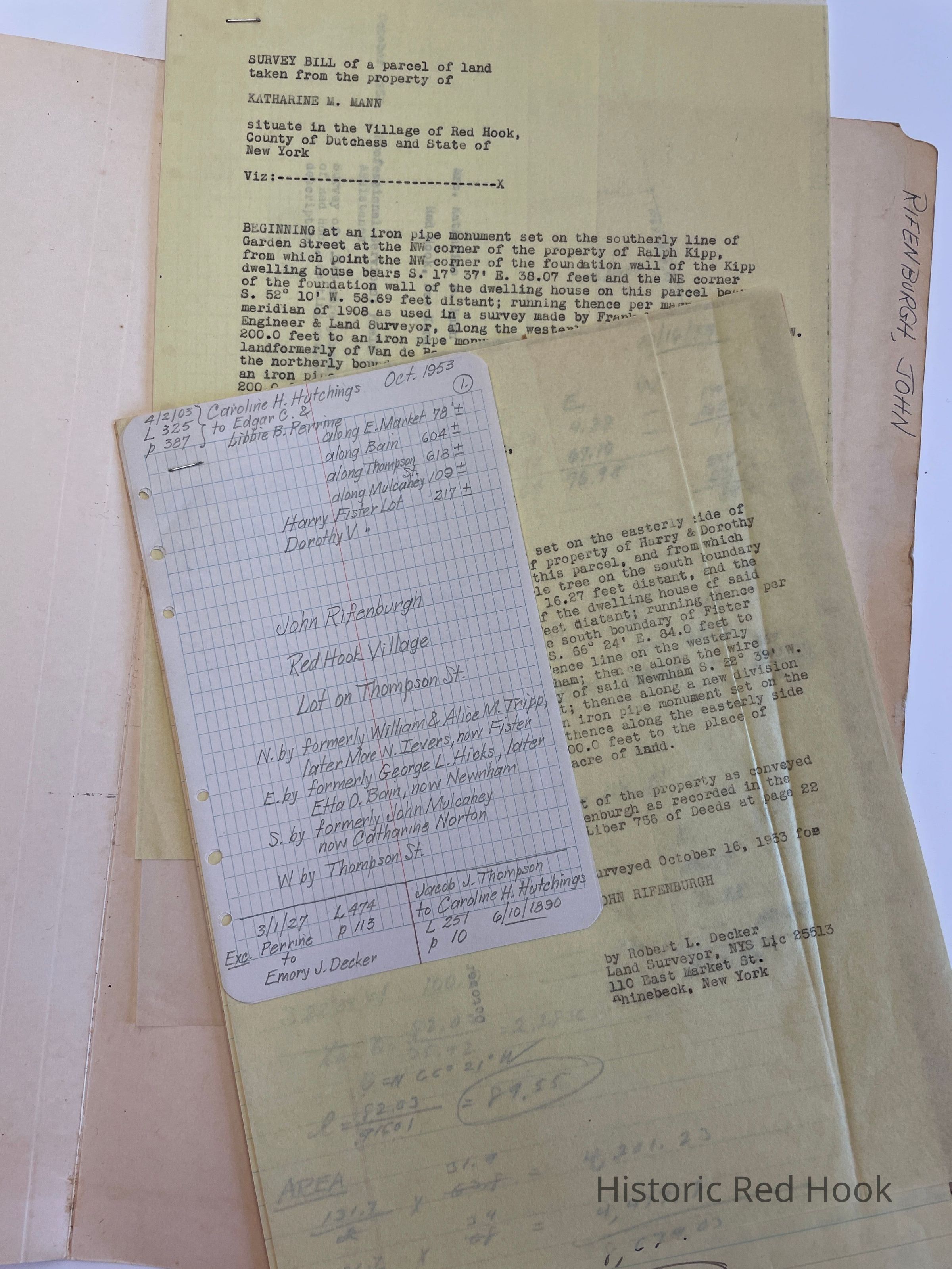 Field Notes: Oct 1953 Caroline H. Hutchings to Edgar C. & Libbie B. Perrine Lot on Thompson St.