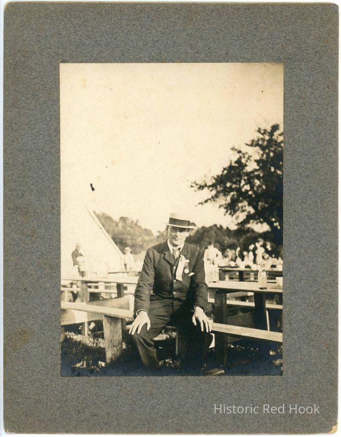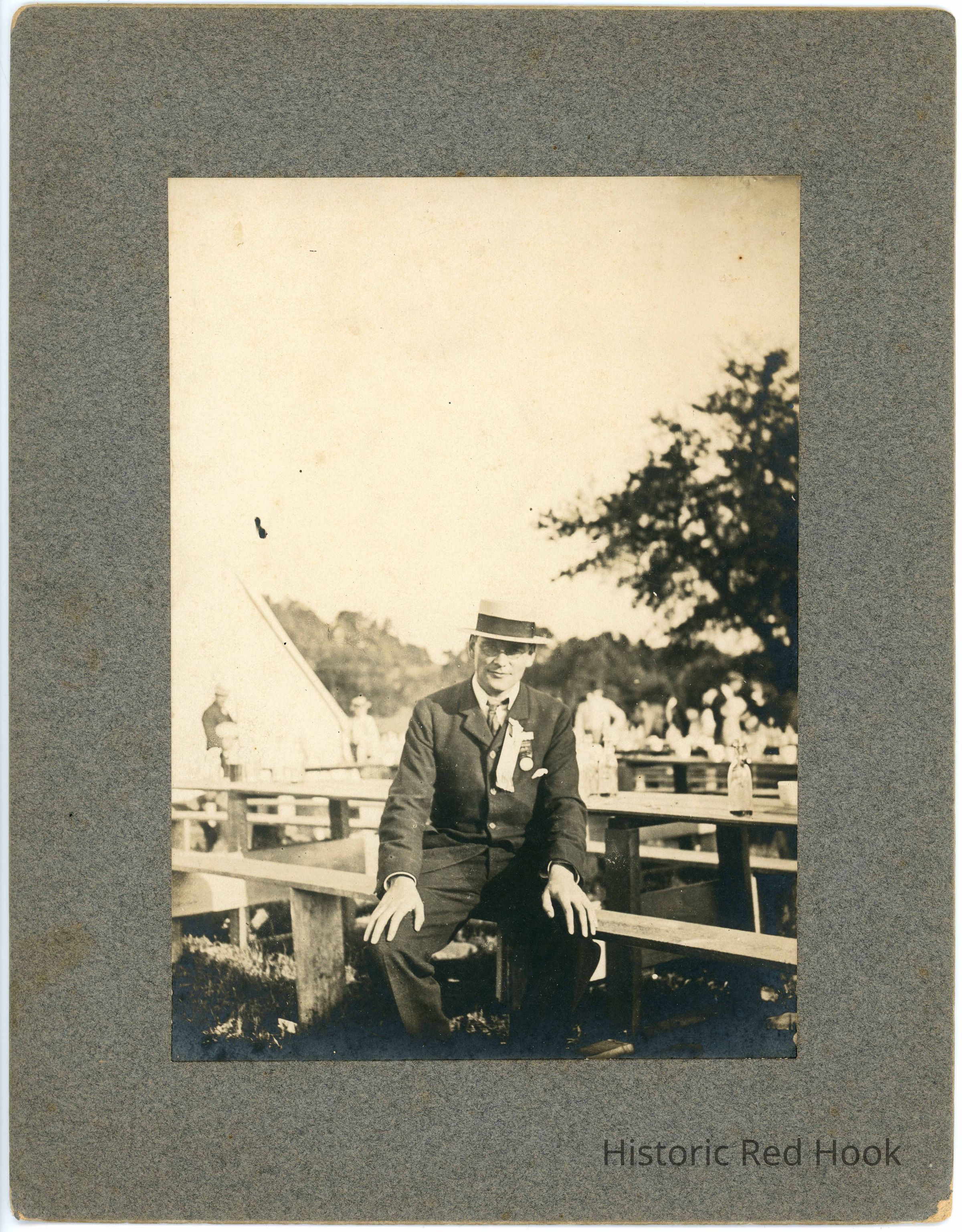 Black & white photograph mounted on cardboard of Robert W. Chanler ("Sheriff Bob") sitting at picnic table.Photograph Details