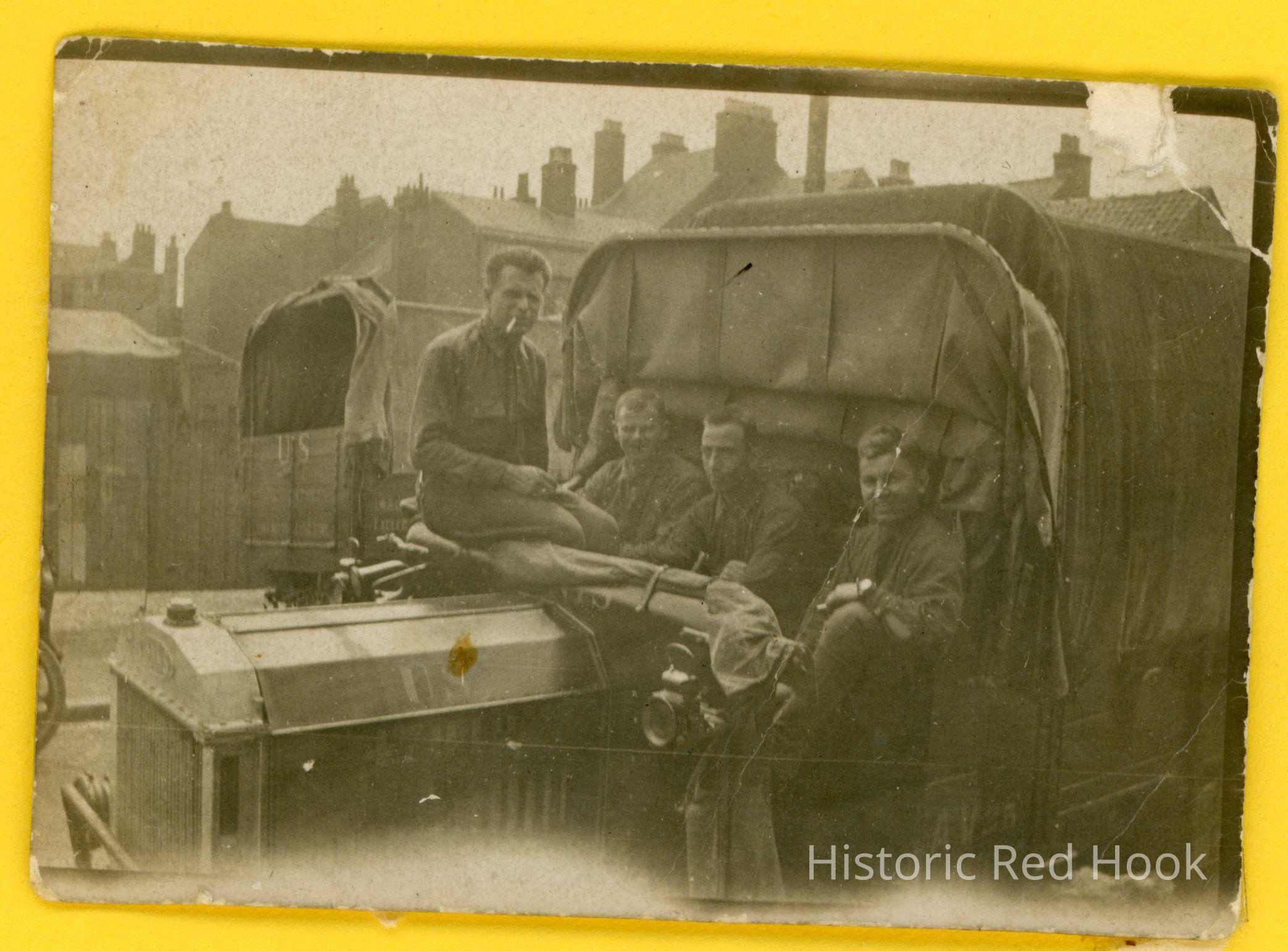 Roland A'Brial and fellow soldiers in truck, World War I
