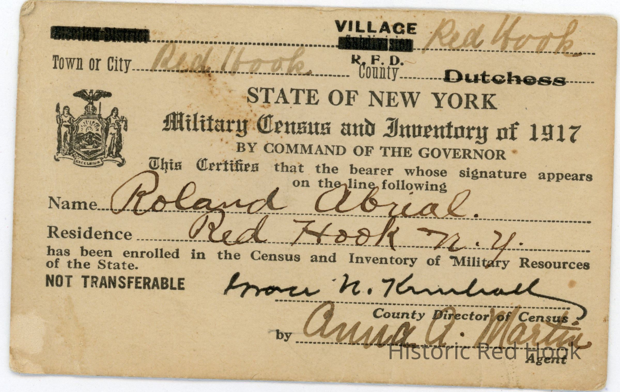 Roland A'Brial's military ID, 1917
