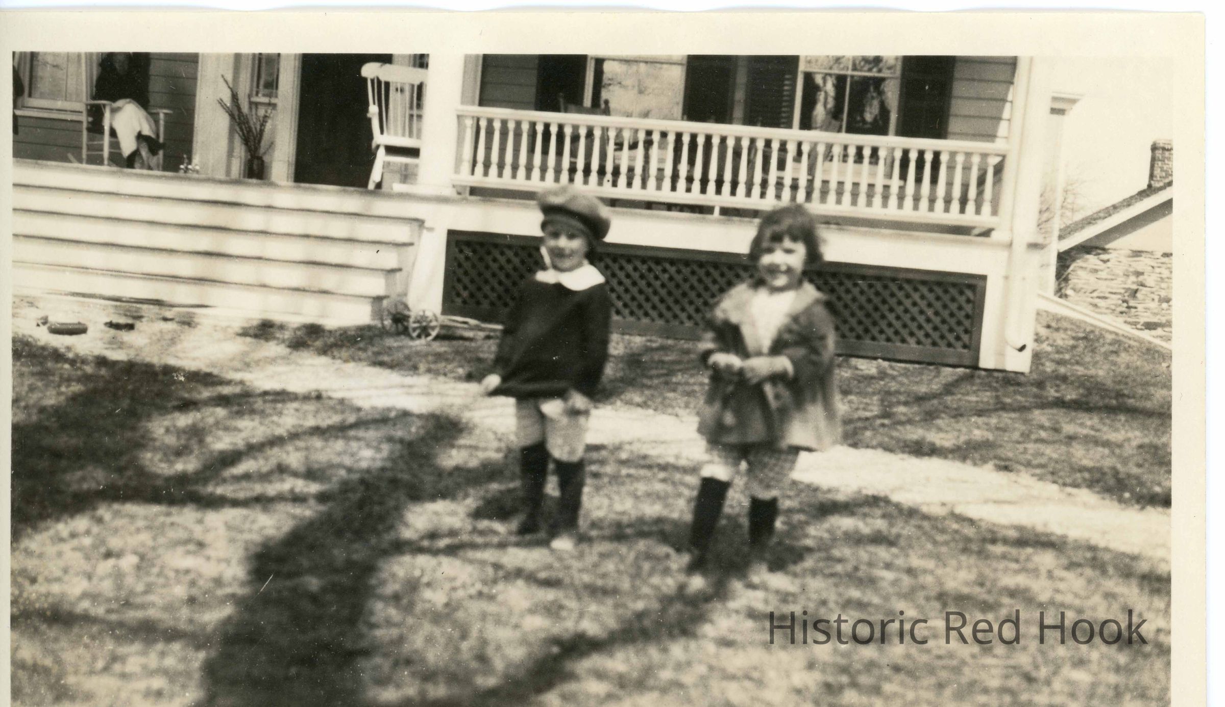 Photograph of two children outdoors in front of a home identified as Ron Losee and Jeanette TeatorPhotograph Details