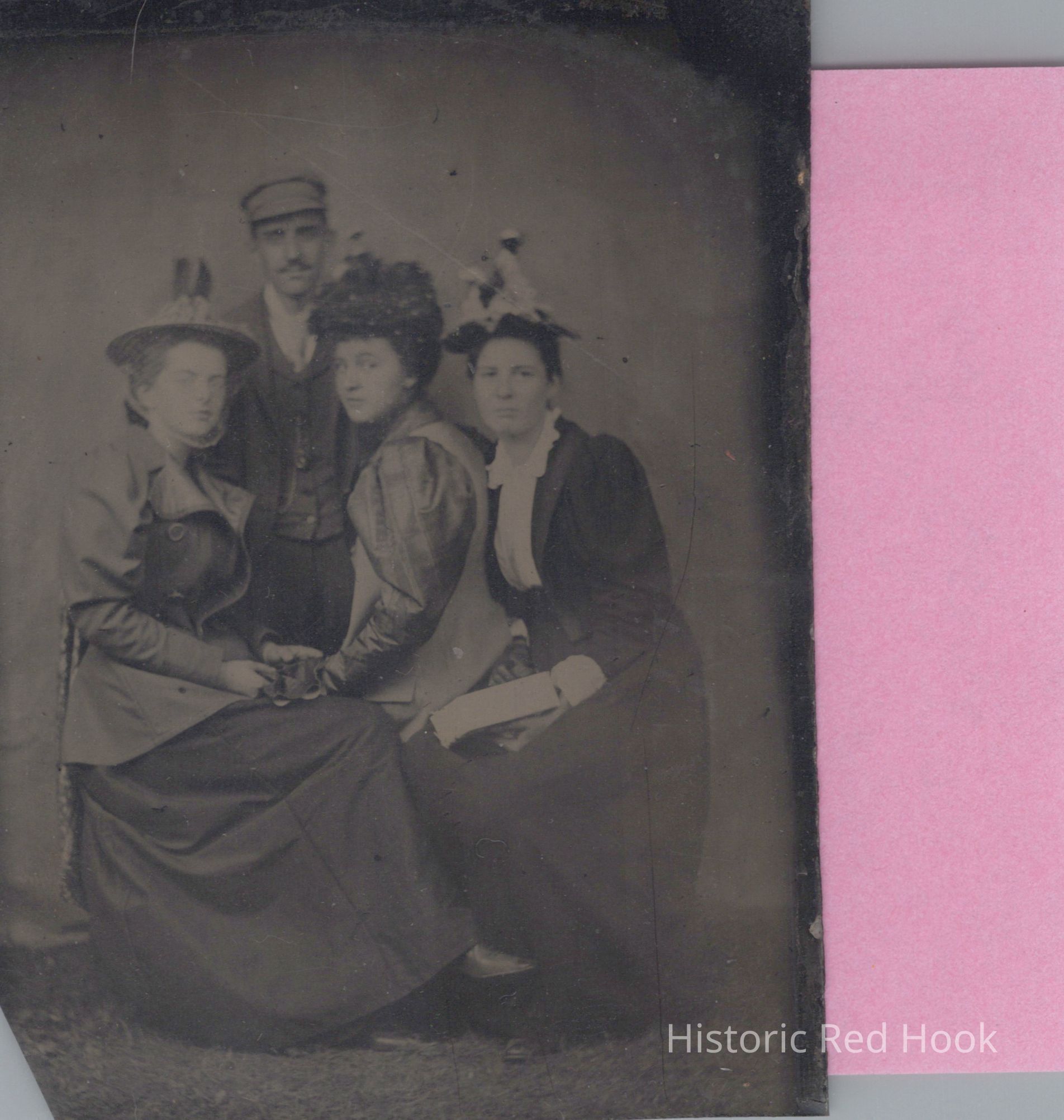 A photograph of Rosalie Fraleigh with her brother Herbert and possibly her friends, the Clark sisters. [rescan image. doublecheck which Rosalie had brother Herbert]Photograph Details