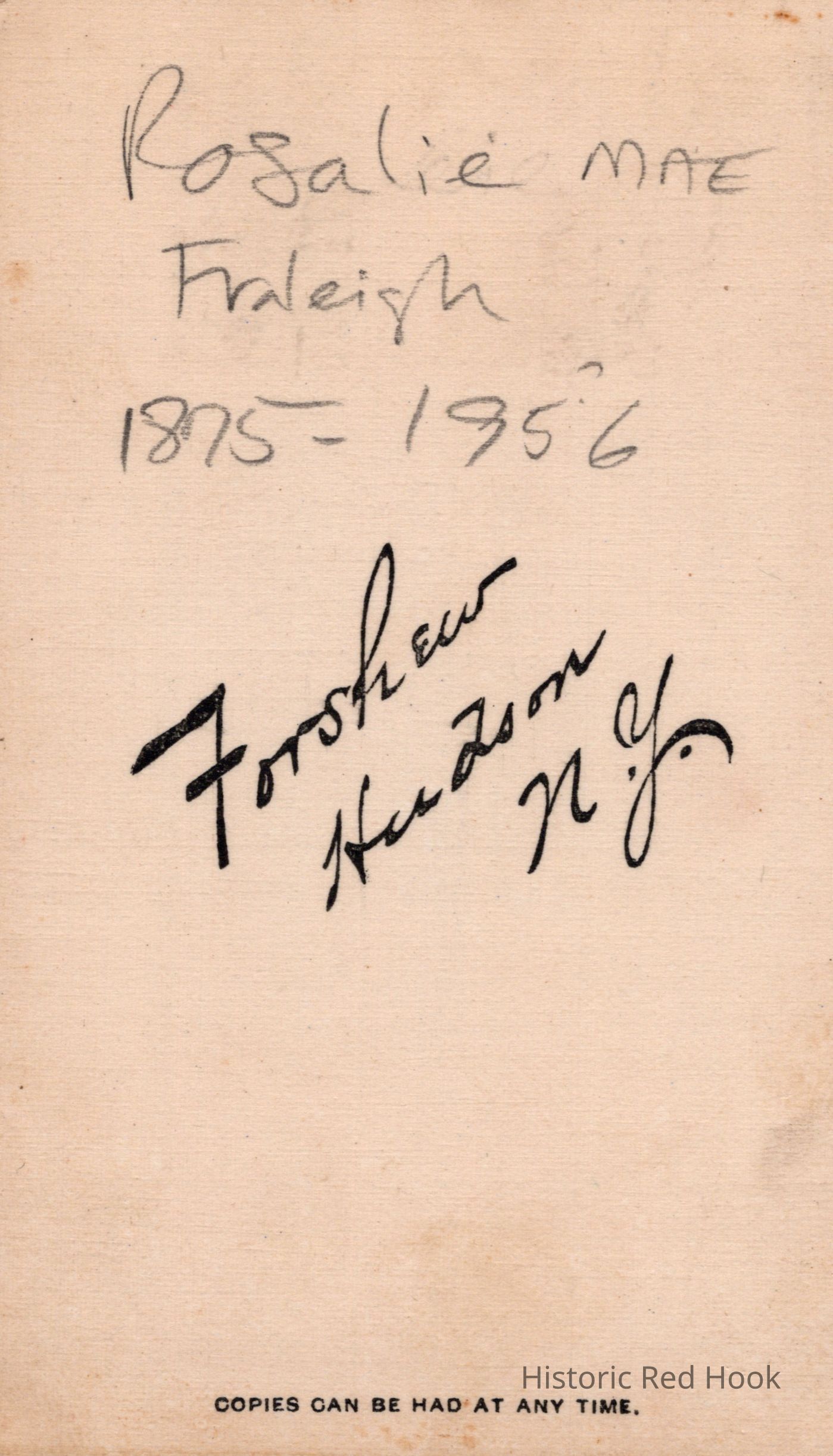 A formal studio portrait of Rosalie Mae Fraleigh taken in Hudson, New York.Photograph Details