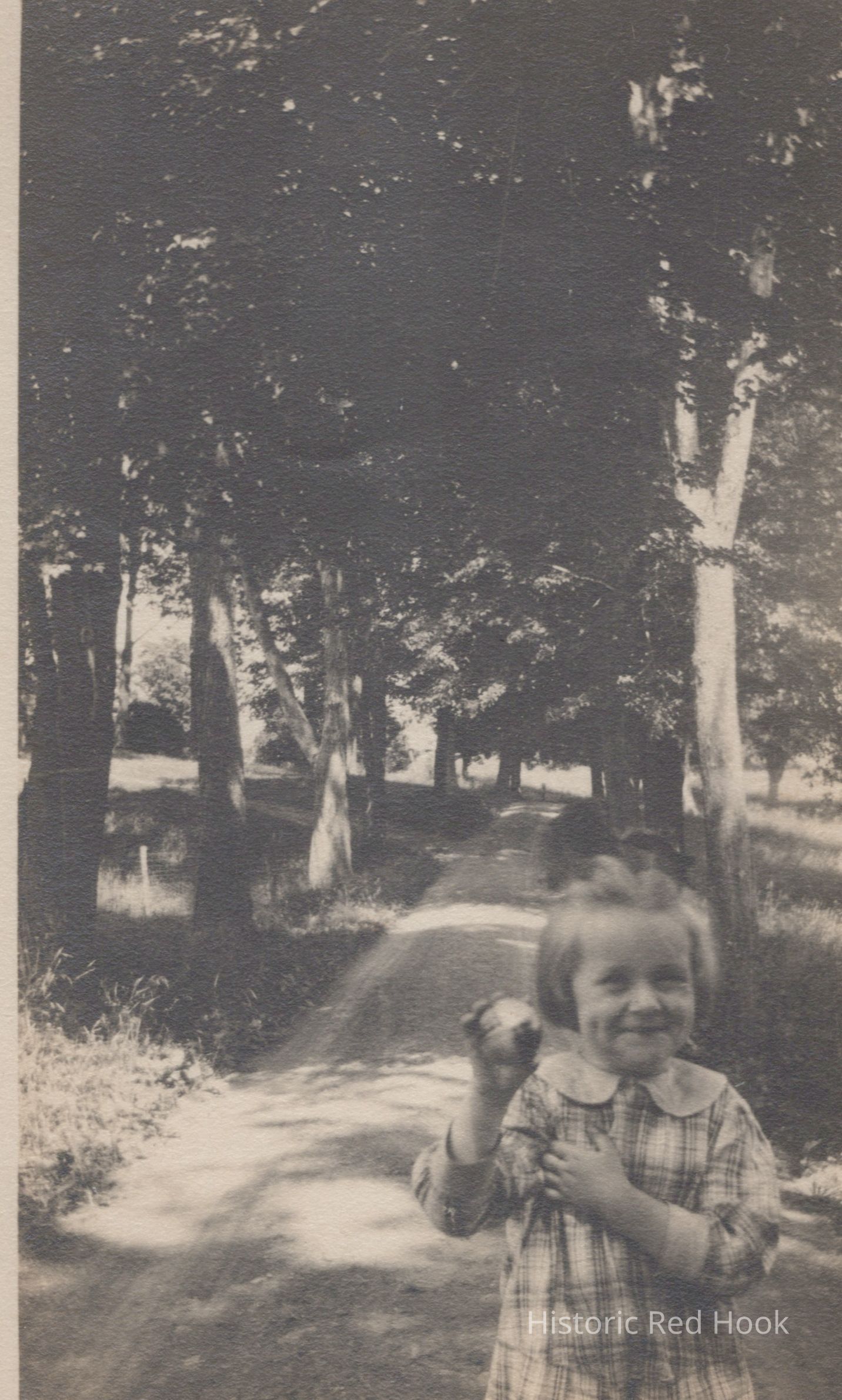 An informal photograph taken of an unidentified young girl in the driveway at Rose Hill Farm.Photograph Details